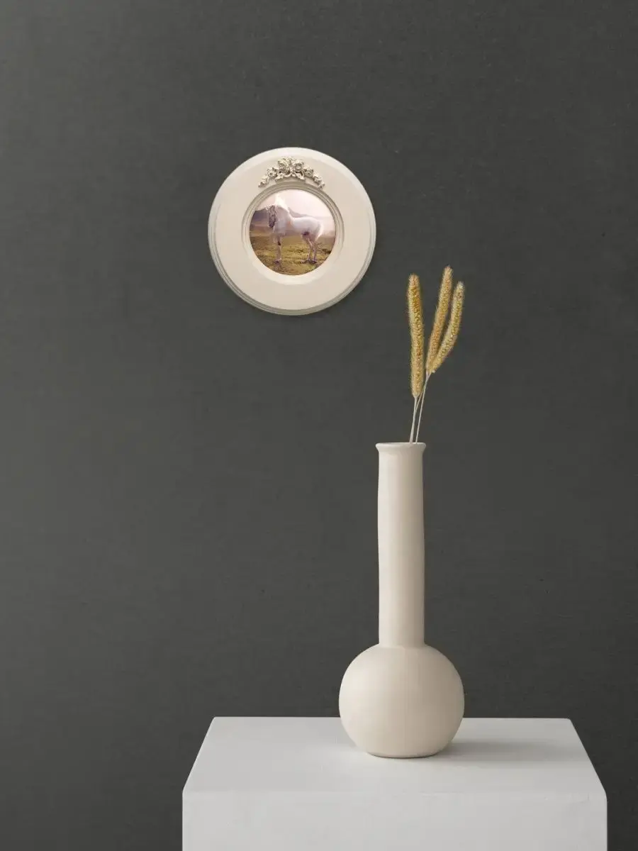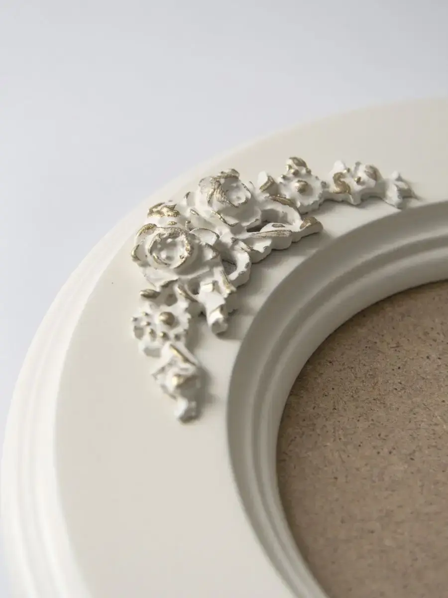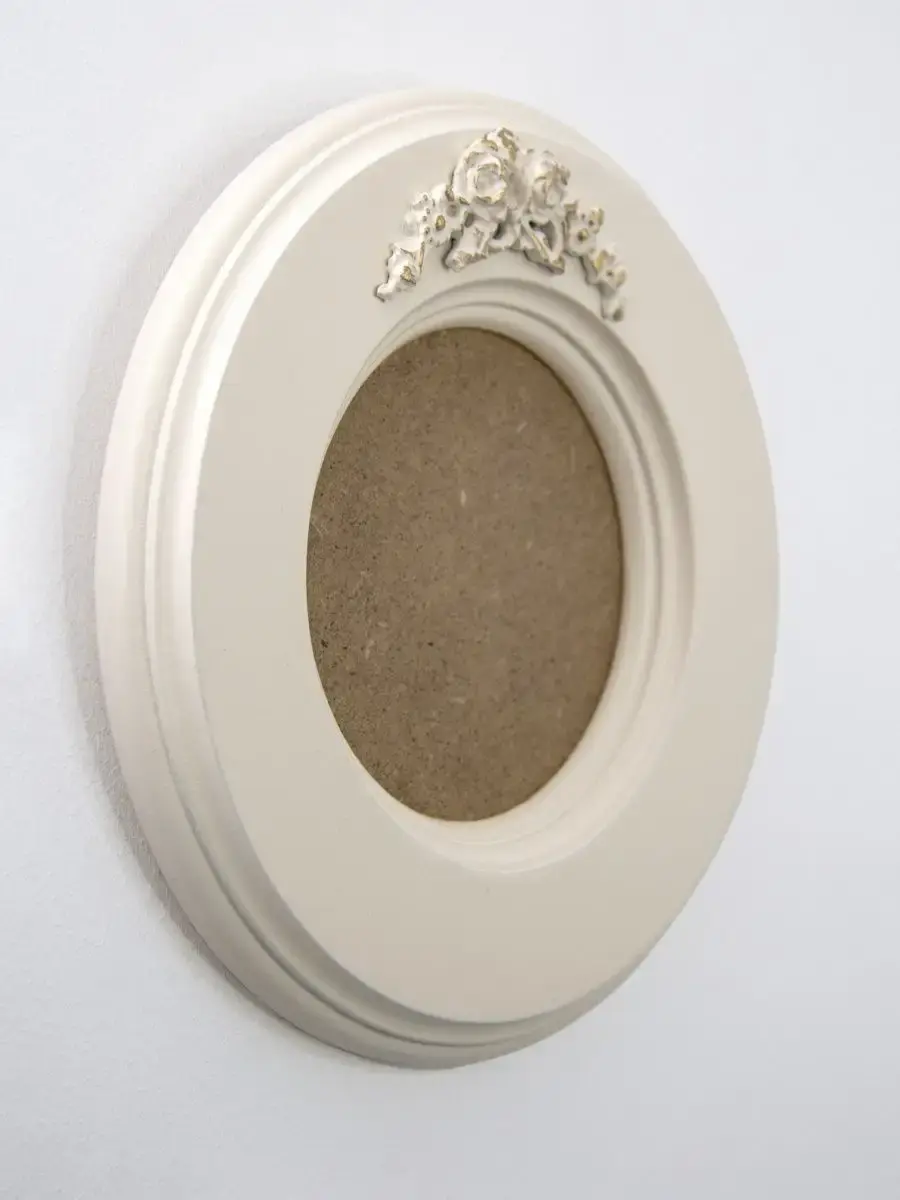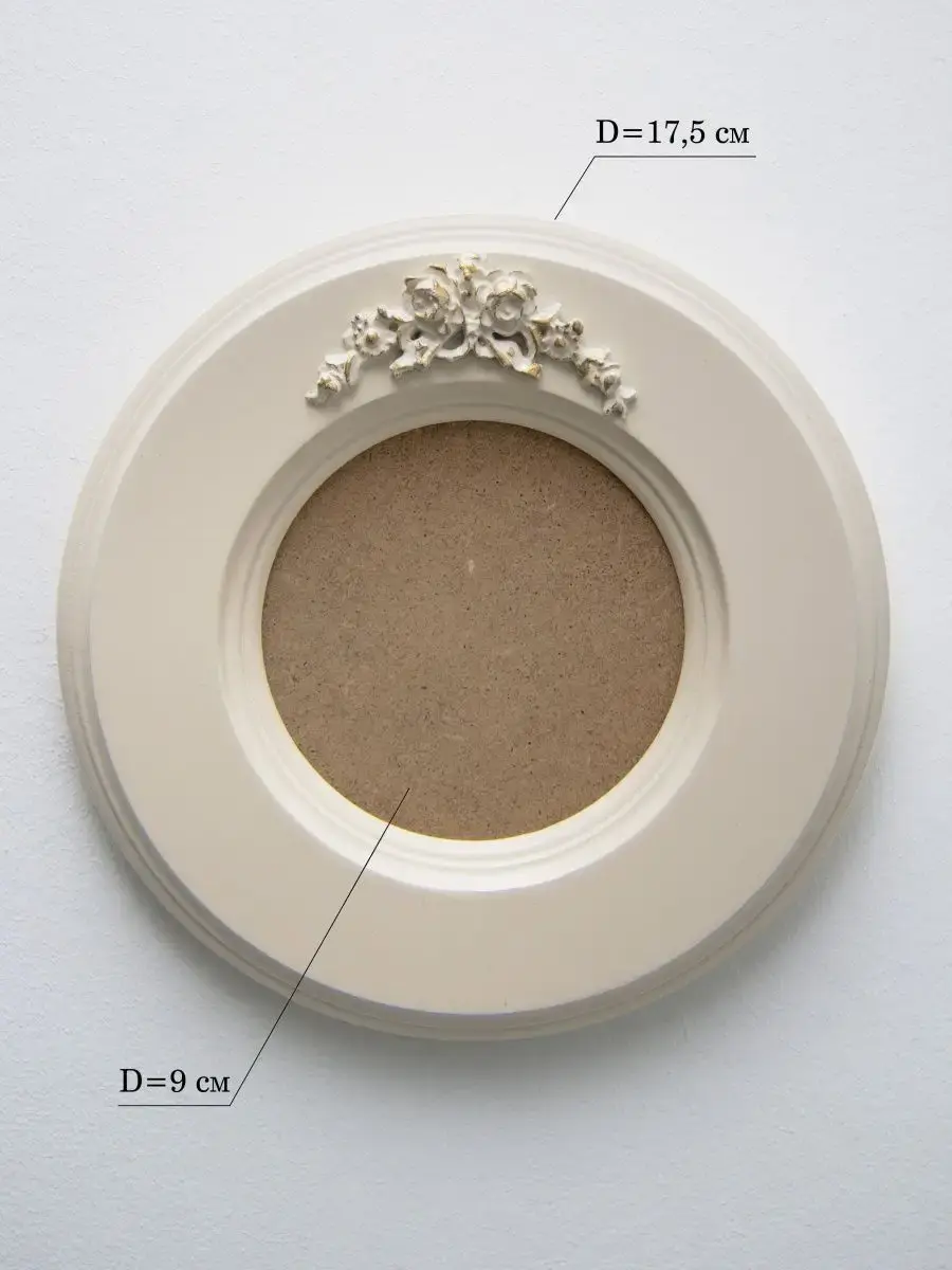 Винтажная рамка для творчества или фото. Настенная-настольная. Изготовлена МДФ 16 мм, окрашена акриловой эмалью и состарена вручную. Милая лепнина с цветочками придает раме особый изыск. Фоторамка идеально подходит для рабочего стола или стен, добавляя яркие акценты и создавая атмосферу уюта. Используйте её как аксессуар, чтобы подчеркнуть уникальность вашего пространства и каждый раз радоваться воспоминаниям.Диаметр рамы 17.5 см, диаметр фото 10 см., стекла в комплекте нет. Прекрасный подарок, небольшой сувенир в стиле прованс. Дополнение к интерьеру на полку или в коллекцию картин с птичками и цветами. Крепления в комплекте.