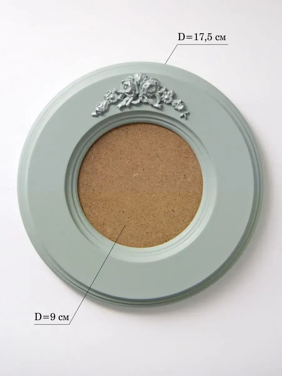 Винтажная рамка для творчества или фото. Настенная-настольная. Изготовлена МДФ 16 мм, окрашена акриловой эмалью и состарена вручную. Милая лепнина с цветочками придает раме особый изыск. Фоторамка идеально подходит для рабочего стола или стен, добавляя яркие акценты и создавая атмосферу уюта. Используйте её как аксессуар, чтобы подчеркнуть уникальность вашего пространства и каждый раз радоваться воспоминаниям.Диаметр рамы 17.5 см, диаметр фото 10 см., стекла в комплекте нет. Прекрасный подарок, небольшой сувенир в стиле прованс. Дополнение к интерьеру на полку или в коллекцию картин с птичками и цветами. Крепления в комплекте.