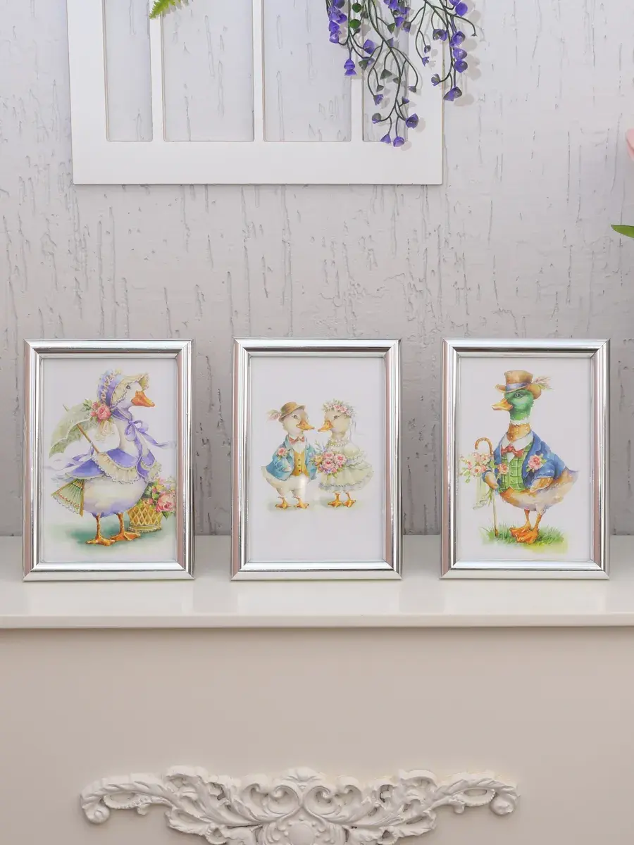 Набор из 3х фоторамок в тонком серебристом багете. Подойдут для фото 10*15 см. Со стеклом. Размер рамки целиком 12*17 см. Сзади подставка.