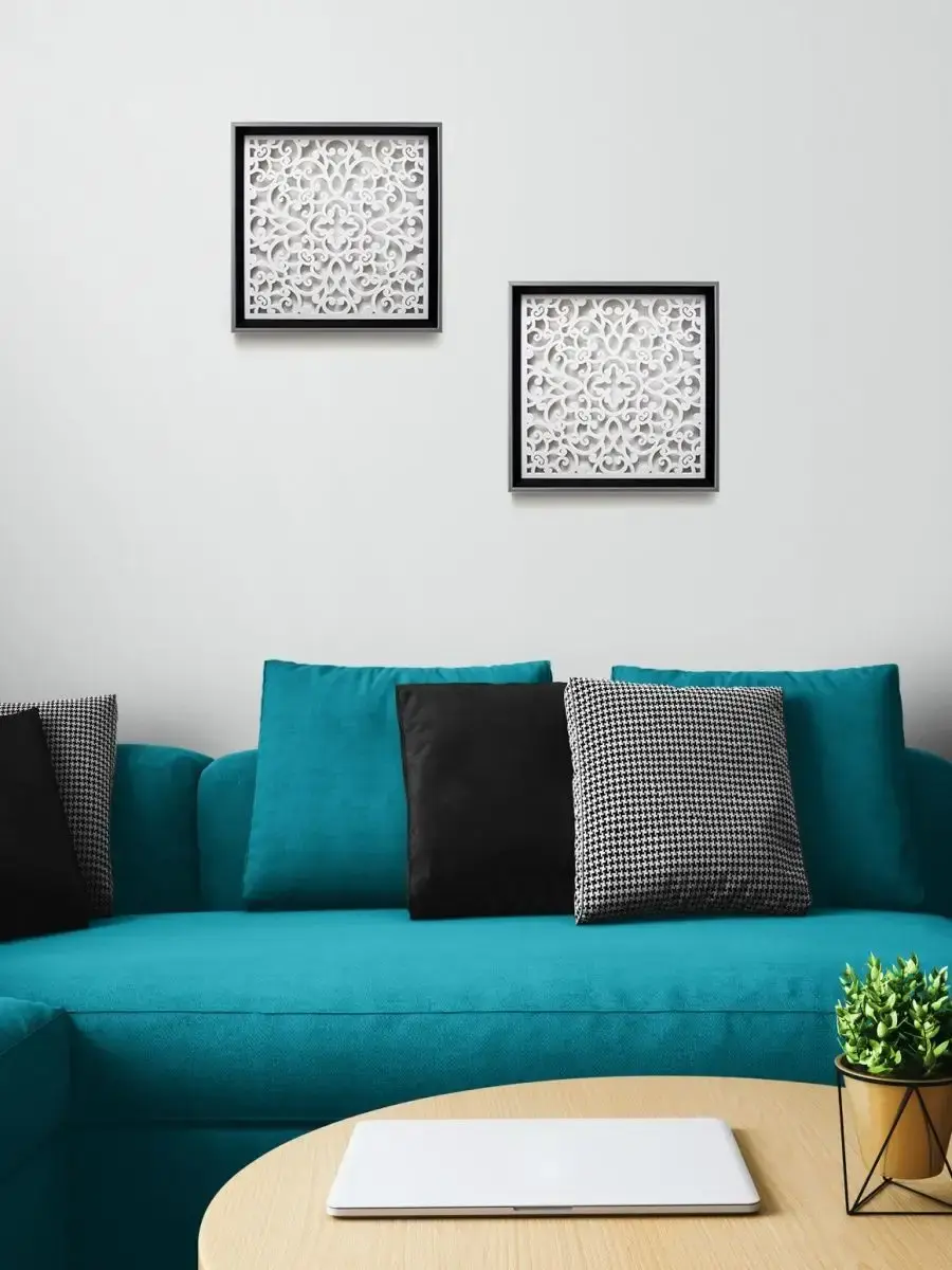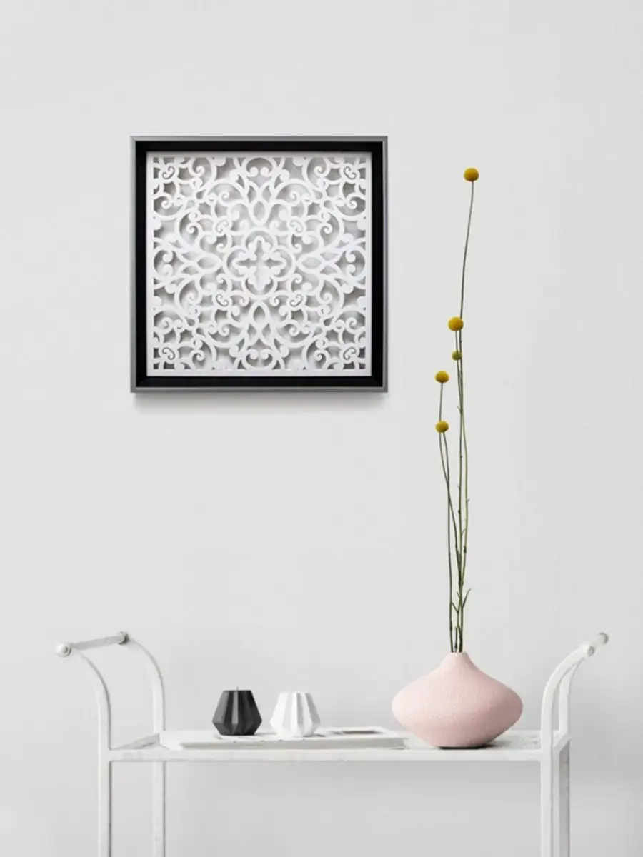 Декоративное резное настенное панно "Узоры" . Декор на стену изготовлен из высококачественной березовой фанеры 4мм, окрашены акриловой эмалью. Настенные деревянные панно, стильный декор для комнаты в современном стиле. Деревянные резные панно оформлены в лаконичную багетную раму из полиуретана. Декор для украшения интерьера дома и дачи. Декорация на стену спальни, прихожей, украшение для кухни и ванной комнаты. Панно легкие и изящные, преобразят интерьер комнат. Размер панно 30х30 см.. Декор для дома можно комбинировать с прямоугольными панно арт: 28634304, создавая композицию. С обратной стороны зубчатый крепеж, крепление для стены в комплекте.Вертикальные прямоугольные панно на втором фото - арт.25645574. также подойдет арт. 28634304