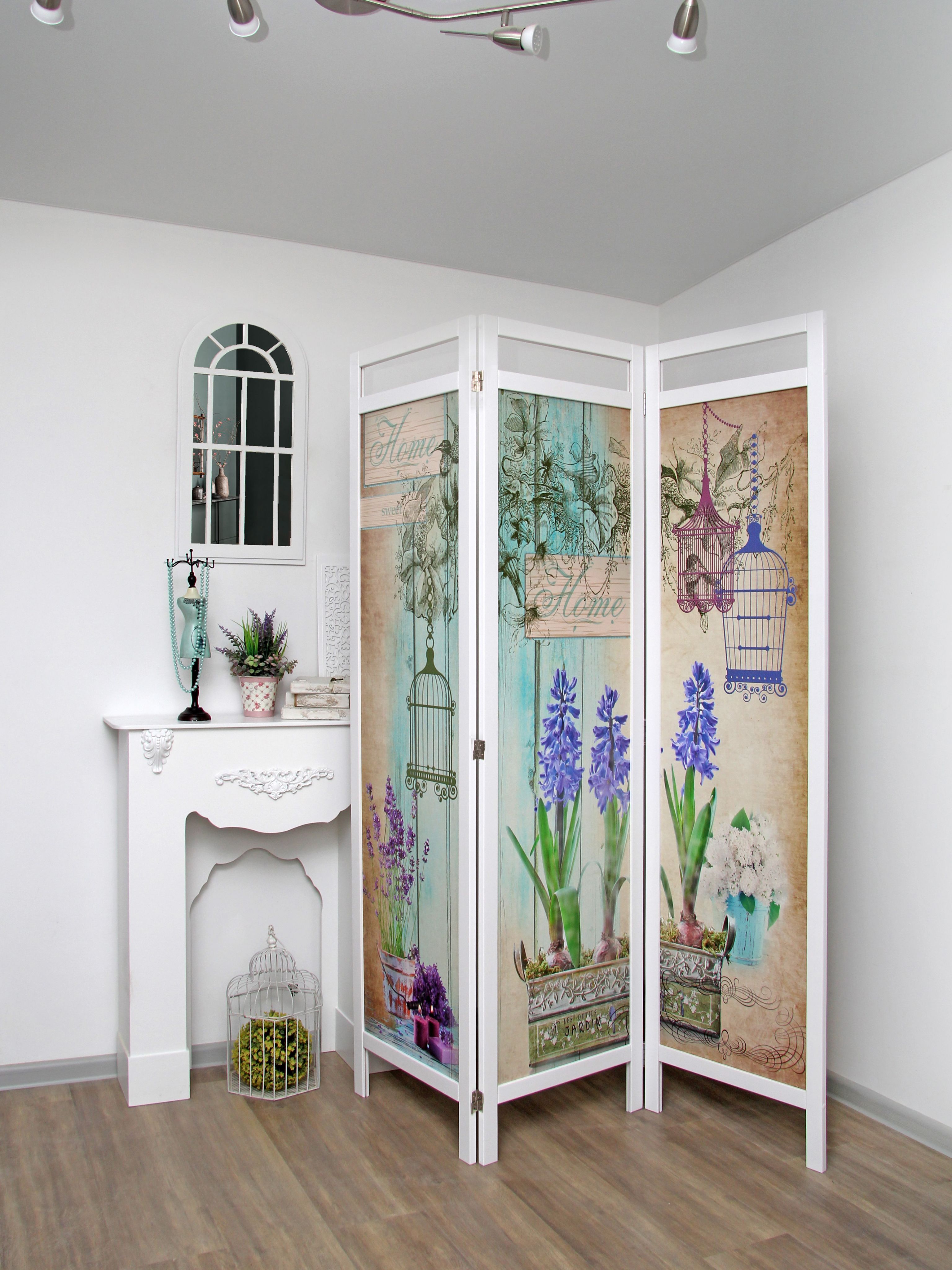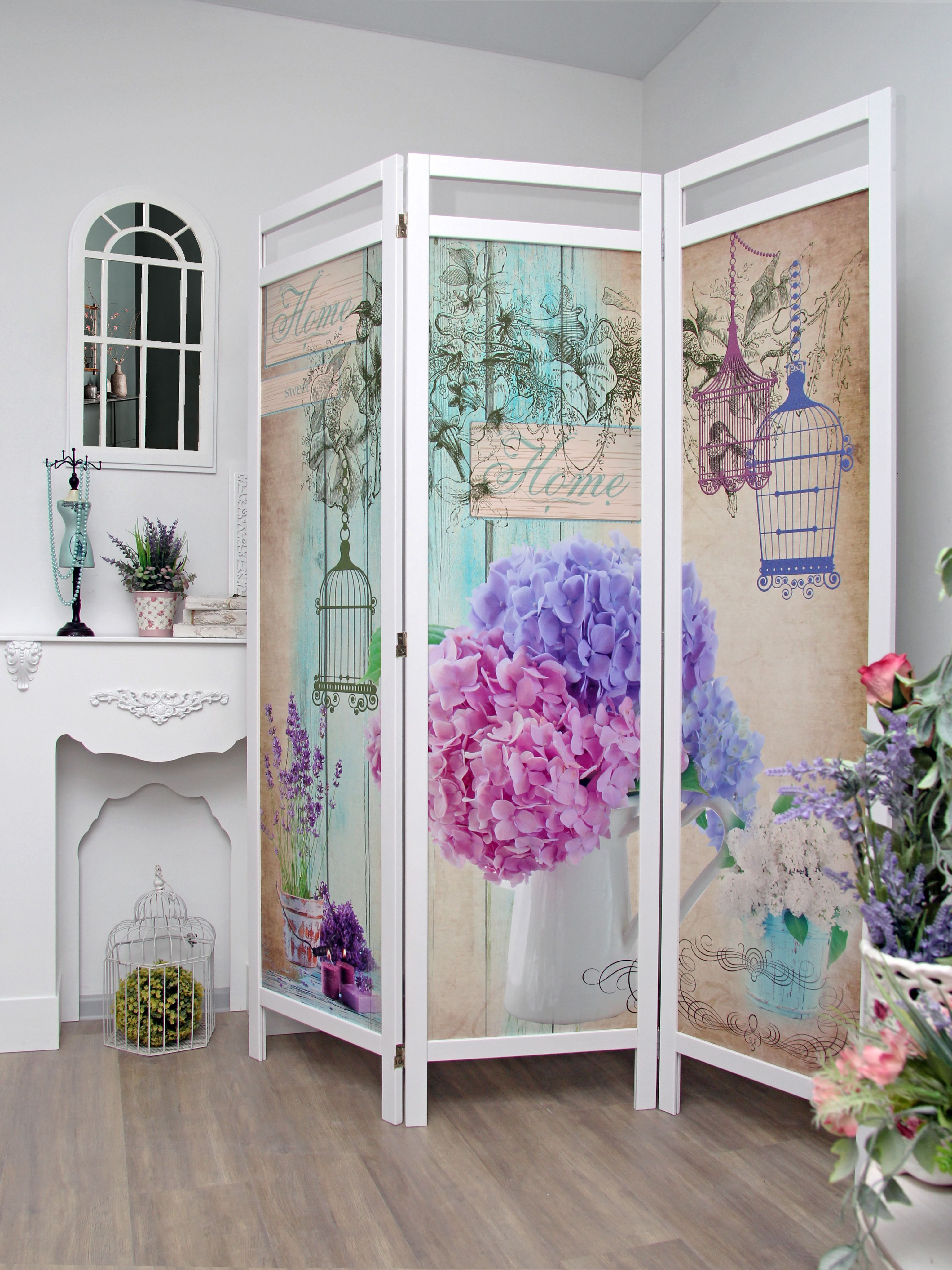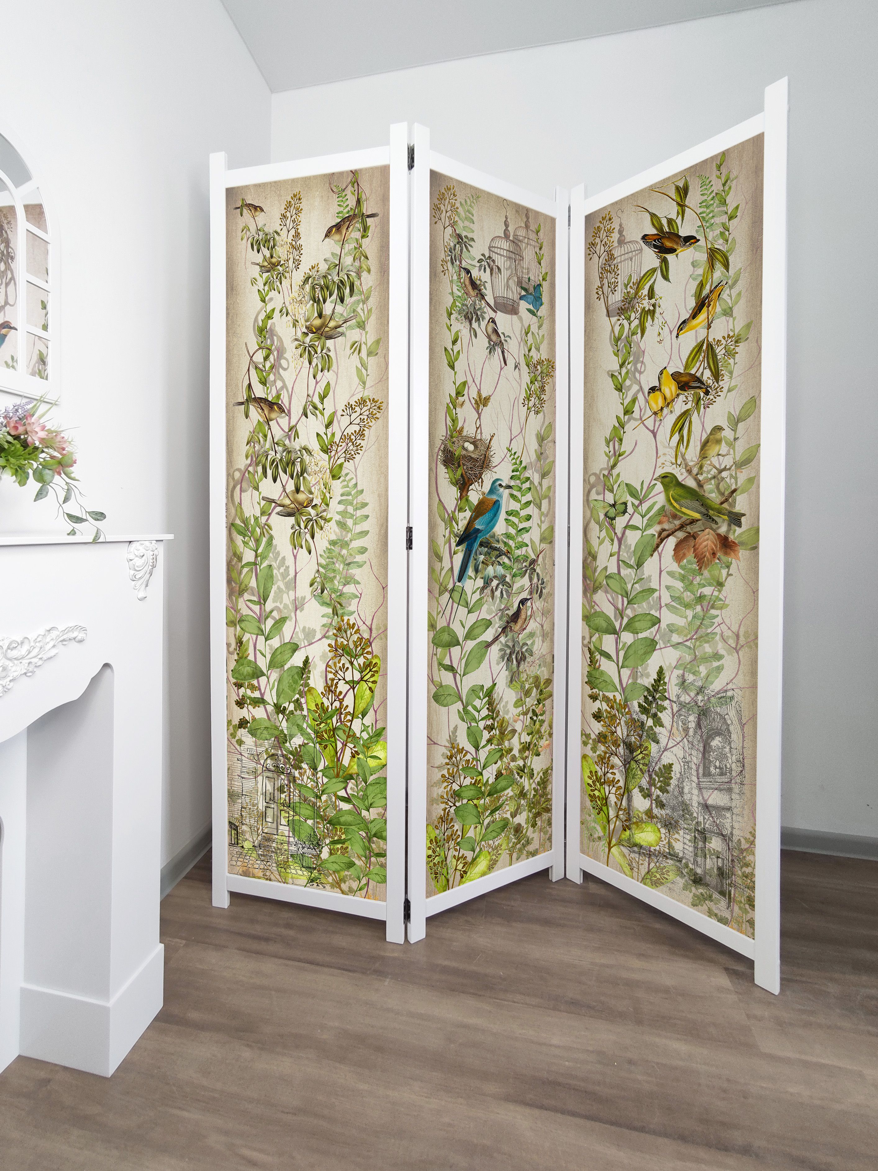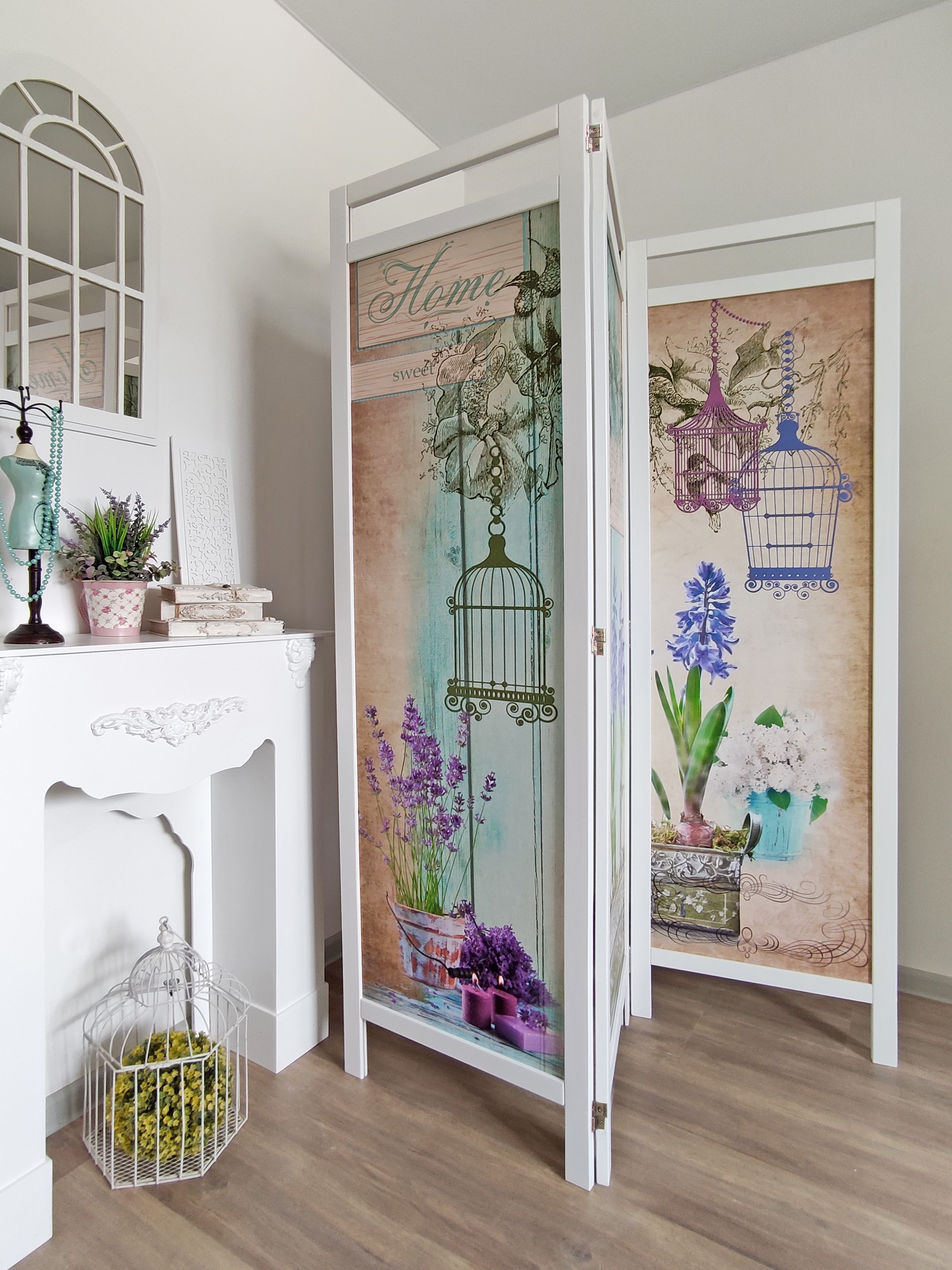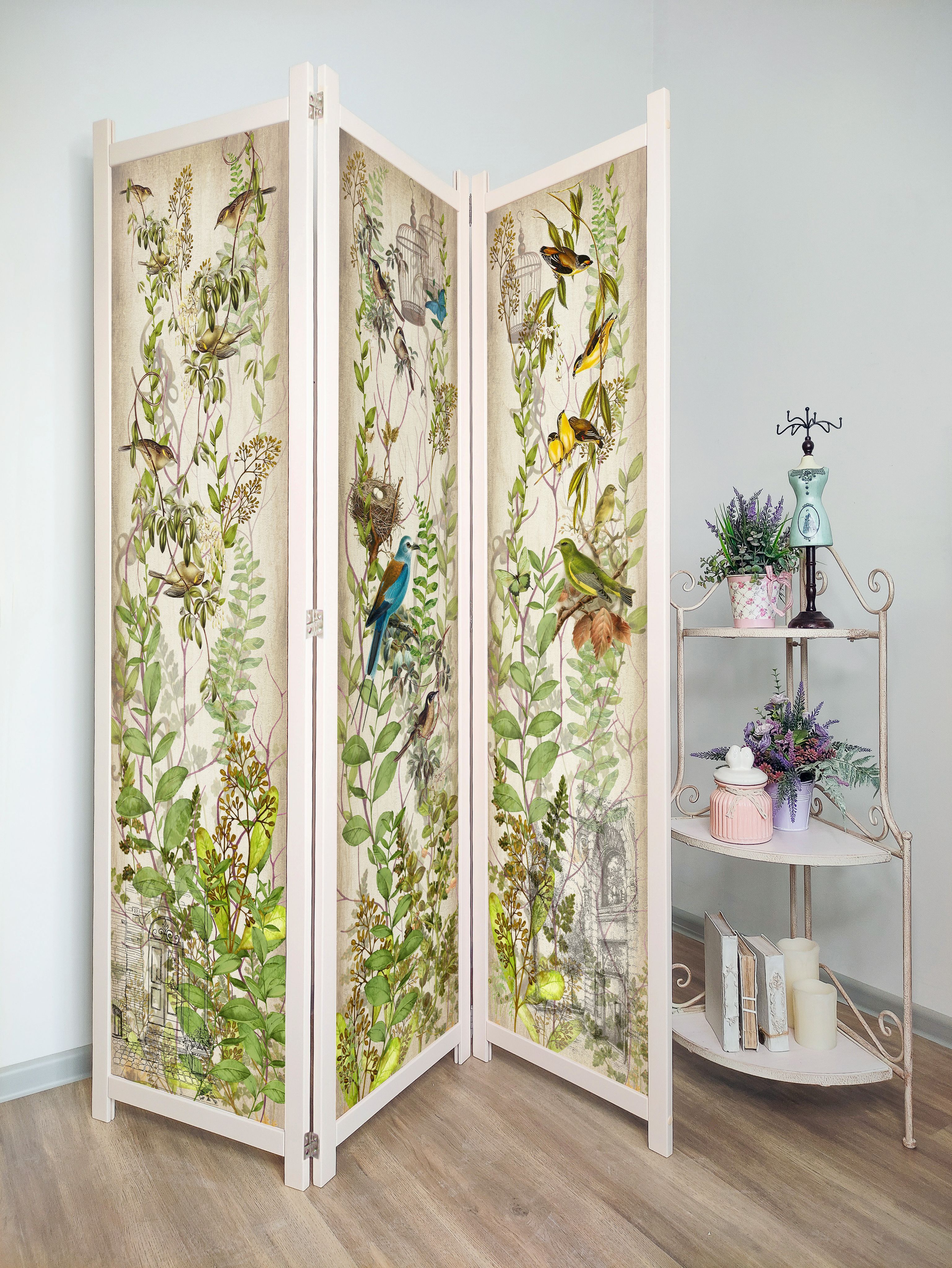 Ширма для комнаты перегородка с рисунком в стиле Прованс "Райские птички".