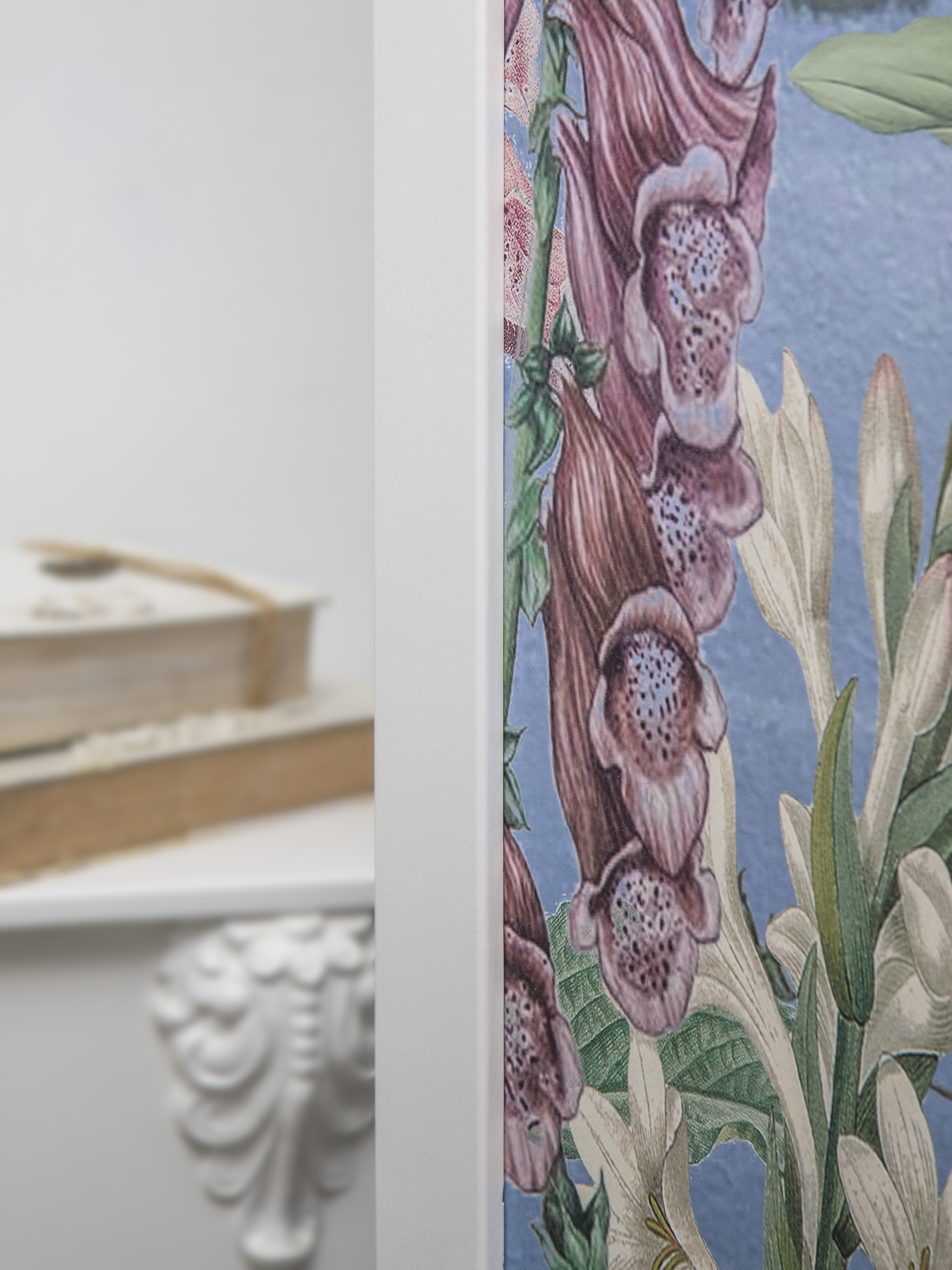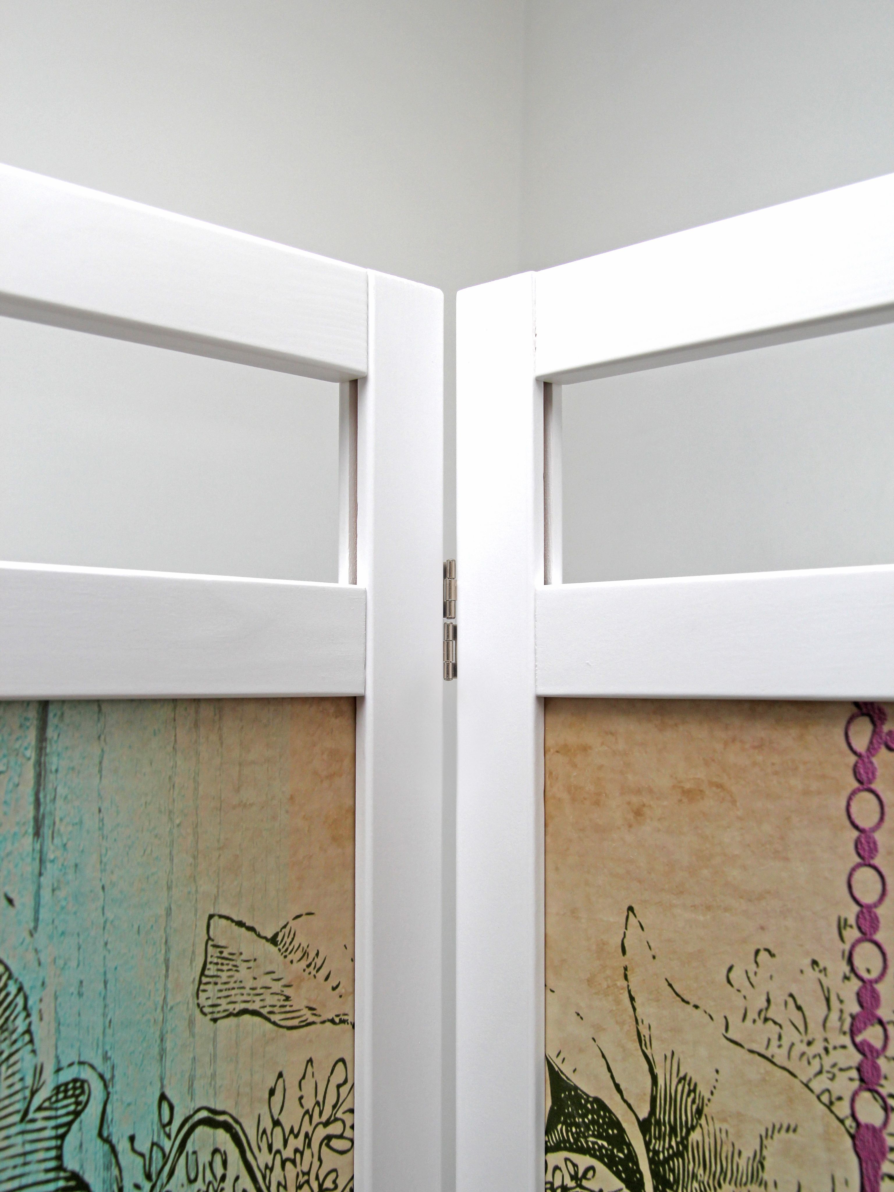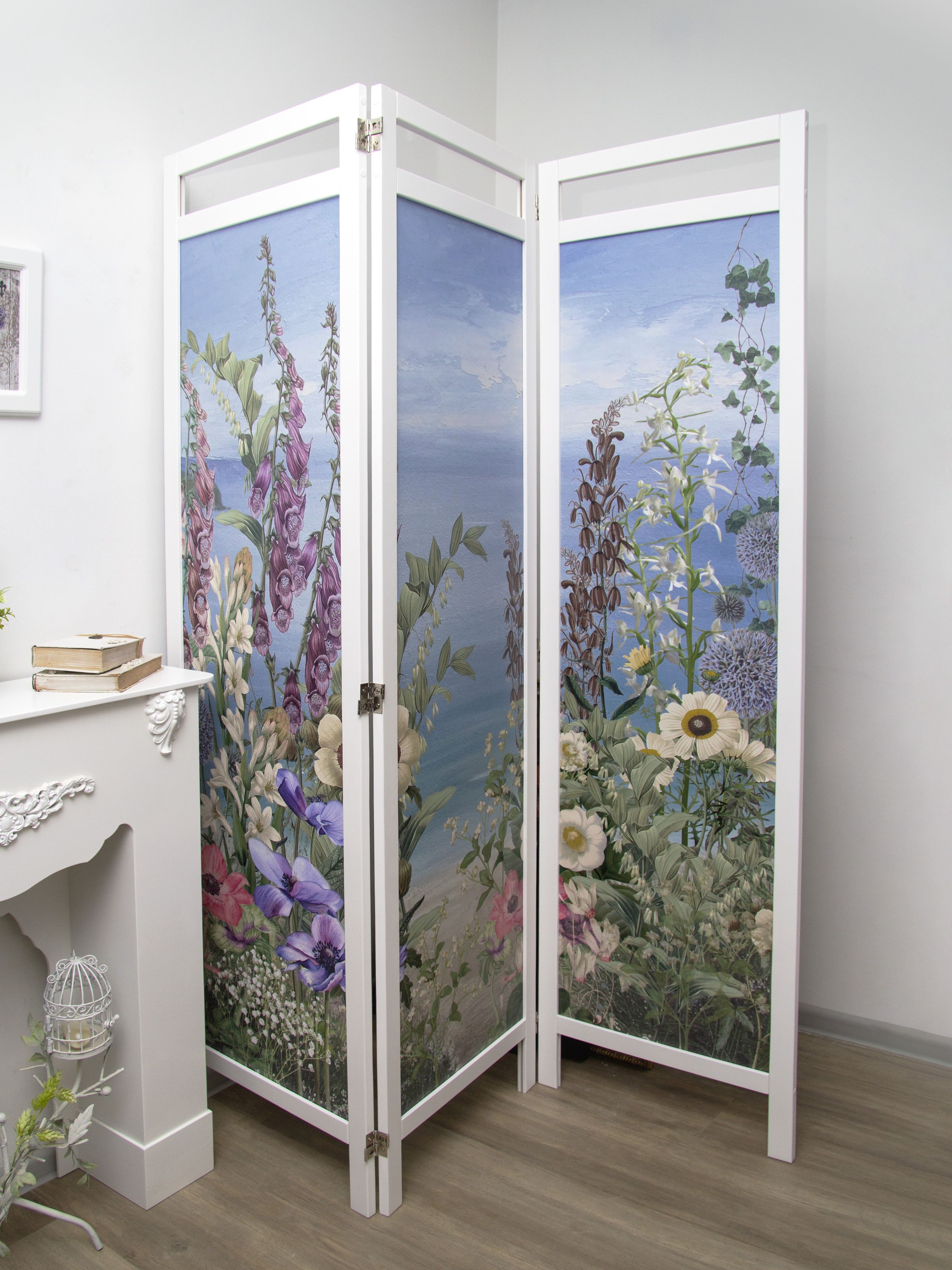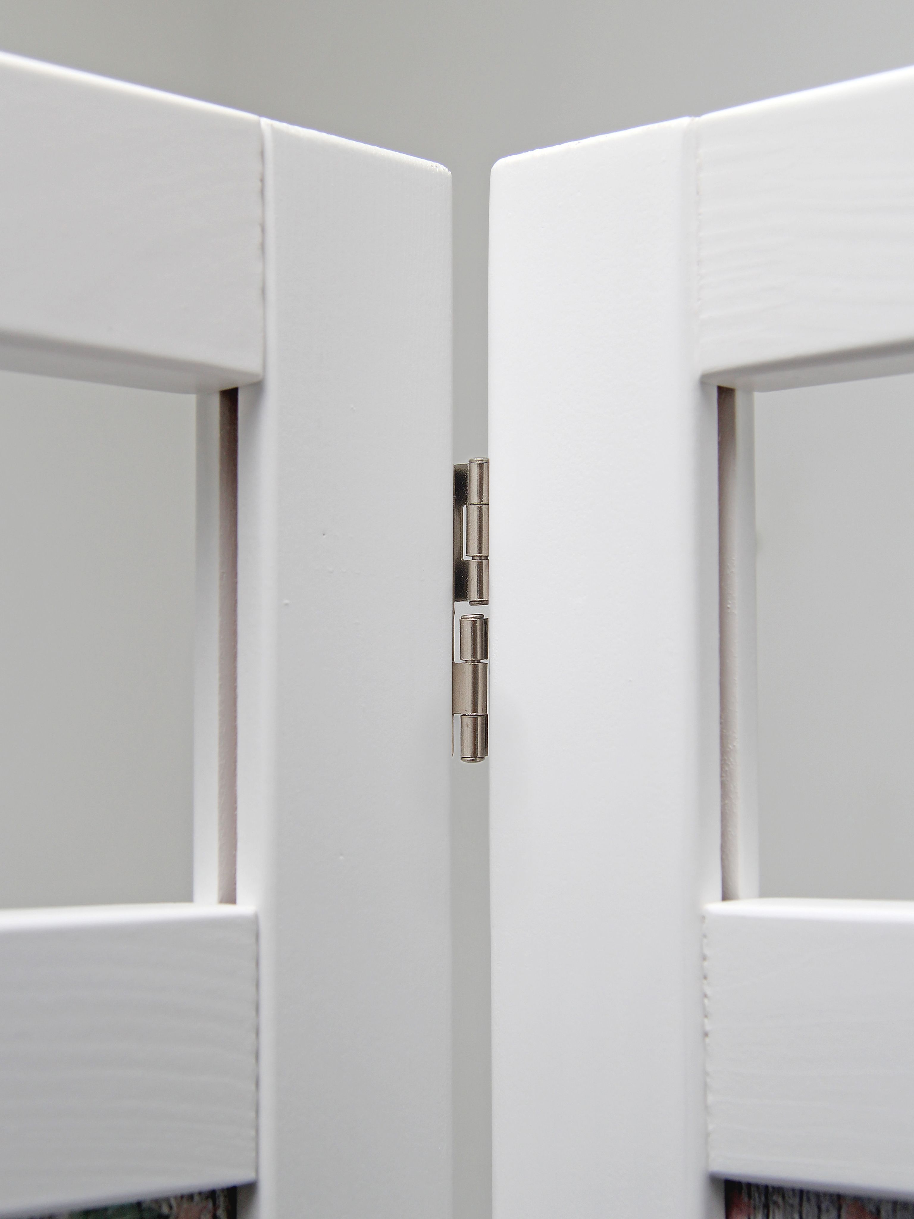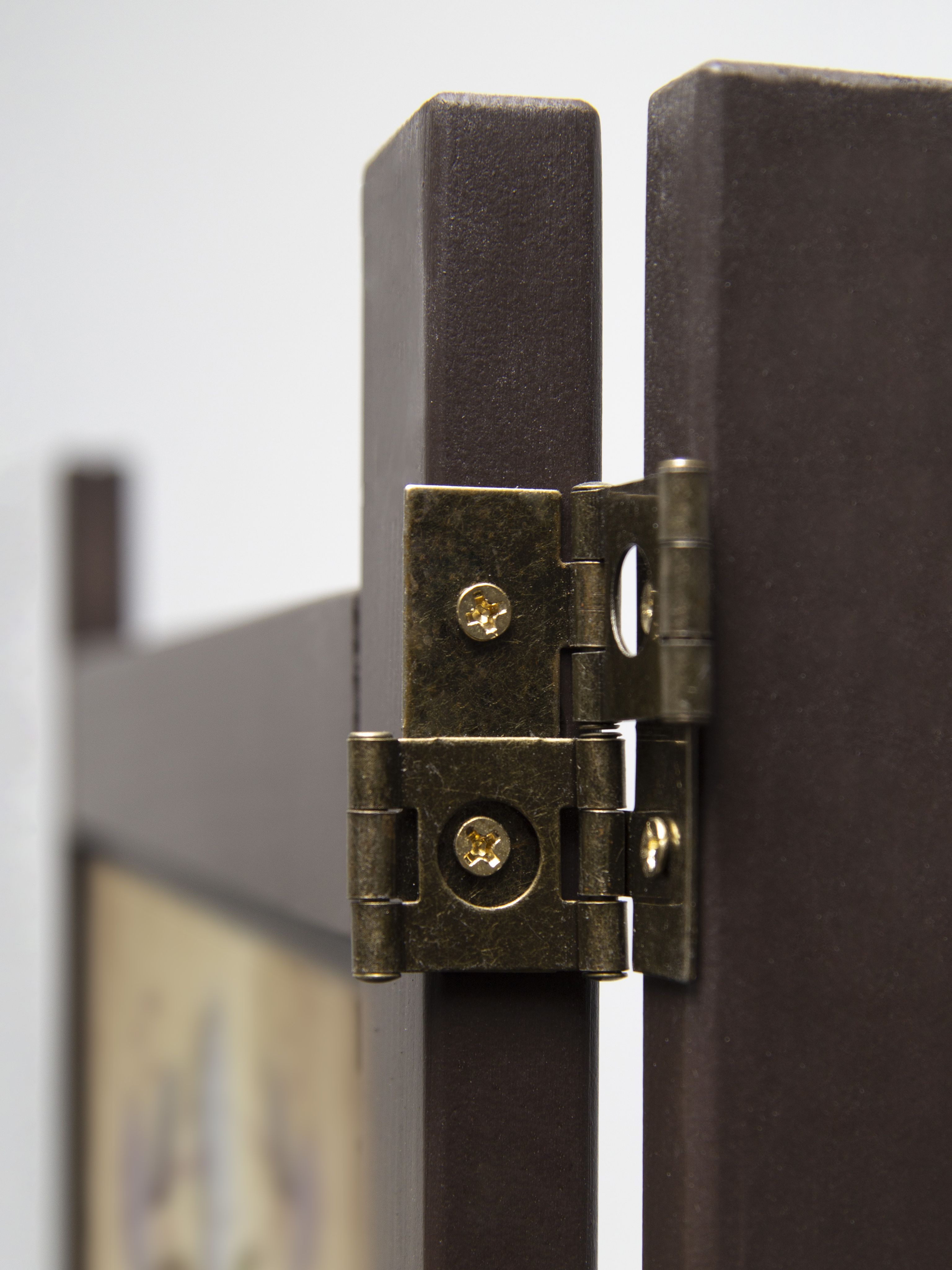 Рама ширмы с рисунком выполнена из высококачественной сосны и окрашена акриловой эмалью без запаха в белый цвет.