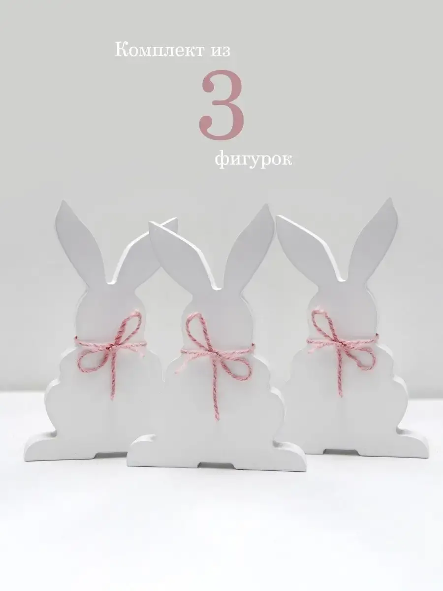 Набор декоративных фигурок из МДФ 19 мм. "Три зайца". Декоративные фигурки представлены в двух вариантах: заготовки для самостоятельной покраски, декупажа, росписи. Можно окрашивать в любой цвет акриловыми красками. И покрашены акриловой эмалью и дополнены декоративными бантиками. Настольный декор для пасхального декора или просто милые фигурки для украшения кухни, детской. Размер 10,5х15,5 см.