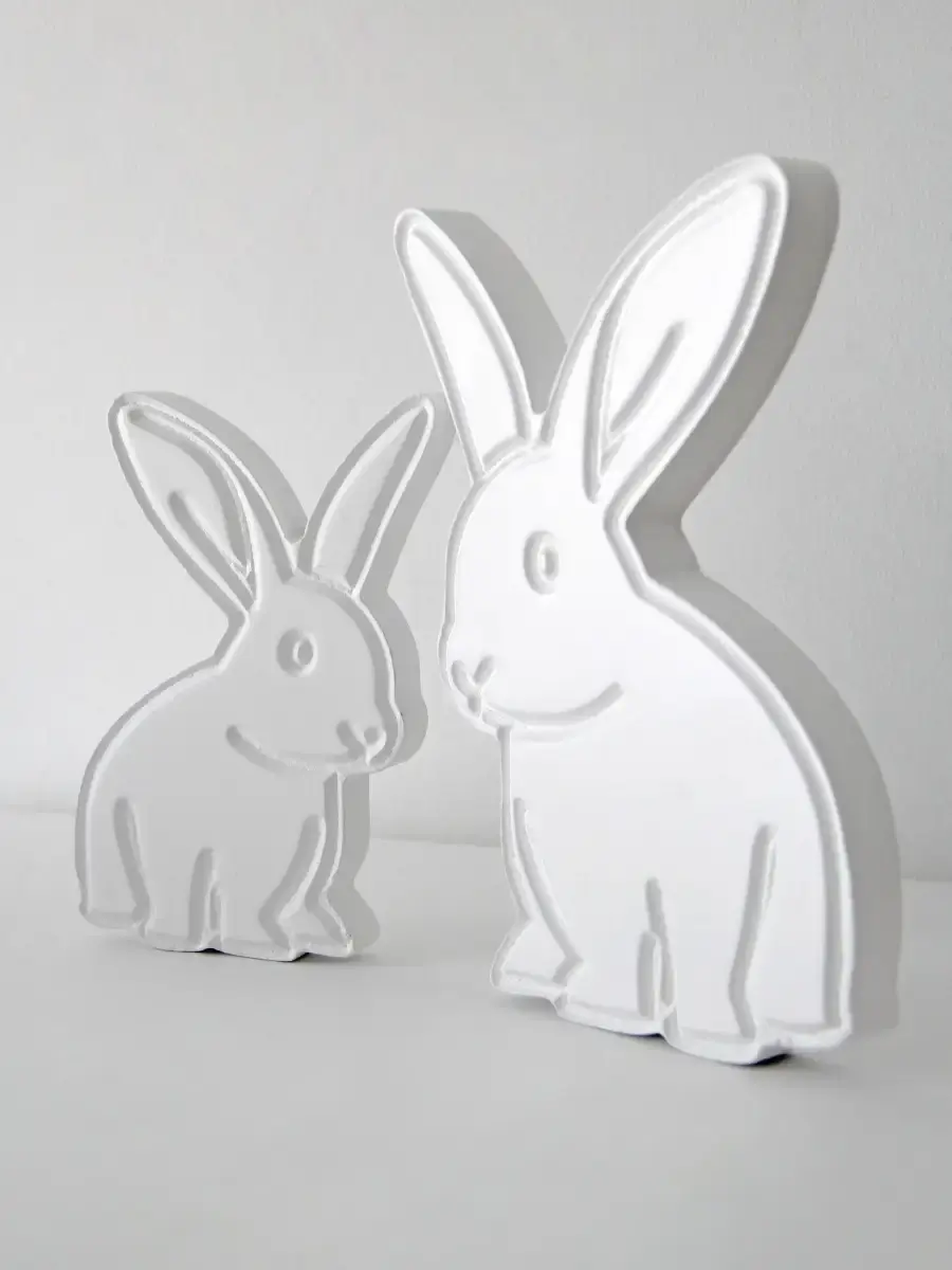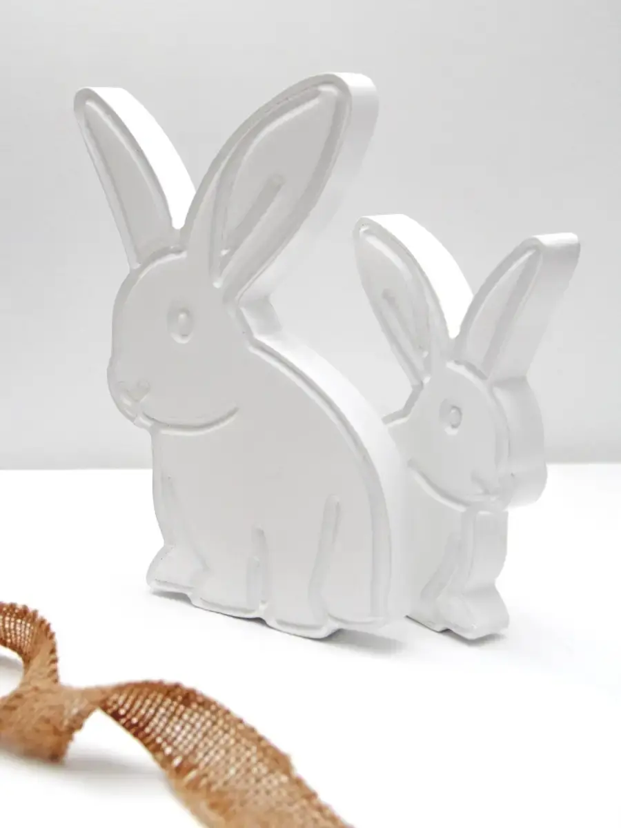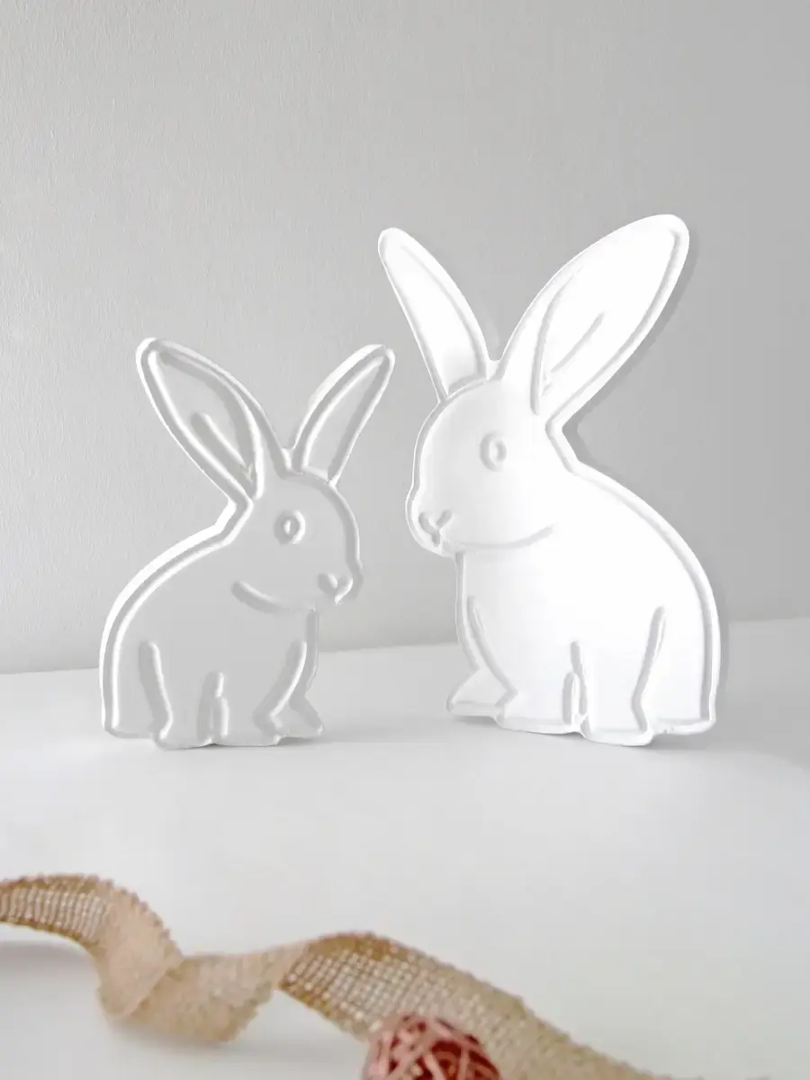 Набор декоративных фигурок из МДФ 19 мм. "Два зайца". Декоративные фигурки представлены в двух вариантах: заготовки для самостоятельной покраски, декупажа, росписи. Можно окрашивать в любой цвет акриловыми красками. И покрашены акриловой эмалью.Настольный декор для пасхального декора или просто милые фигурки для украшения кухни, детской. Размер большого зайца 20х13х2 см, размер зайца поменьше 15х11х2 см.