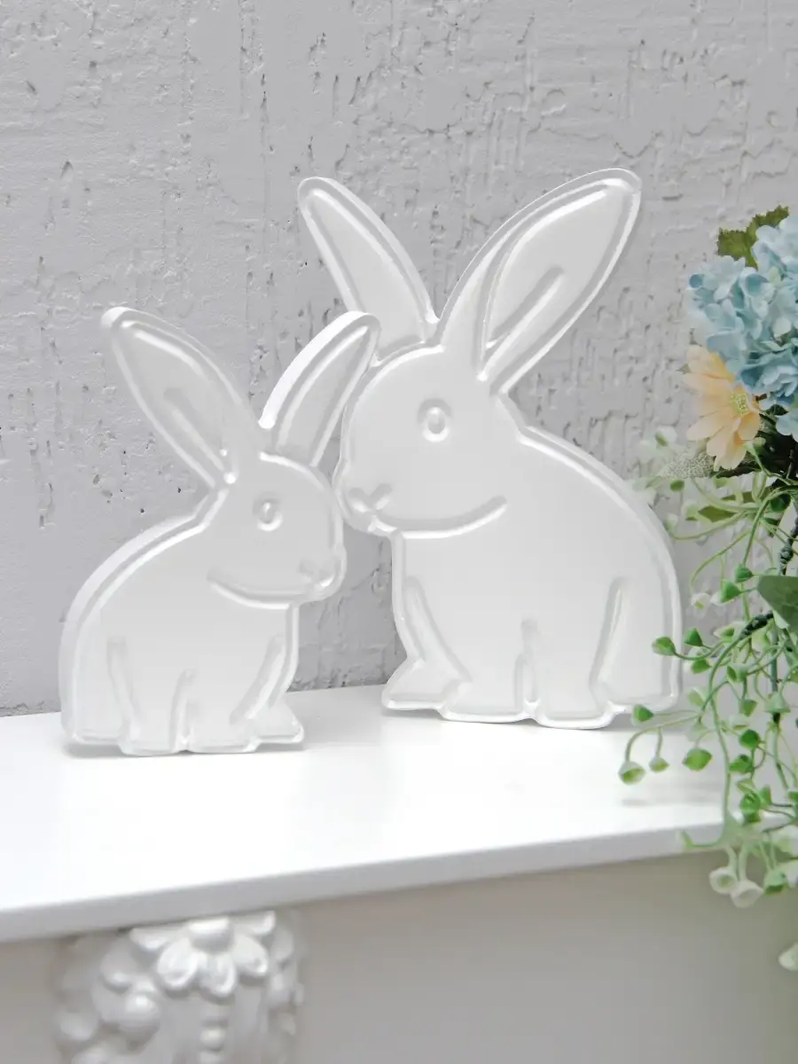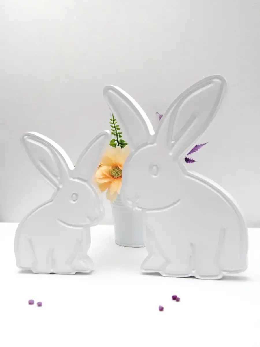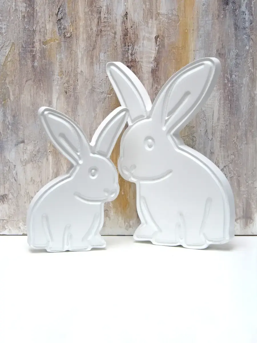 Набор декоративных фигурок из МДФ 19 мм. "Два зайца". Декоративные фигурки представлены в двух вариантах: заготовки для самостоятельной покраски, декупажа, росписи. Можно окрашивать в любой цвет акриловыми красками. И покрашены акриловой эмалью.Настольный декор для пасхального декора или просто милые фигурки для украшения кухни, детской. Размер большого зайца 20х13х2 см, размер зайца поменьше 15х11х2 см.