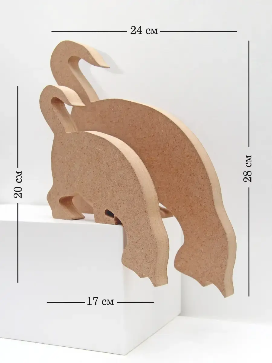 Статуэтка Elenadecor станет прекрасным украшением вашего интерьера, добавив ему уникальный шарм и стиль. Эта декоративная фигурка, выполненная из качественного МДФ, станет отличным подарком для близких, подчеркивая ваш изысканный вкус. Детализированное исполнение и оригинальный дизайн делают ее настоящим произведением искусства, которое гармонично впишется в любую обстановку. Статуэтка Elenadecor - это не просто предмет декора, а возможность создать неповторимую атмосферу в вашем доме. Она станет идеальным элементом, который сделает ваш интерьер еще более уютным и стильным. Порадуйте себя или своих близких этим прекрасным подарком к любому празднику! Размер большого кота 28х24х2 см, размер кота поменьше 20х17х2 см.