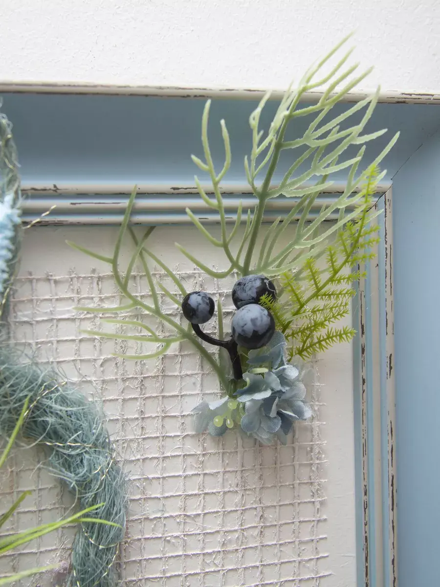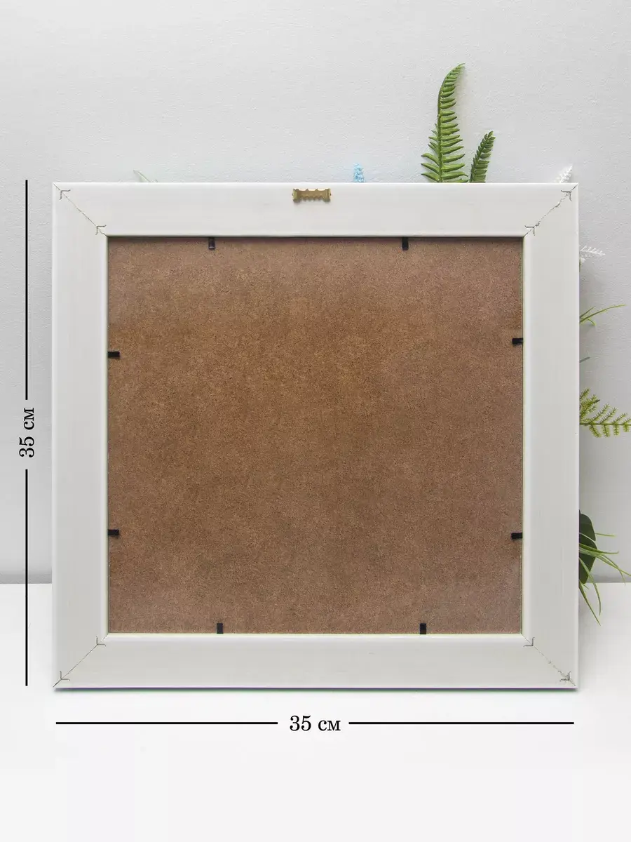 Размер белой рамы - 39*39 см, размер голубой рамы - 35*35 см.