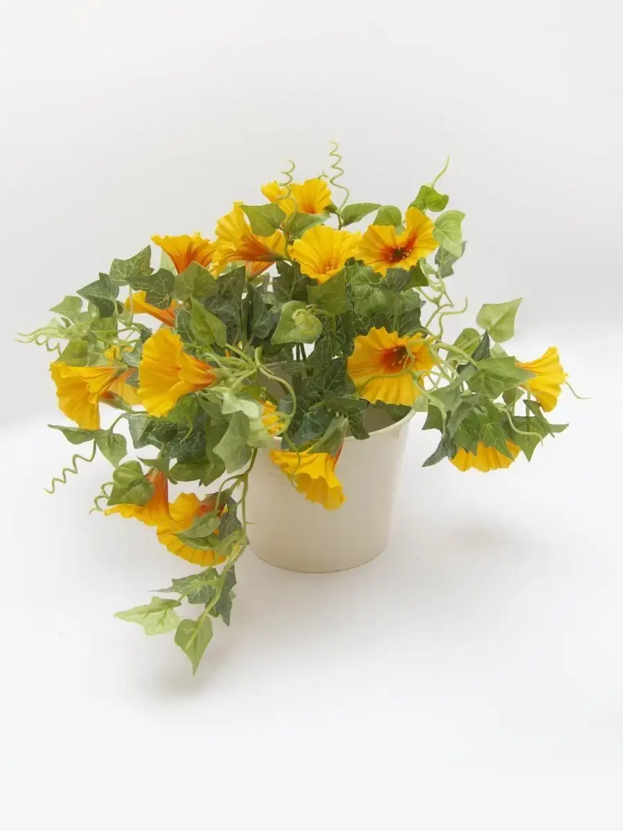 Декоративная композиция из искусственных петуний в деревянном кашпо или металлическом ведерке. Обратите внимание при заказе, в коллекции 2 вида композиций: настенные в деревянном кашпо и настольные - в металлическом ведерке. Размер кашпо 20,5х12 см, размер ведерка высота 9,5 см (с ручкой 15,5 см)*диаметр 11,5 см (по верхнему краю). Композиция станет прекрасным украшением интерьера квартиры, дома, открытой веранды на даче.