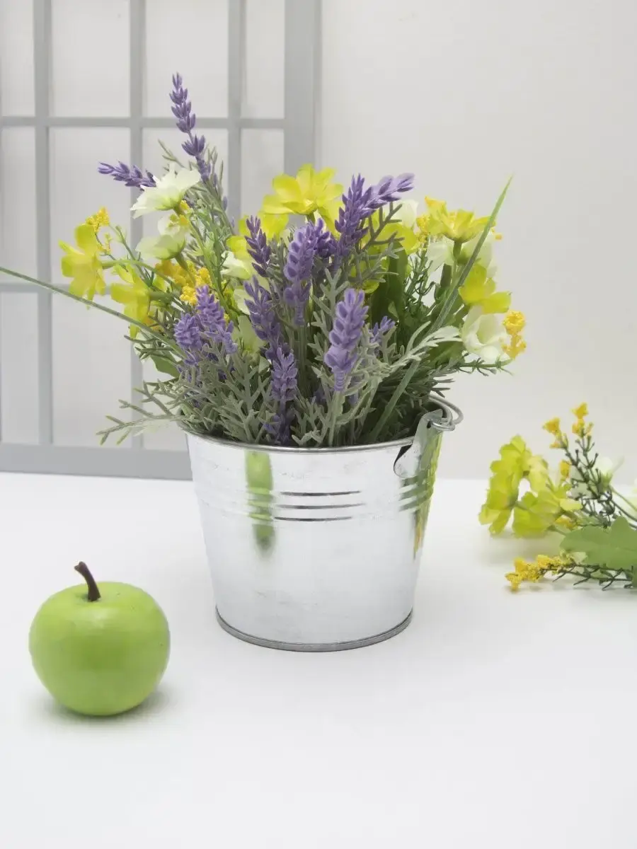Декоративная композиция из искусственных петуний в деревянном кашпо или металлическом ведерке. Обратите внимание при заказе, в коллекции 2 вида композиций: настенные в деревянном кашпо и настольные - в металлическом ведерке. Размер кашпо 20,5х12 см, размер ведерка высота 9,5 см (с ручкой 15,5 см)*диаметр 11,5 см (по верхнему краю). Композиция станет прекрасным украшением интерьера квартиры, дома, открытой веранды на даче.