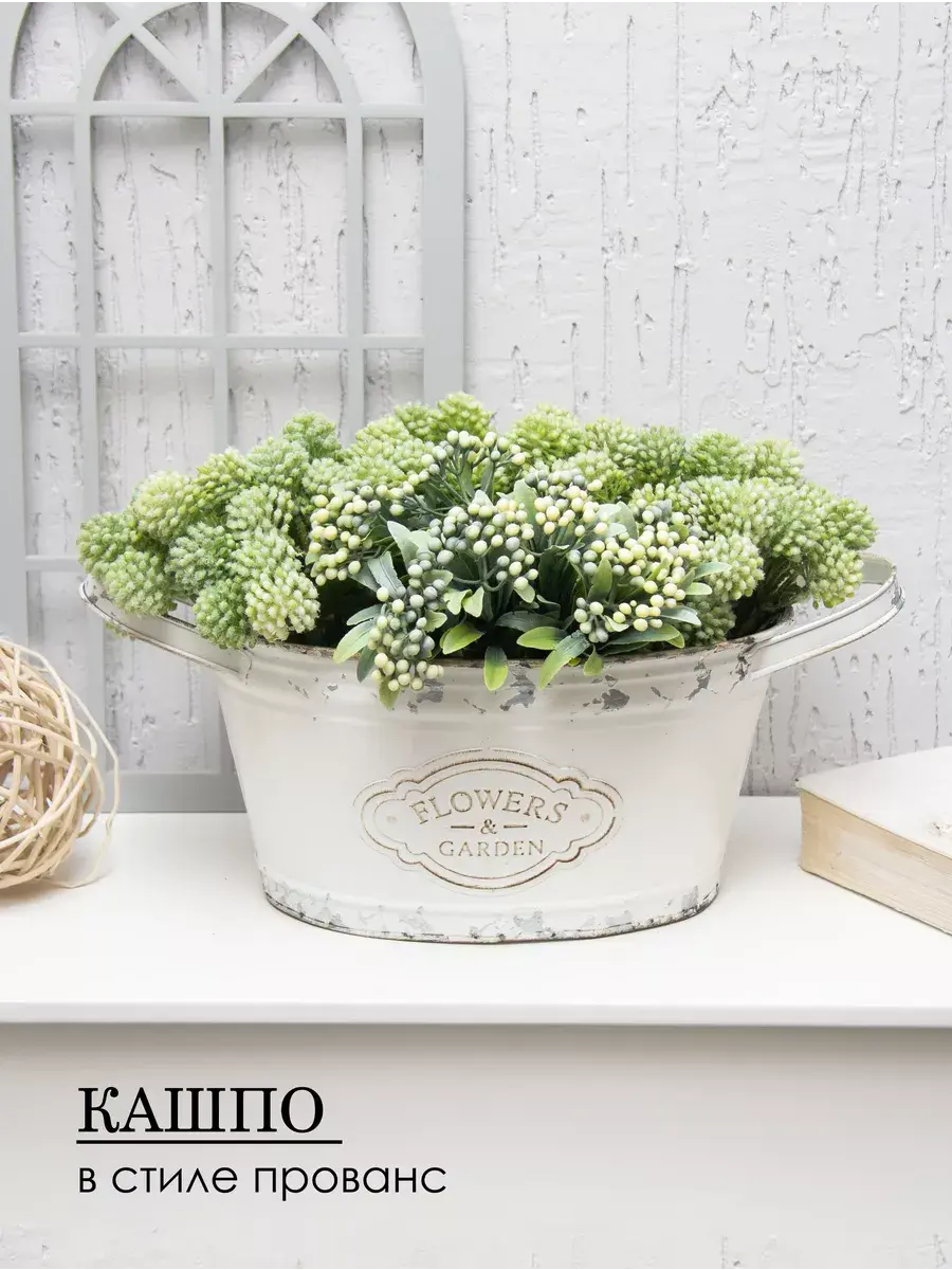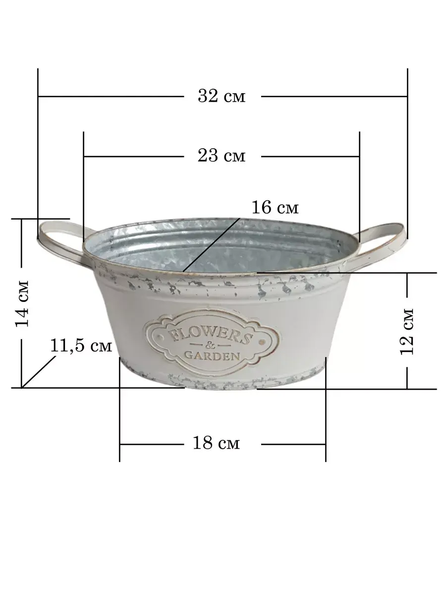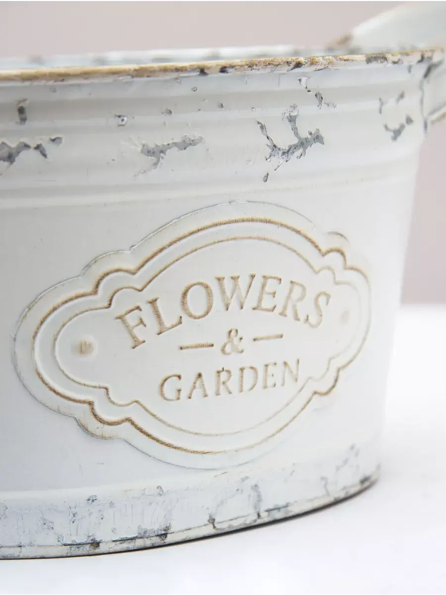 Винтажное металлическое овальное ведерко-кашпо для растений. Станет прекрасным украшением интерьера в стиле прованс. Кашпо можно использовать как с живыми, так и искусственными растениями. Размер кашпо 32*14 см.