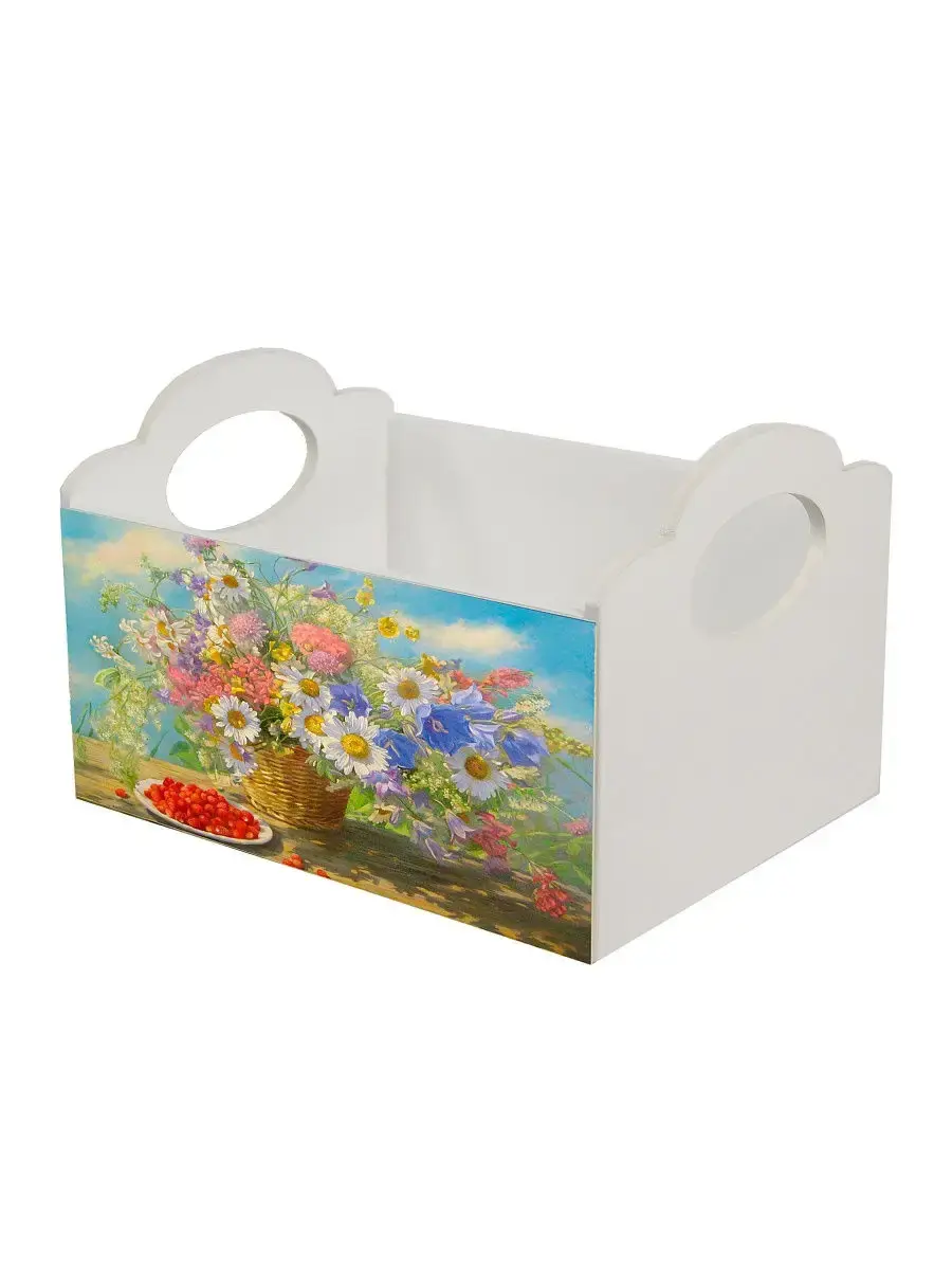 Небольшой декоративный ящик для хранения мелочей, упаковки подарка, сладких подарков и просто украшение интерьера. Изготовлен из высококачественной березовой фанеры, окрашен акриловой эмалью на водной основе без запаха. Размер кашпо 22х18х14,5 см. На лицевой части наклеена печатная картинка, покрыта горячей ламинацией, можно протирать влажной тканью (в воду не опускать). Органайзер — это практичное решение для хранения косметики, украшений и мелочей. Он поможет навести порядок на столе или в шкафу, сохранив все необходимые вещи под рукой. Этот аксессуар подходит для использования в ванной комнате, на туалетном столике или в спальне. Его продуманный дизайн позволяет удобно разместить различные косметические средства, такие как помады, тени и кремы, а также украшения — кольца, серьги и браслеты. Органайзер обеспечивает легкий доступ к вещам, что экономит время при сборе или укладке. Изготовленный из качественных материалов, он отличается надежностью и долговечностью, что гарантирует долгий срок службы. Благодаря компактным размерам, ящик легко вписывается в любой интерьер и не занимает много места. С ним вы сможете создать гармоничное и аккуратное пространство, где все будет на своем месте.