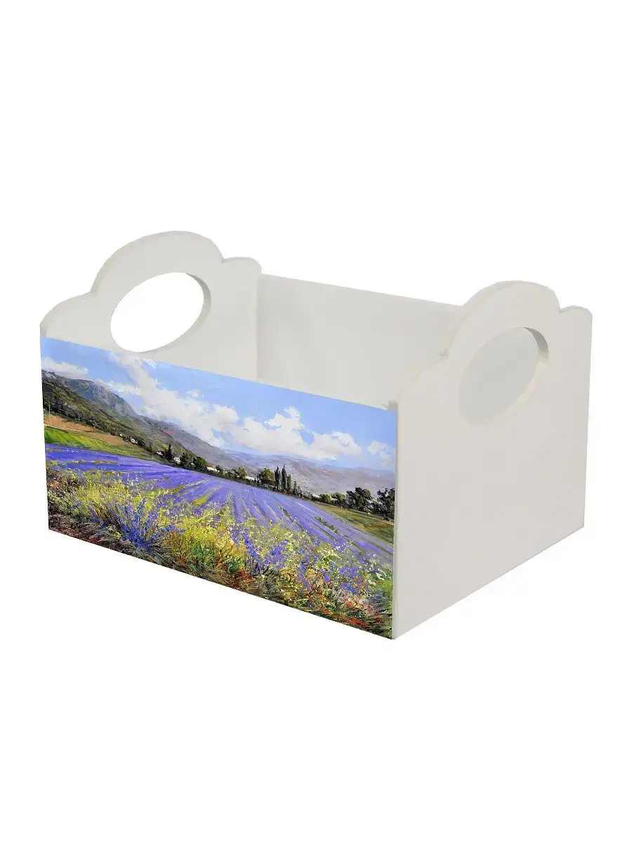 Небольшой декоративный ящик для хранения мелочей, упаковки подарка, сладких подарков и просто украшение интерьера. Изготовлен из высококачественной березовой фанеры, окрашен акриловой эмалью на водной основе без запаха. Размер кашпо 22х18х14,5 см. На лицевой части наклеена печатная картинка, покрыта горячей ламинацией, можно протирать влажной тканью (в воду не опускать). Органайзер — это практичное решение для хранения косметики, украшений и мелочей. Он поможет навести порядок на столе или в шкафу, сохранив все необходимые вещи под рукой. Этот аксессуар подходит для использования в ванной комнате, на туалетном столике или в спальне. Его продуманный дизайн позволяет удобно разместить различные косметические средства, такие как помады, тени и кремы, а также украшения — кольца, серьги и браслеты. Органайзер обеспечивает легкий доступ к вещам, что экономит время при сборе или укладке. Изготовленный из качественных материалов, он отличается надежностью и долговечностью, что гарантирует долгий срок службы. Благодаря компактным размерам, ящик легко вписывается в любой интерьер и не занимает много места. С ним вы сможете создать гармоничное и аккуратное пространство, где все будет на своем месте.