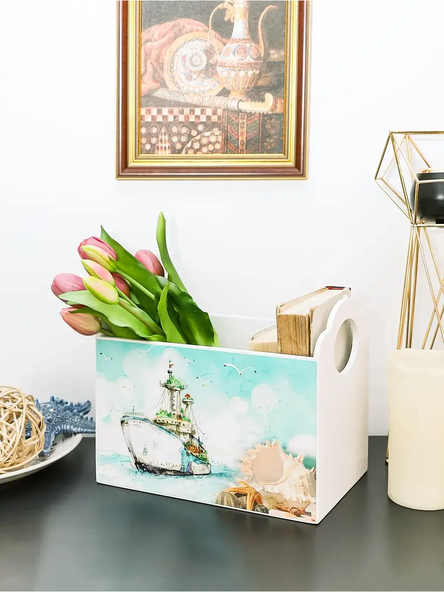 Представляем вашему вниманию деревянный ящик с круглыми ручками, который станет отличным решением для хранения и организации различных предметов в вашем доме. Изготовленный из высококачественной березовой фанеры, он отличается прочностью и долговечностью. Акриловая эмаль на водной основе, которой покрыт ящик, не имеет запаха и безопасна для использования в жилых помещениях. Этот органайзер идеально подходит для хранения мелочей, таких как косметика, игрушки, телефоны и пульты. Компактные размеры позволяют разместить его в любом уголке вашего дома, будь то гостиная, спальня или кухня. На лицевой стороне ящика наклеена печатная картинка, защищенная горячей ламинацией, что позволяет протирать её влажной тканью без риска повреждения. Ящик также может служить стильным элементом декора, добавляя уют и порядок в ваш дом. Используйте его на кухне для хранения специй, чая или кофе, и он станет не только практичным, но и декоративным элементом вашего интерьера. Этот ящик – идеальное решение для тех, кто ценит порядок и стиль в каждой детали. Он поможет вам организовать пространство и сохранить все необходимые вещи под рукой, при этом добавляя нотку элегантности в ваш дом. Независимо от того, используете ли вы его для хранения или в качестве декоративного элемента, этот ящик станет отличным дополнением к вашему интерьеру.