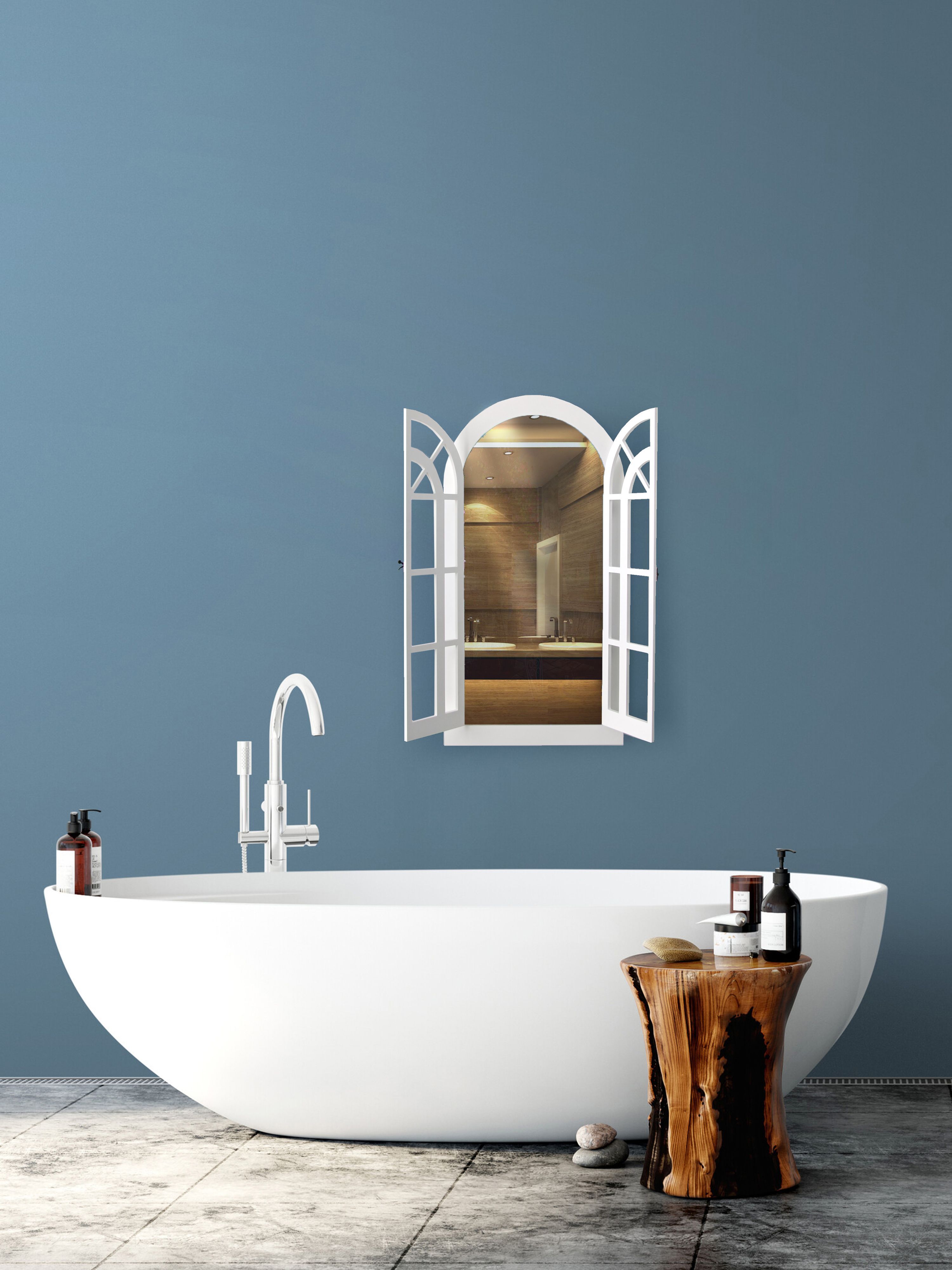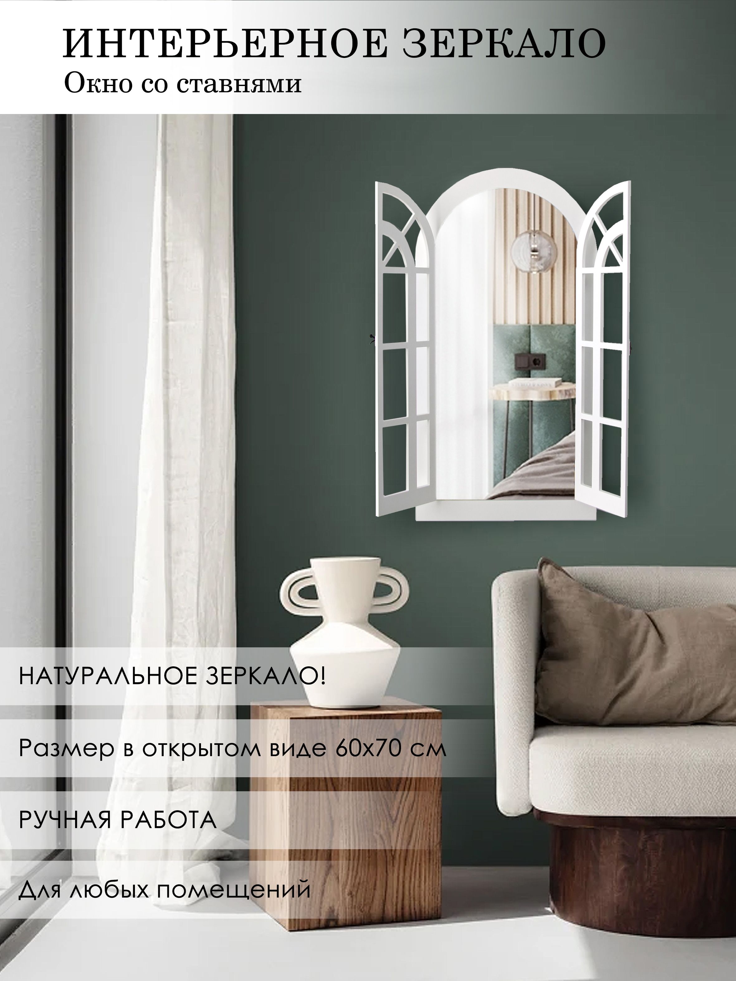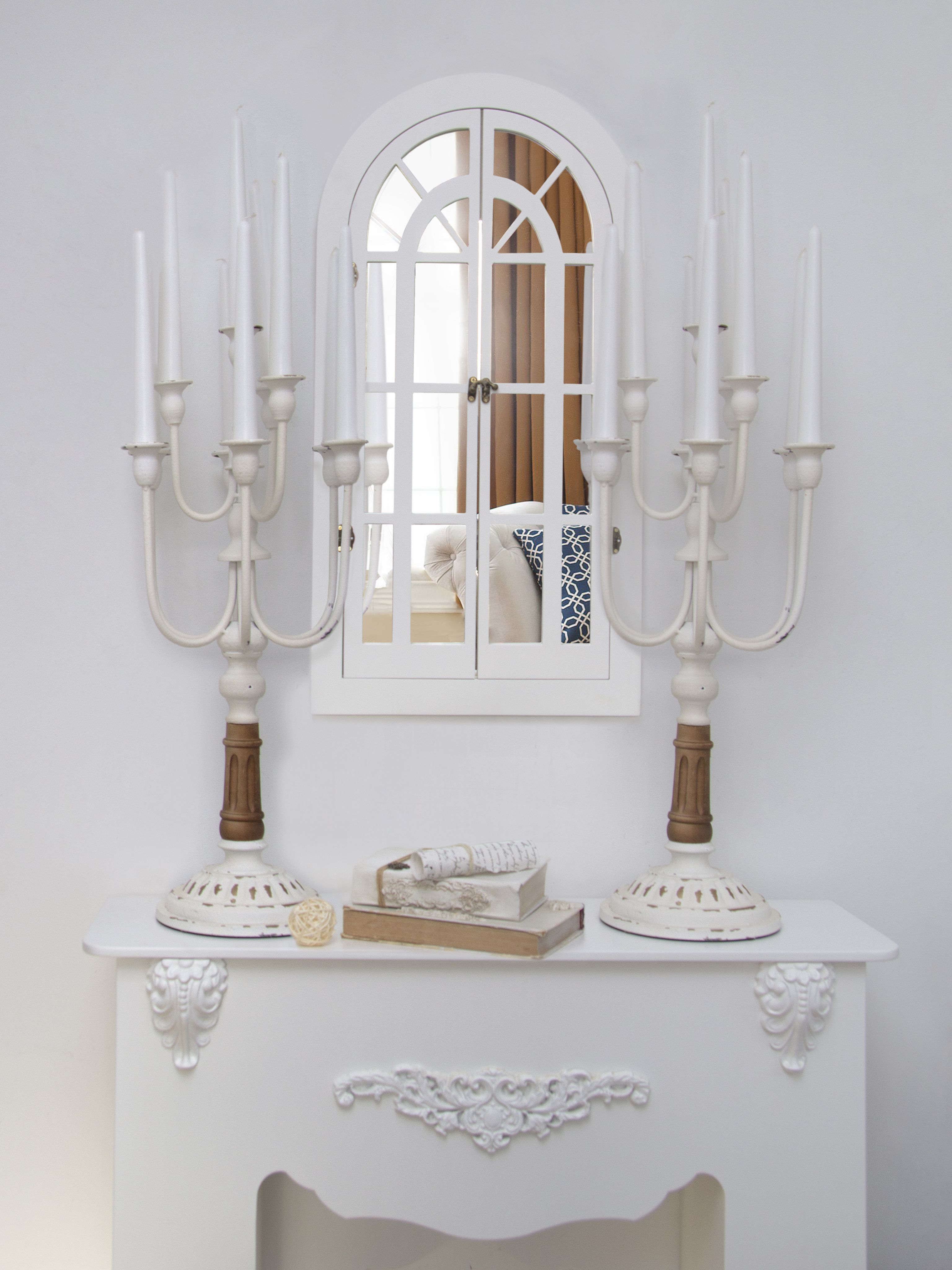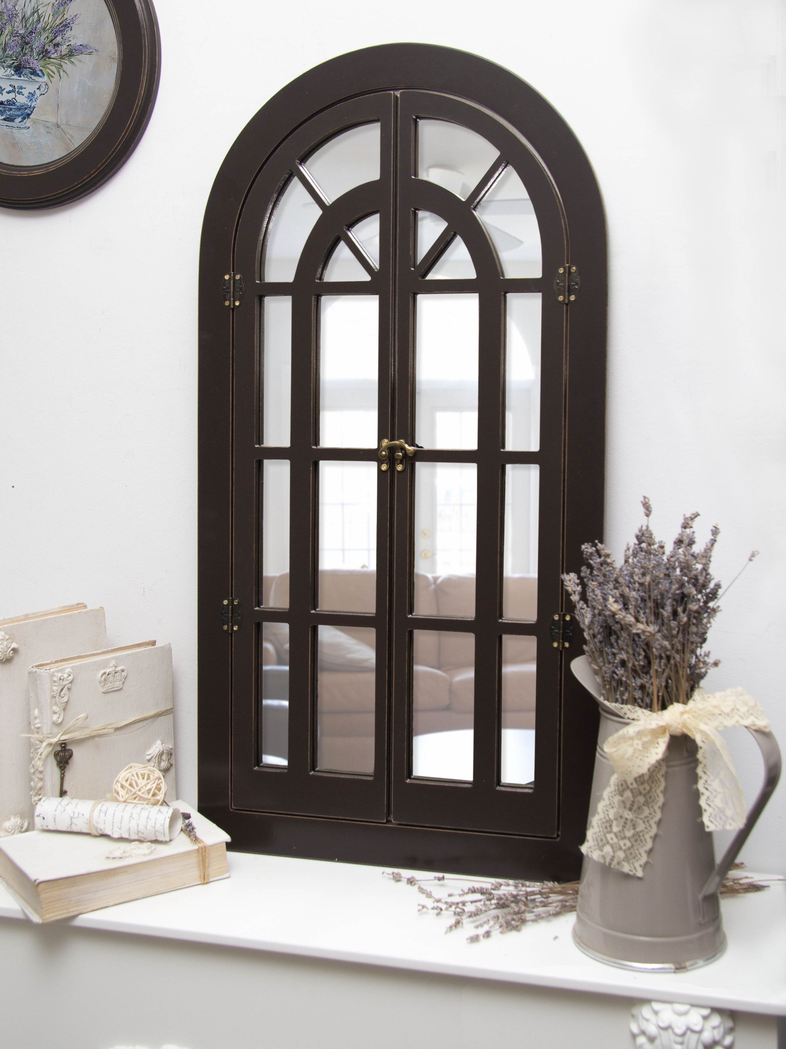 Зеркальный декор на стену в форме окна. Размер зеркального панно 77х43 см. Вставки из натурального зеркала. Интерьерное зеркало будет прекрасным дополнением к настенному декору. Рама зеркала покрашена акриловой эмалью на водной основе. Подойдет для оформления интерьера в стиле прованс, добавит света и пространства в интерьере. На обратной стороне зеркала две петли, шурупы для крепления на стену в комплекте