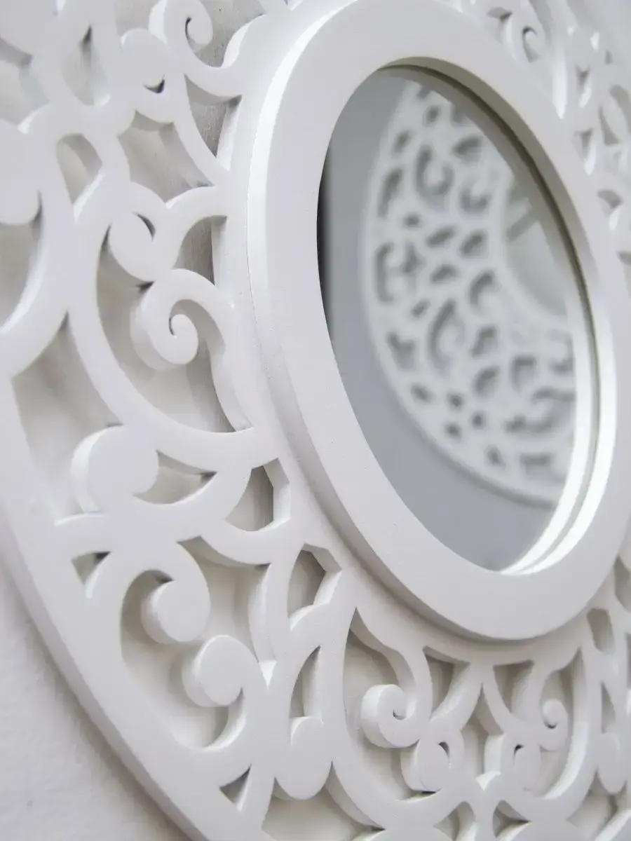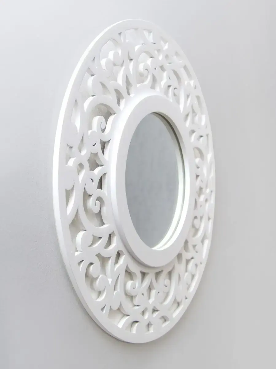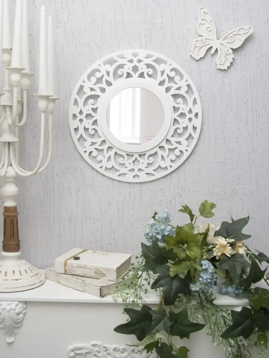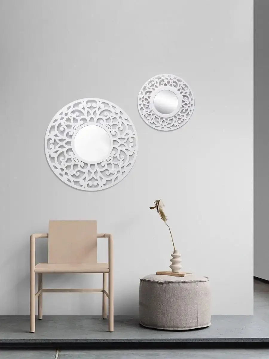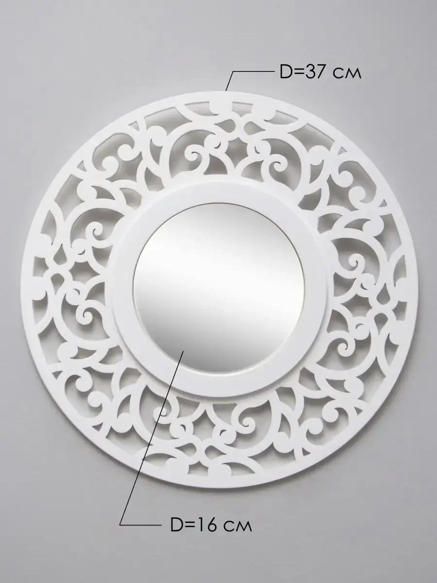ВНИМАНИЕ!! Отказаться от товара можно только в ПВЗ! Если вы забрали зеркало домой, обратная доставка до продавца за ваш счет! Через ВБ оформить возврат нельзя! Зеркало Флоренция 37 см от HOME GALLERY – это идеальное дополнение для любого интерьера, которое придаст вашему дому особый шарм и элегантность. Это круглое настенное зеркало с диаметром 37 см, выполненное из МДФ, что обеспечивает его легкость и прочность. Оригинальный рисунок абстракции резной рамы зеркала добавляет уникальности и стиля любому пространству, делая его центральным элементом комнаты.