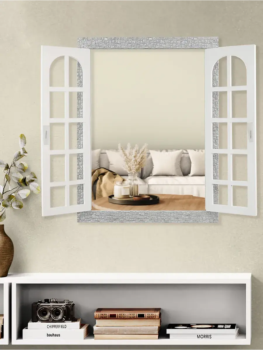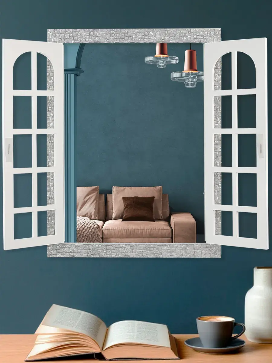 Зеркало в виде фальш - окна со ставнями. Зеркальное панно со ставнями станет прекрасным украшением интерьера, добавит пространства в детской или маленькой спальне. Декор для комнаты.