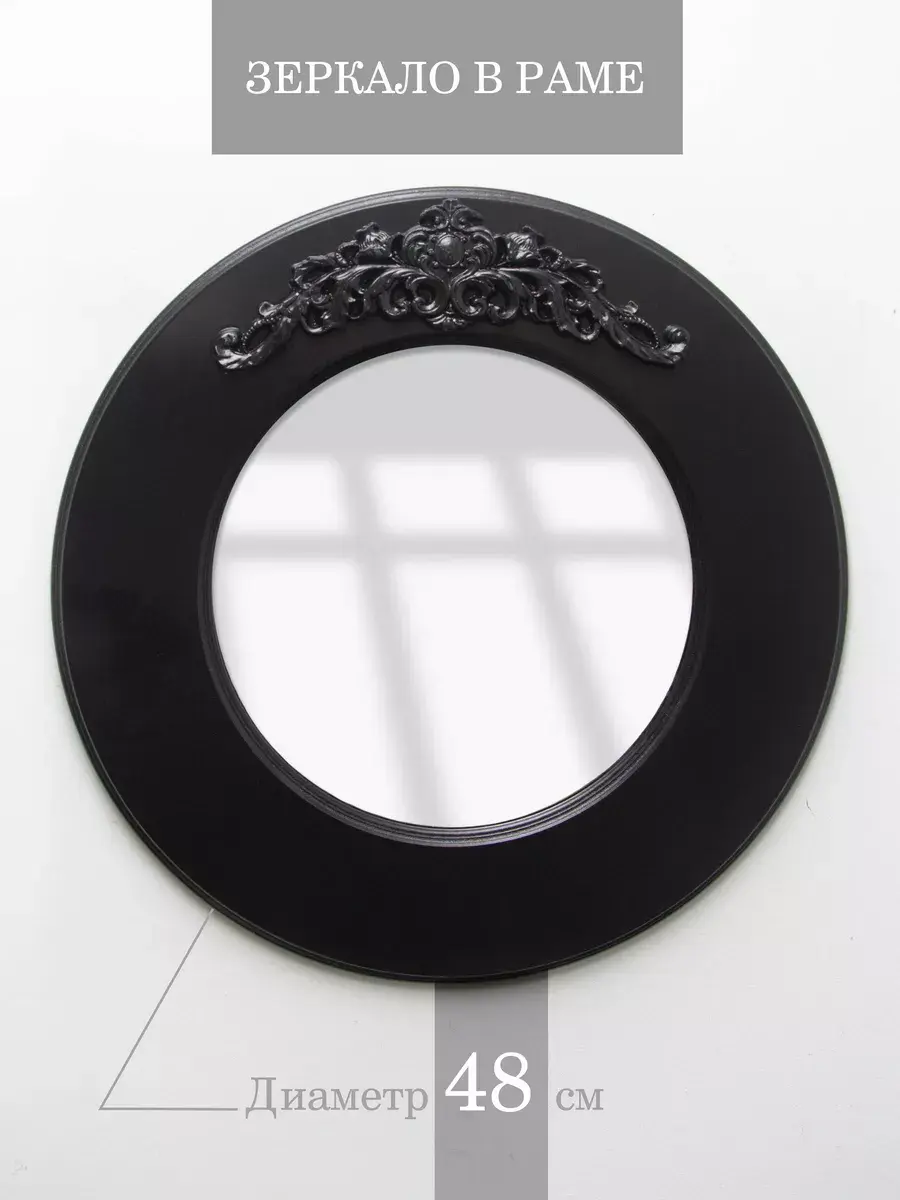 Диаметр настеного зеркала 48см, зеркального полотна 29 см. Круглое зеркало украшено лепниной ручной работы. Зеркало прекрасно подойдет в Ваш интерьер, а разнообразие размеров и расцветок позволит составить композицию из зеркал разного размера. Крепление для стены в комплекте.