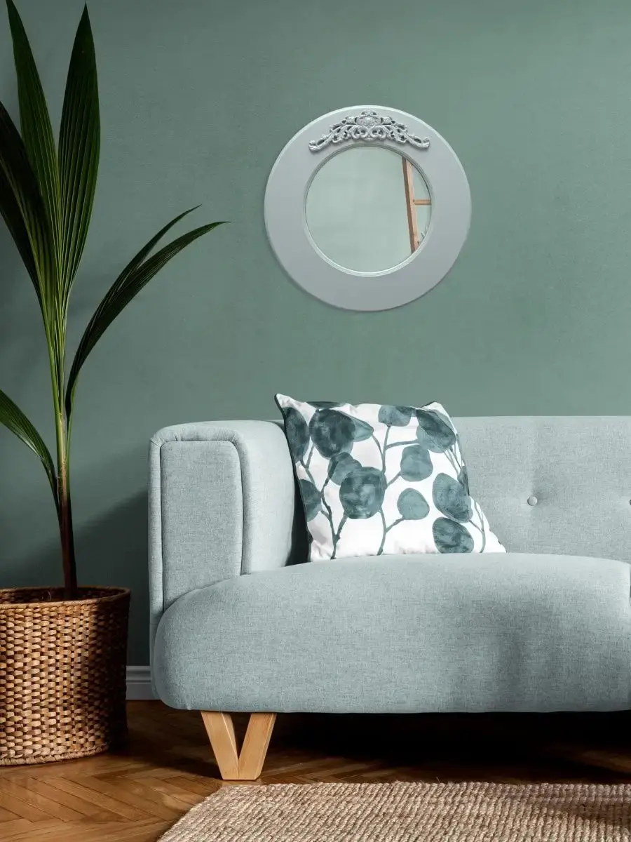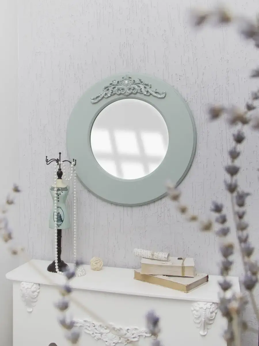 Зеркало интерьерное в широкой деревянной раме с лепниной. Настенное круглое зеркало в рамe станет стильным акцентом в вашем интерьере. Оно идеально подходит для спальни или других помещений, добавляя нотку элегантности и света. Декоративное зеркало можно разместить на стене над туалетным столиком. Это практичное решение для любителей красивого оформления пространства, вдохновленного идеями из Pinterest. Оснащено надежным креплением, что обеспечивает легкость установки и надежность в эксплуатации.