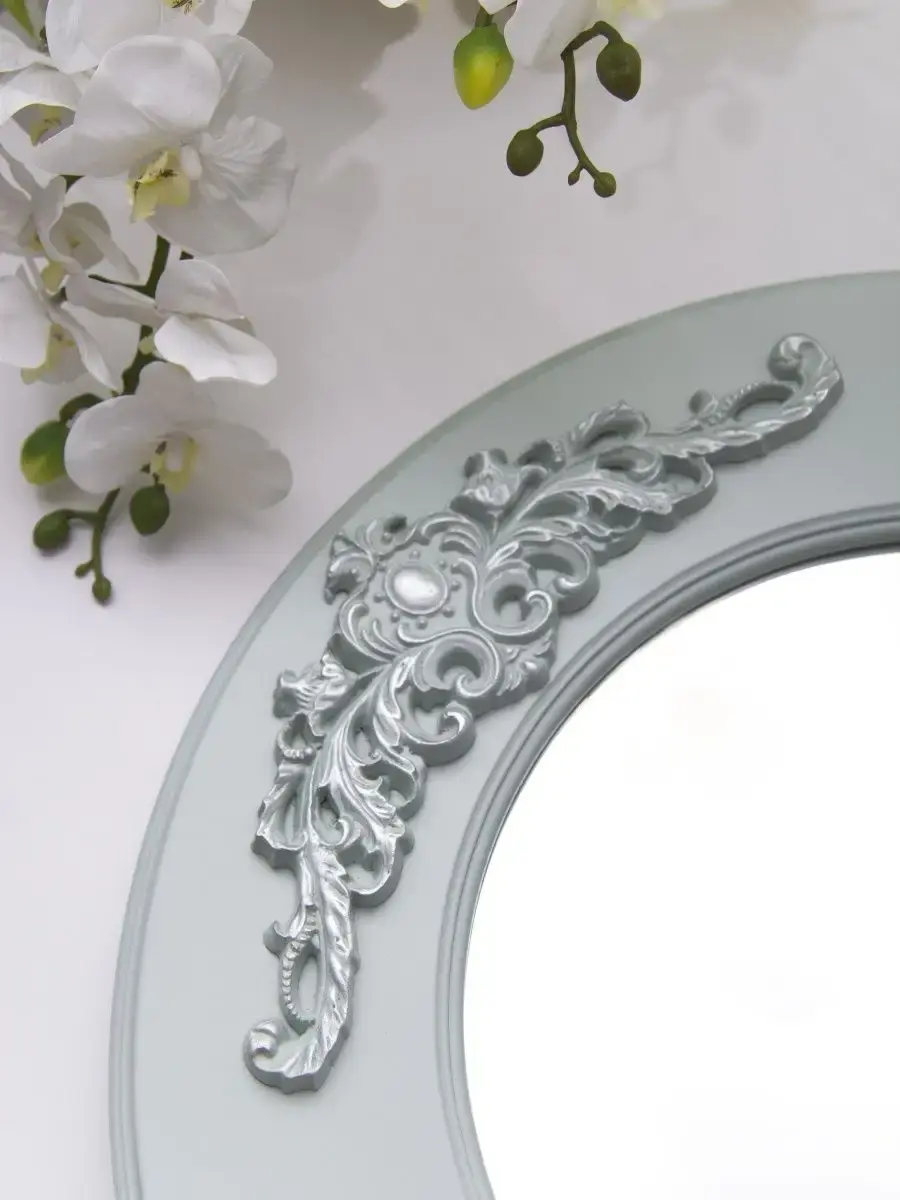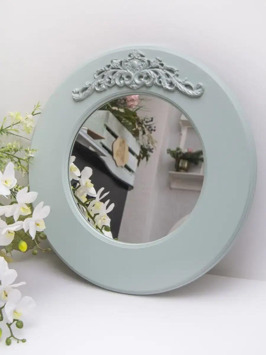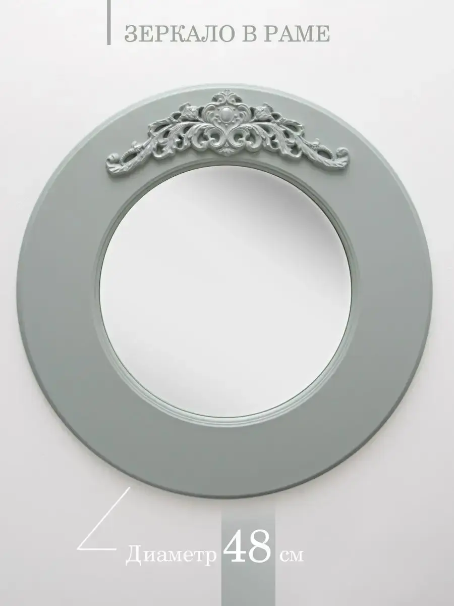 Диаметр настеного зеркала 48см, зеркального полотна 29 см. Круглое зеркало украшено лепниной ручной работы. Зеркало прекрасно подойдет в Ваш интерьер, а разнообразие размеров и расцветок позволит составить композицию из зеркал разного размера. Крепление для стены в комплекте.