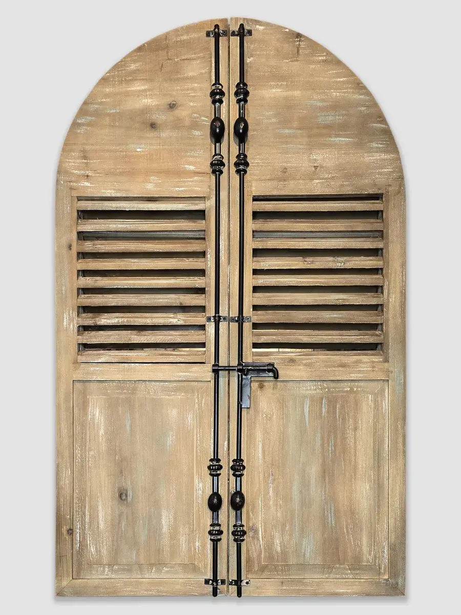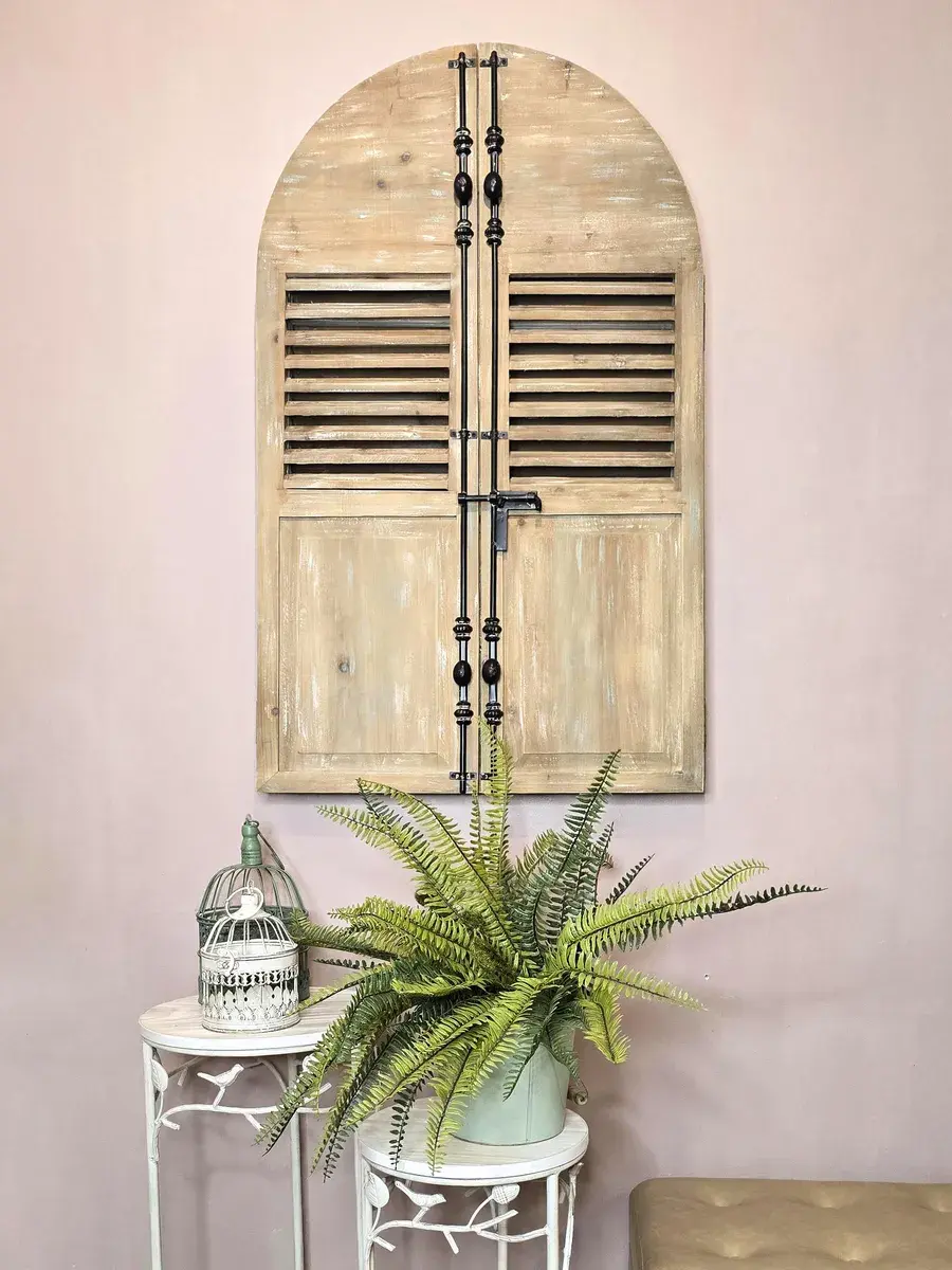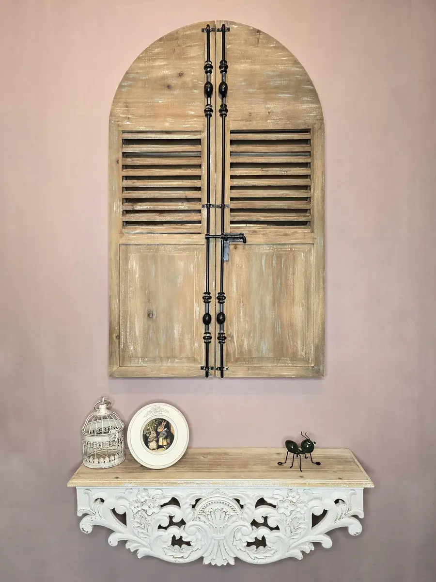 Настенный декор изготовлен из МДФ 12 мм., вставки из зеркала 4мм не искажает изображение, размер зеркала в раме 98х60 см, с открытыми ставнями. Рама зеркала широкая, не покрашена. На обратной стороне зеркала две петли, шурупы для крепления на стену в комплекте.