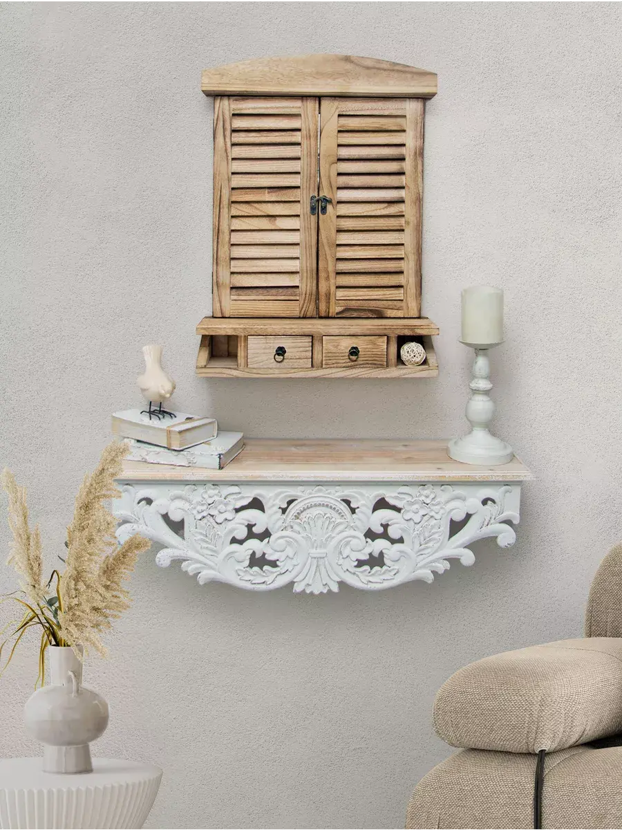 Это винтажное настенное зеркало с резной рамой станет стильным акцентом в вашем интерьере. Оно прекрасно подходит для установки в прихожую, спальню или гостиную, добавляя изысканности и шарма. Выполнено с учетом современных тенденций и имеет ставни, что придает ему особую атмосферу уюта и комфорта. Резная рама подчеркивает художественный подход к оформлению, делая его настоящим произведением искусства. Оно не только функционально, но и эстетично, создавая ощущение пространства и света в любом помещении. Благодаря своему дизайну, гармонично впишется в различные стили интерьера, будь то классический или современный. Выбирая это зеркало, вы обретаете не просто предмет мебели, а элемент, который будет радовать глаз и привносить в дом тепло и стиль.