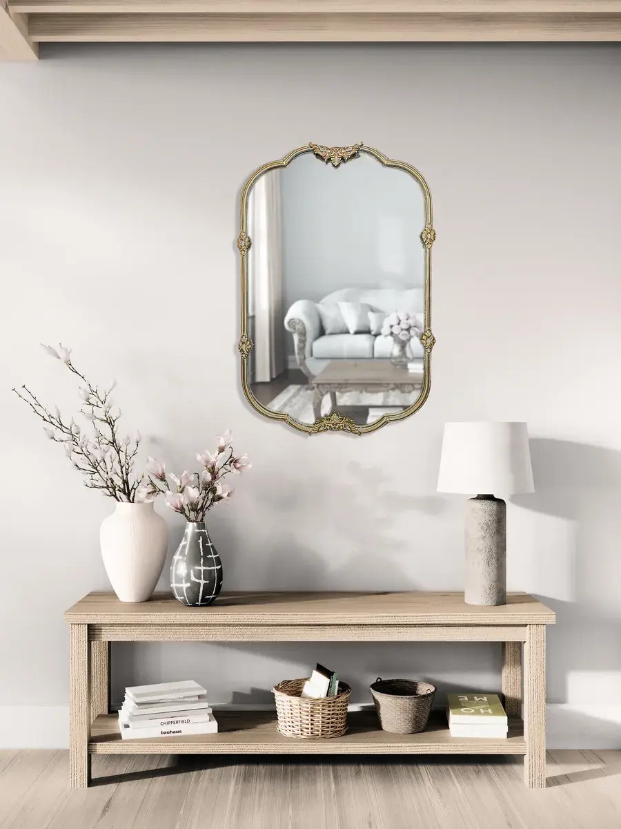 Зеркало винтажное в металлической раме 61*92 см от Elenadecor станет настоящим украшением вашего интерьера, добавляя ему шарма и утонченности. Благодаря металлической раме, зеркало отличается высоким качеством и долговечностью. Его стильный дизайн в духе классицизма или барокко идеально впишется в различные стили интерьера, будь то гостиная, прихожая или ванная комната. Необычная форма зеркала придает ему особую элегантность, а орнамент на раме добавляет роскоши вашему интерьеру. Зеркало Elenadecor - это не просто предмет интерьера, а настоящий акцент, который подчеркнет ваш индивидуальный стиль и создаст атмосферу уюта и комфорта.