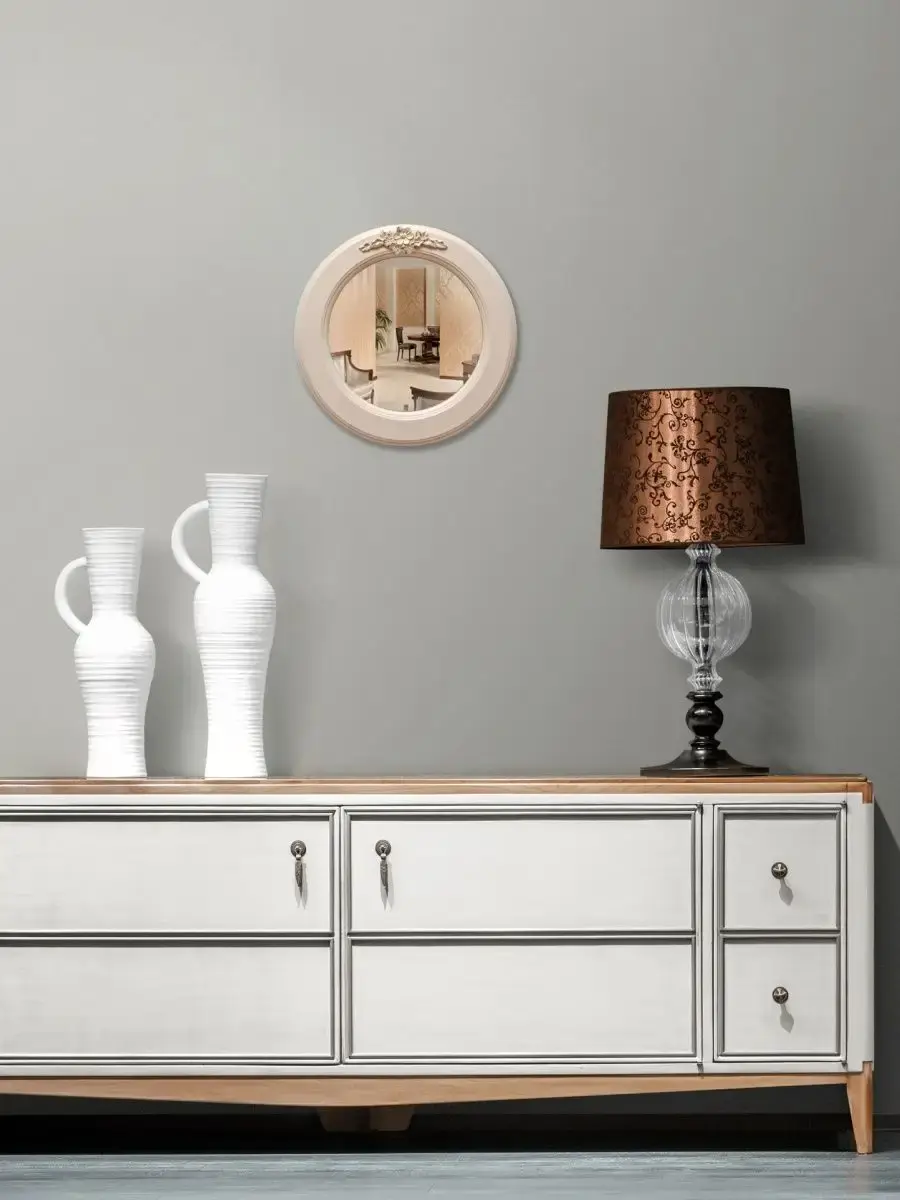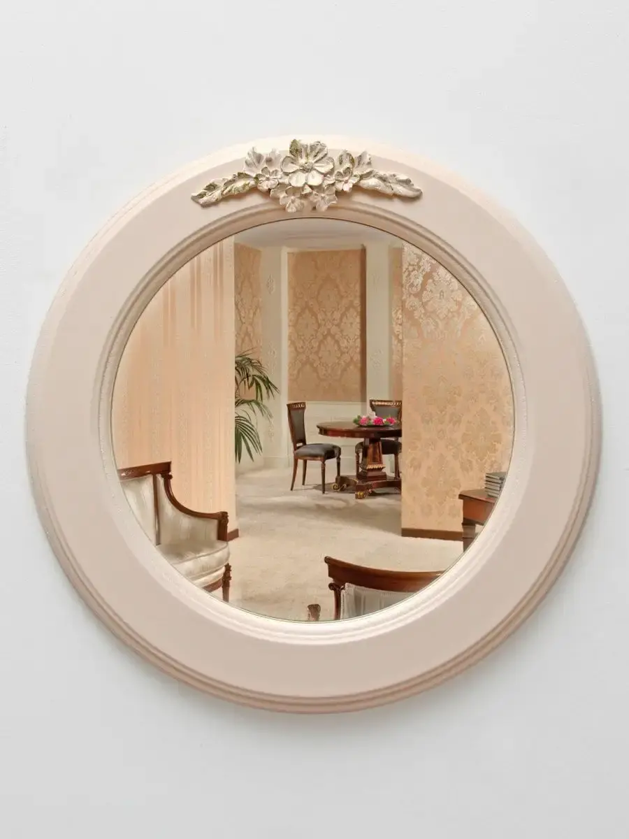 Настенное круглое зеркало в рамe станет стильным акцентом в вашем интерьере. Оно идеально подходит для спальни или других помещений, добавляя нотку элегантности и света. Декоративное зеркало можно разместить на стене над туалетным столиком. Это практичное решение для любителей красивого оформления пространства, вдохновленного идеями из Pinterest. Оснащено надежным креплением, что обеспечивает легкость установки и надежность в эксплуатации.