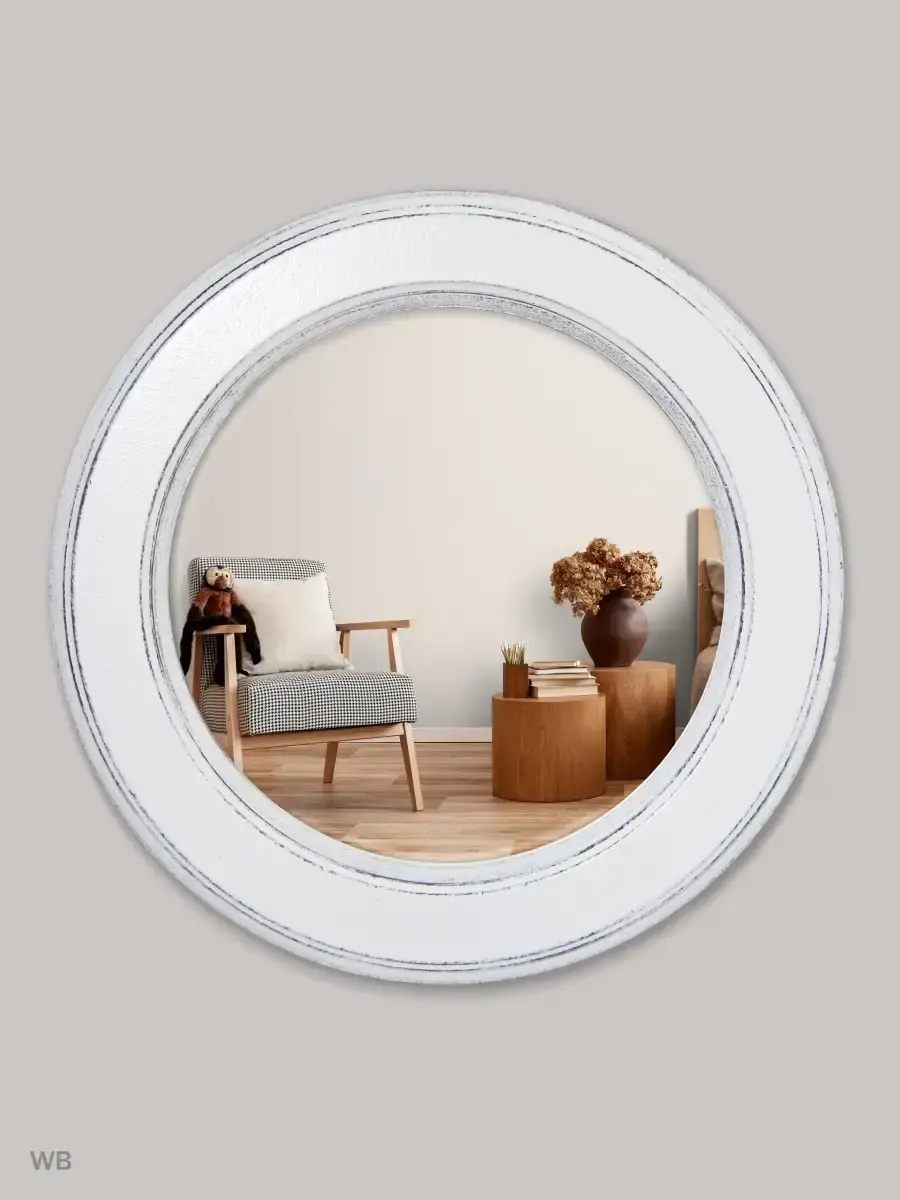 Настенное круглое зеркало в рамe станет стильным акцентом в вашем интерьере. Оно идеально подходит для спальни или других помещений, добавляя нотку элегантности и света. Декоративное зеркало можно разместить на стене над туалетным столиком. Это практичное решение для любителей красивого оформления пространства, вдохновленного идеями из Pinterest. Оснащено надежным креплением, что обеспечивает легкость установки и надежность в эксплуатации.