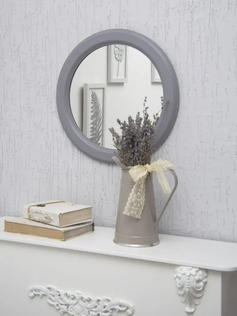 Интерьерное круглое зеркало в деревянной раме. Рама с небольшим лаконичным рельефом, дополнит современный интерьер, рамы с лепниной украсят интерьер в стиле прованс. Диаметр зеркального полотна 30 см, Диаметр зеркала в раме 37 см. Рама изготовлена из МДФ 16 мм, окрашена акриловой эмалью на водной основе (легко перекрашивается в любой цвет). Рама цельная, не имеет стыков и зазоров, что исключает повреждения при транспортировке. Зеркало станет украшением Вашего интерьера, а композиция из зеркал разного размера придаст легкости и оригинальности пространству вашего дома. Крепление для стены в комплекте.