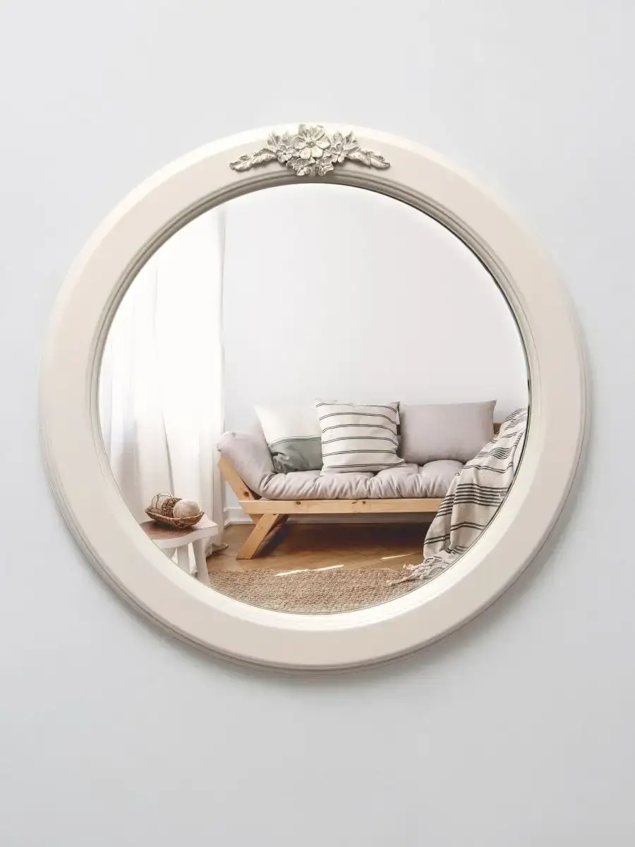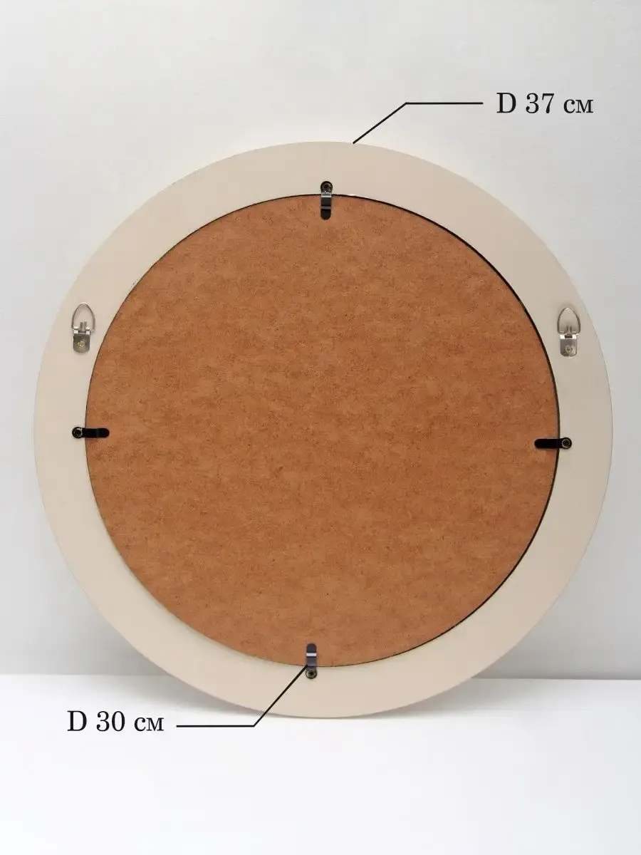 Интерьерное круглое зеркало в деревянной раме. Рама с небольшим лаконичным рельефом, дополнит современный интерьер, рамы с лепниной украсят интерьер в стиле прованс. Диаметр зеркального полотна 30 см, Диаметр зеркала в раме 37 см. Рама изготовлена из МДФ 16 мм, окрашена акриловой эмалью на водной основе (легко перекрашивается в любой цвет). Рама цельная, не имеет стыков и зазоров, что исключает повреждения при транспортировке. Зеркало станет украшением Вашего интерьера, а композиция из зеркал разного размера придаст легкости и оригинальности пространству вашего дома. Крепление для стены в комплекте.