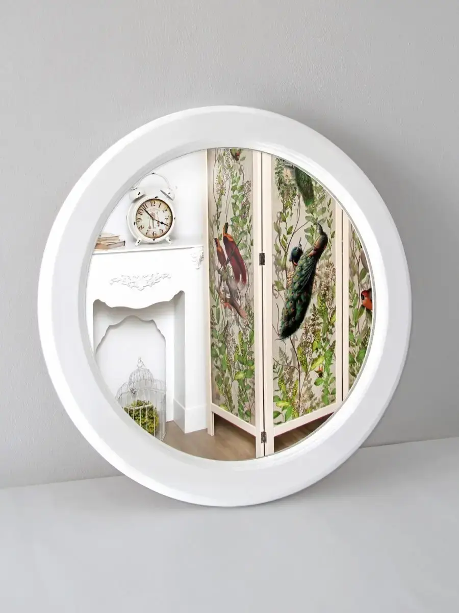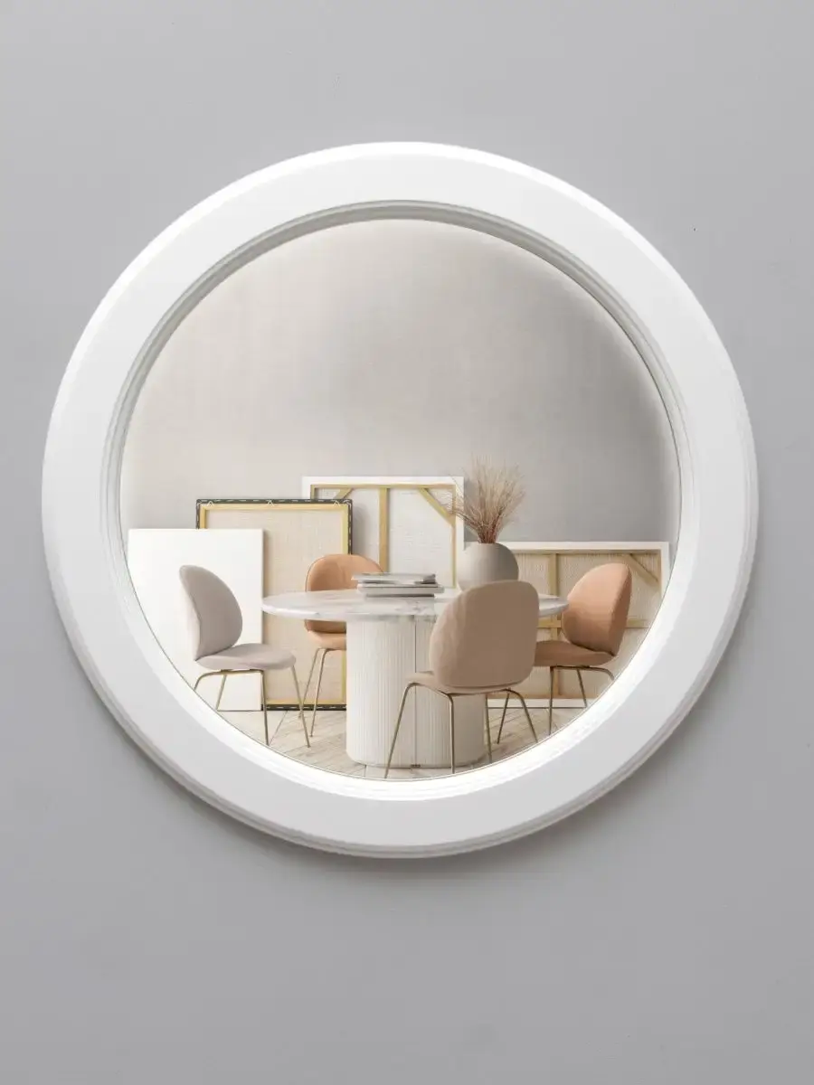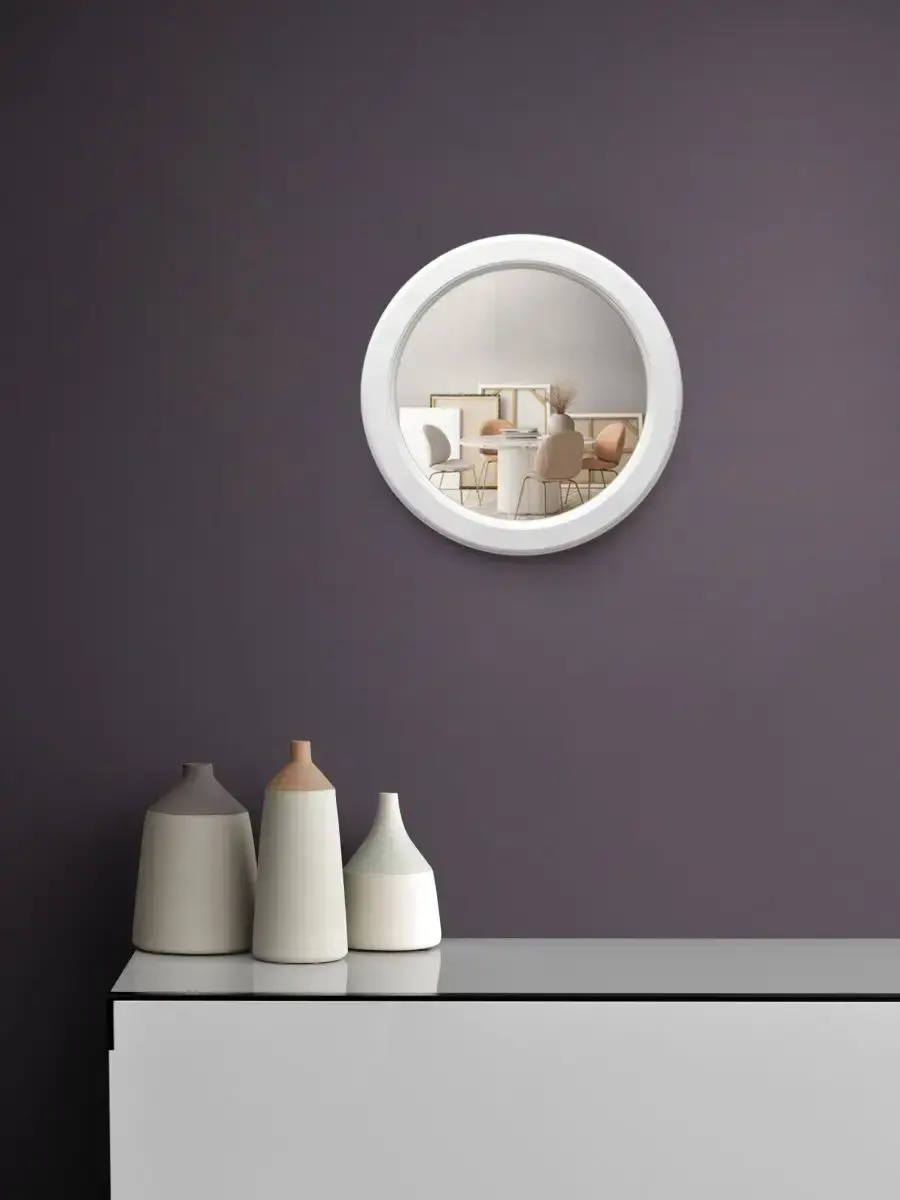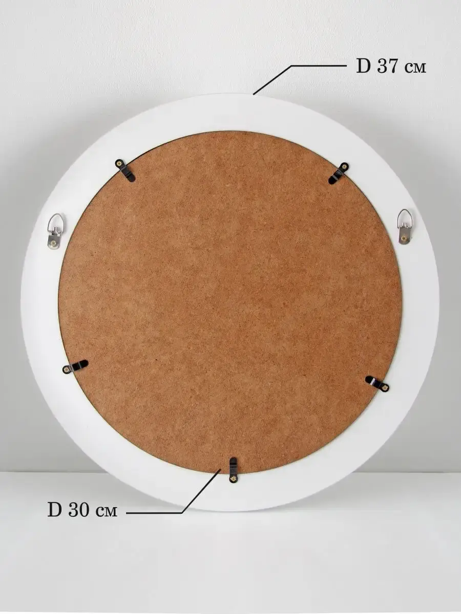 Интерьерное круглое зеркало в деревянной раме. Рама с небольшим лаконичным рельефом, дополнит современный интерьер, рамы с лепниной украсят интерьер в стиле прованс. Диаметр зеркального полотна 30 см, Диаметр зеркала в раме 37 см. Рама изготовлена из МДФ 16 мм, окрашена акриловой эмалью на водной основе (легко перекрашивается в любой цвет). Рама цельная, не имеет стыков и зазоров, что исключает повреждения при транспортировке. Зеркало станет украшением Вашего интерьера, а композиция из зеркал разного размера придаст легкости и оригинальности пространству вашего дома. Крепление для стены в комплекте.