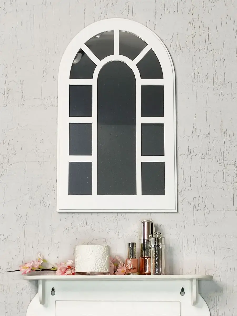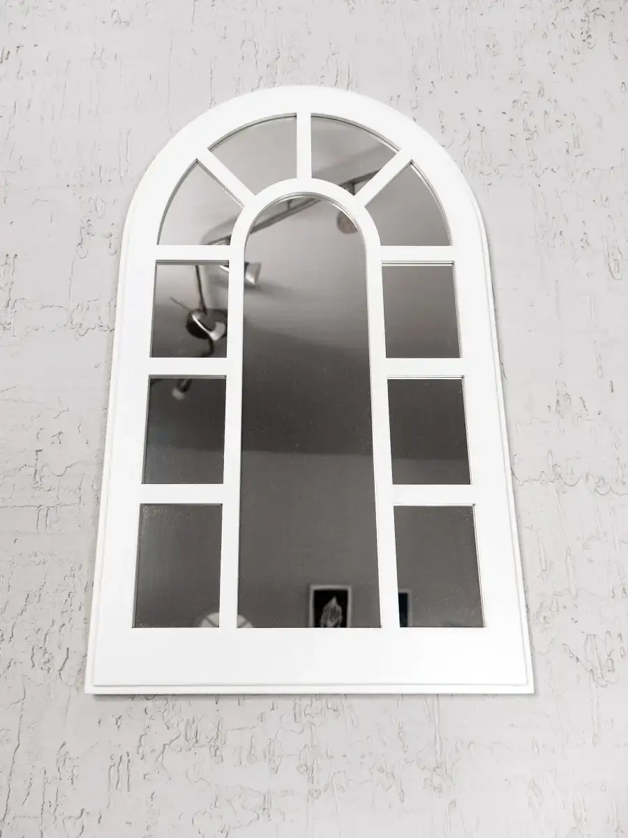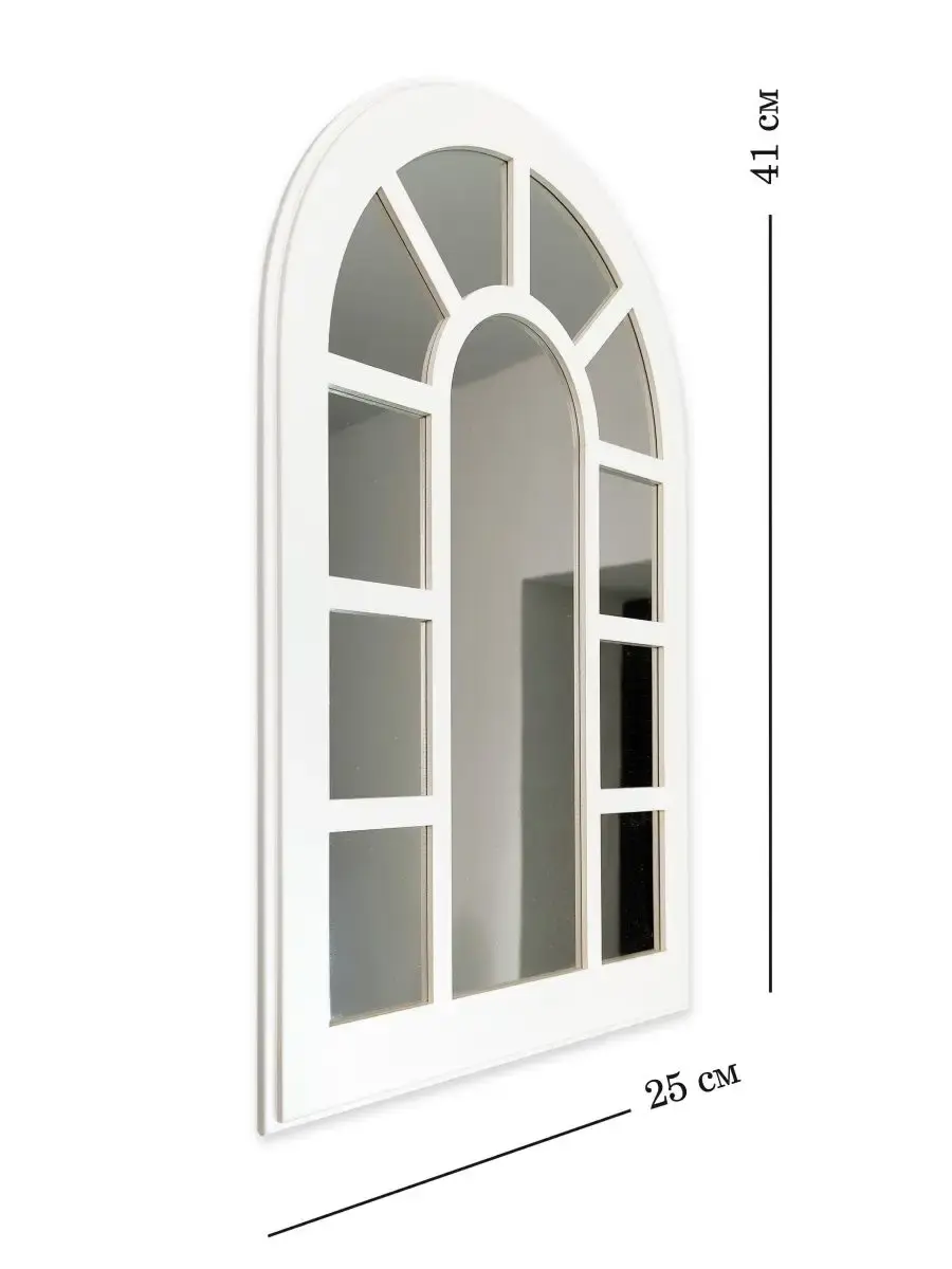 Зеркало в раме в форме окна. Зеркальный декор на стену - оригинальное решение для украшения вашего дома, офиса или салона красоты. Фальш-окна арка бренда Elenadecor - это простор для проявления фантазии. Рама зеркала покрашена акриловой эмалью на водной основе. Подойдет для оформления интерьера в стиле прованс, добавит света и пространства в интерьере. На обратной стороне зеркала две петли, шурупы для крепления на стену в комплекте. Зеркальное панно представлено в 3х размерах: 50х33, 46х29 и 41х25 см (смотрите описание в карточке). Вставки из натурального зеркала.