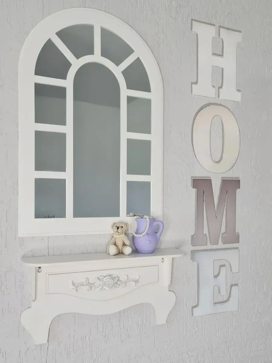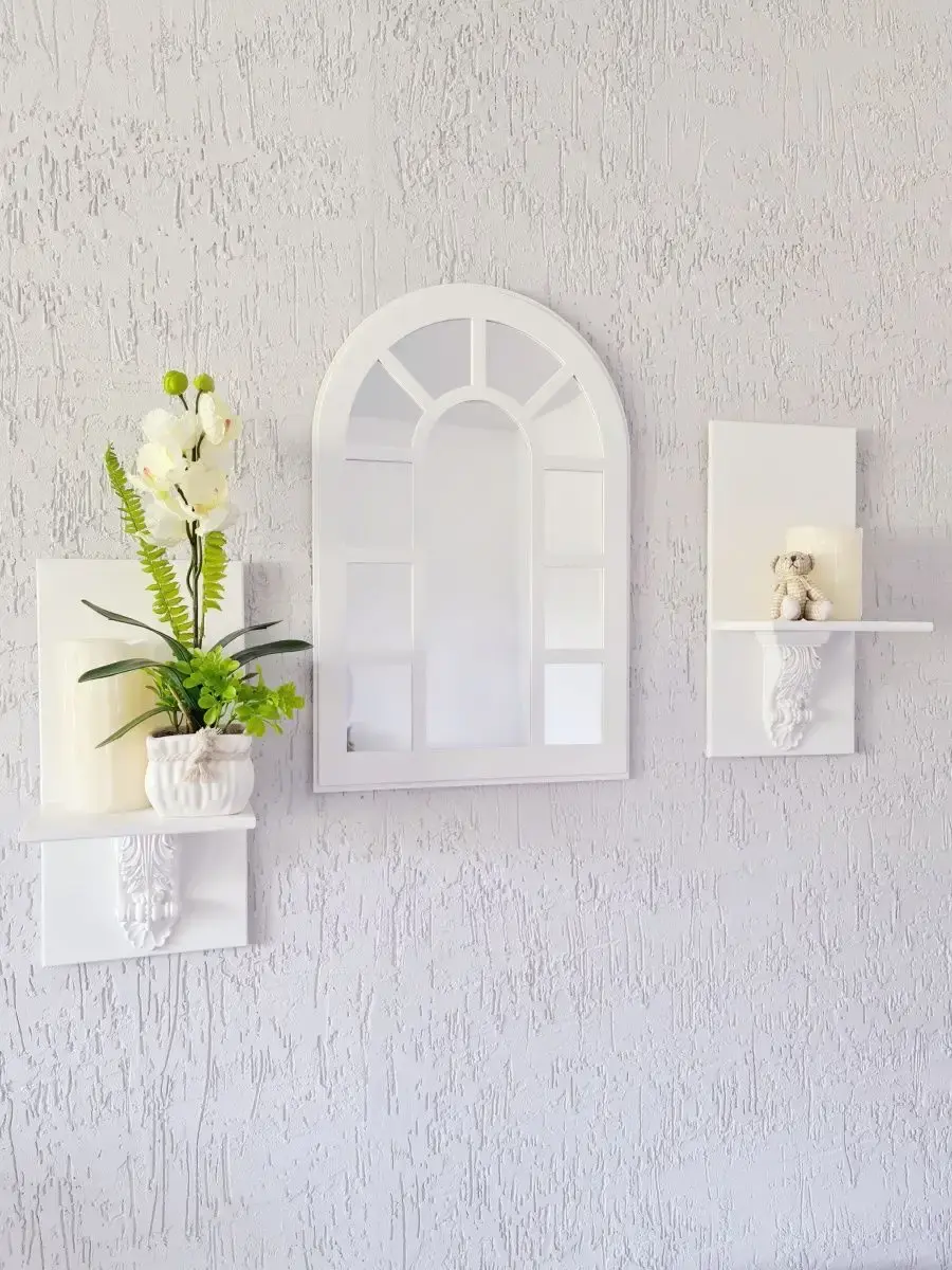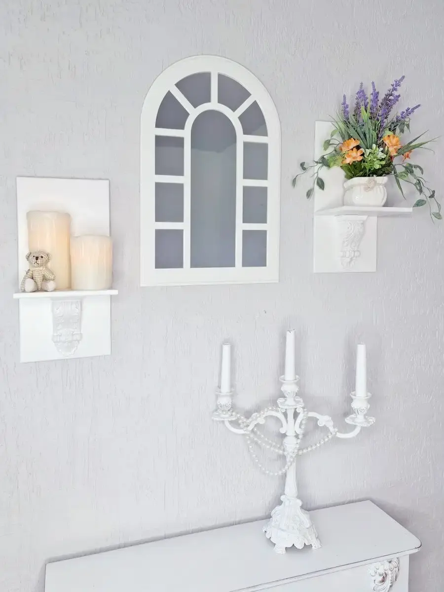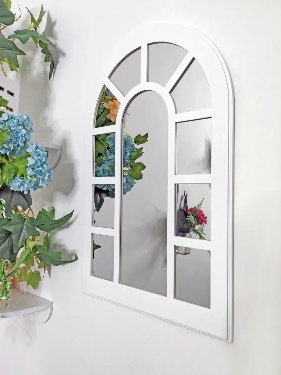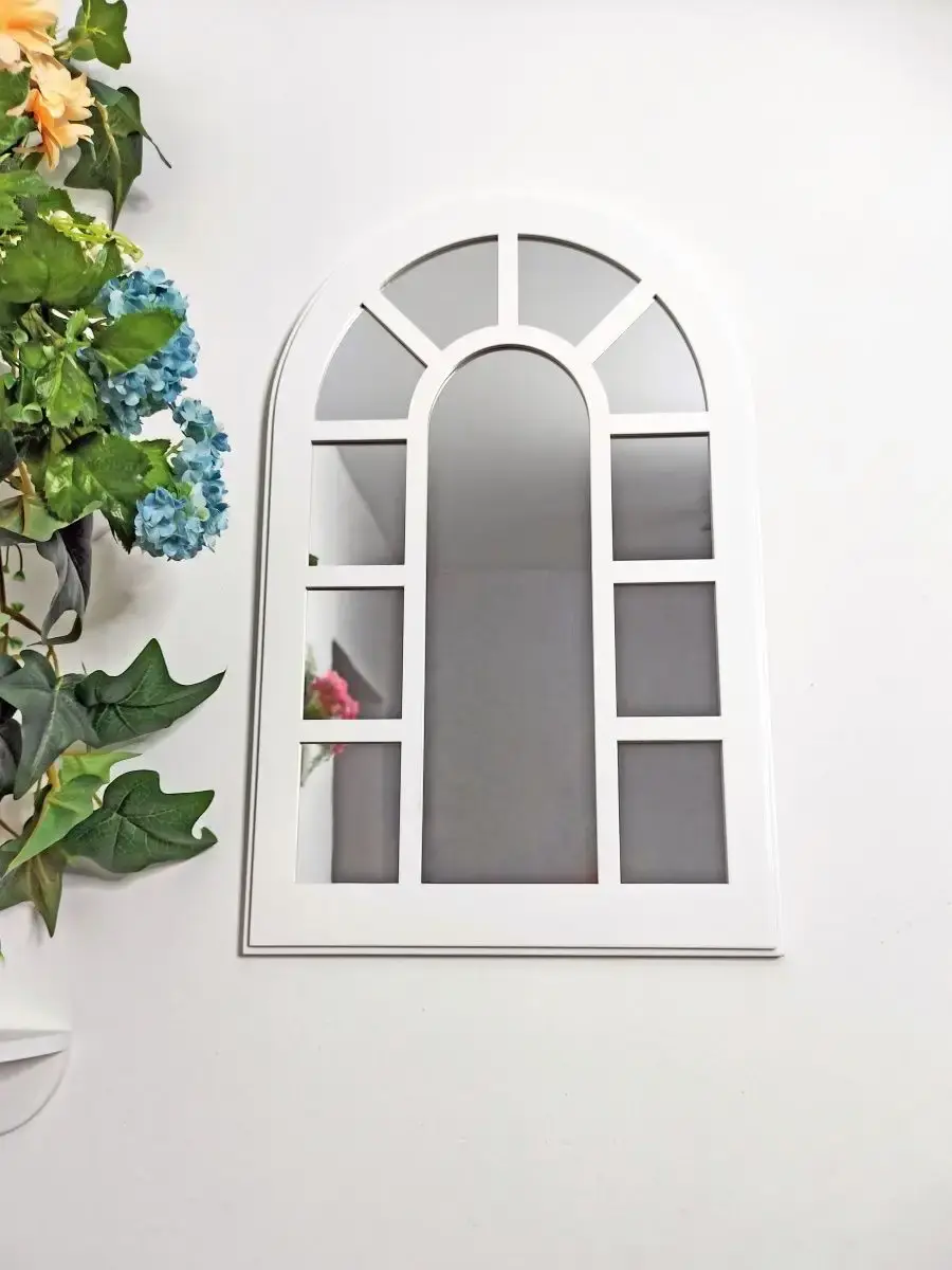 Зеркало в раме в форме окна. Зеркальный декор на стену - оригинальное решение для украшения вашего дома, офиса или салона красоты. Фальш-окна арка бренда Elenadecor - это простор для проявления фантазии. Рама зеркала покрашена акриловой эмалью на водной основе. Подойдет для оформления интерьера в стиле прованс, добавит света и пространства в интерьере. На обратной стороне зеркала две петли, шурупы для крепления на стену в комплекте. Зеркальное панно представлено в 3х размерах: 50х33, 46х29 и 41х25 см (смотрите описание в карточке). Вставки из натурального зеркала.