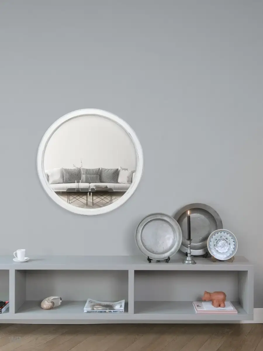 ВНИМАНИЕ!! Отказаться от товара можно только в ПВЗ! Если вы забрали зеркало домой, обратная доставка до продавца за ваш счет! Через ВБ оформить возврат нельзя! Интерьерное зеркало настенное в деревянной раме. Круглое зеркало на стену в ванную в стиле прованс. Диаметр зеркального полотна 50 см, Диаметр зеркала в раме 57 см. Рама изготовлена из МДФ 16 мм. Рама цельная, не имеет стыков и зазоров. Круглое зеркало прекрасно подходит в интерьер спальни или прихожей. Окрашено акриловой эмалью без запаха. Настенное зеркало в рамe станет стильным акцентом в вашем интерьере. Оно идеально подходит для спальни или других помещений, добавляя нотку элегантности и света. Декоративное зеркало можно разместить на стене или использовать над туалетном столиком. Это практичное решение для любителей красивого оформления пространства, вдохновленного идеями из Pinterest. Оно оснащено надежным креплением, что обеспечивает легкость установки и надежность в эксплуатации.