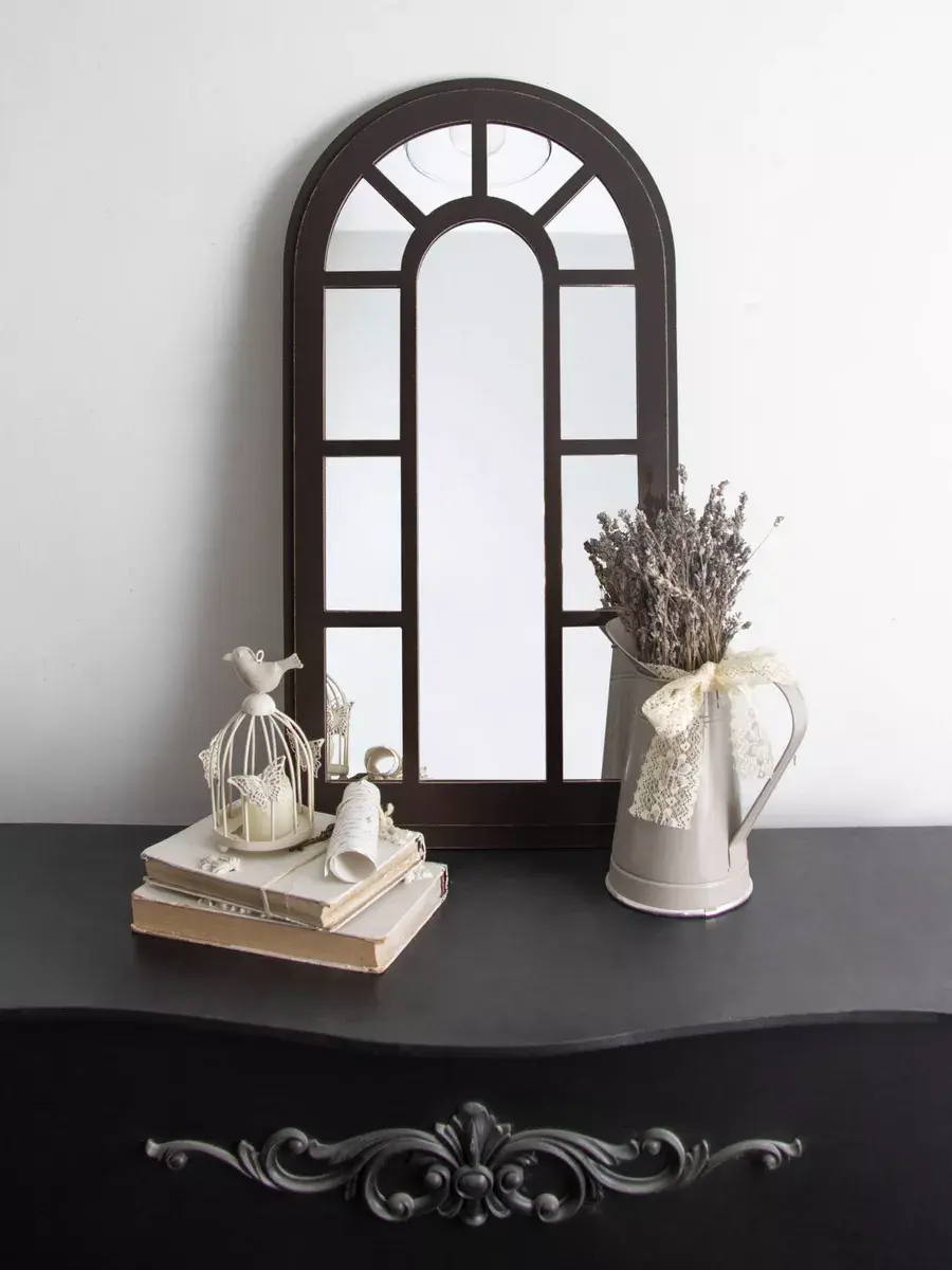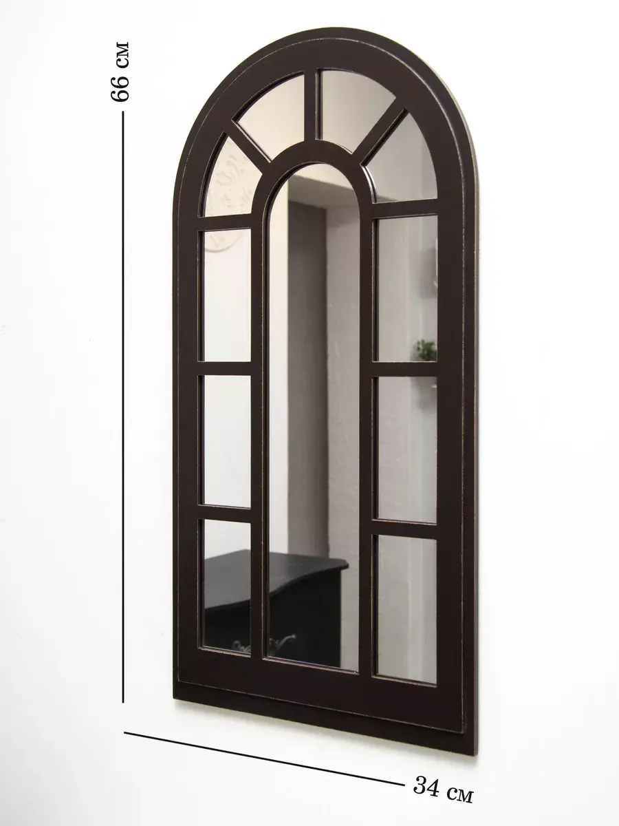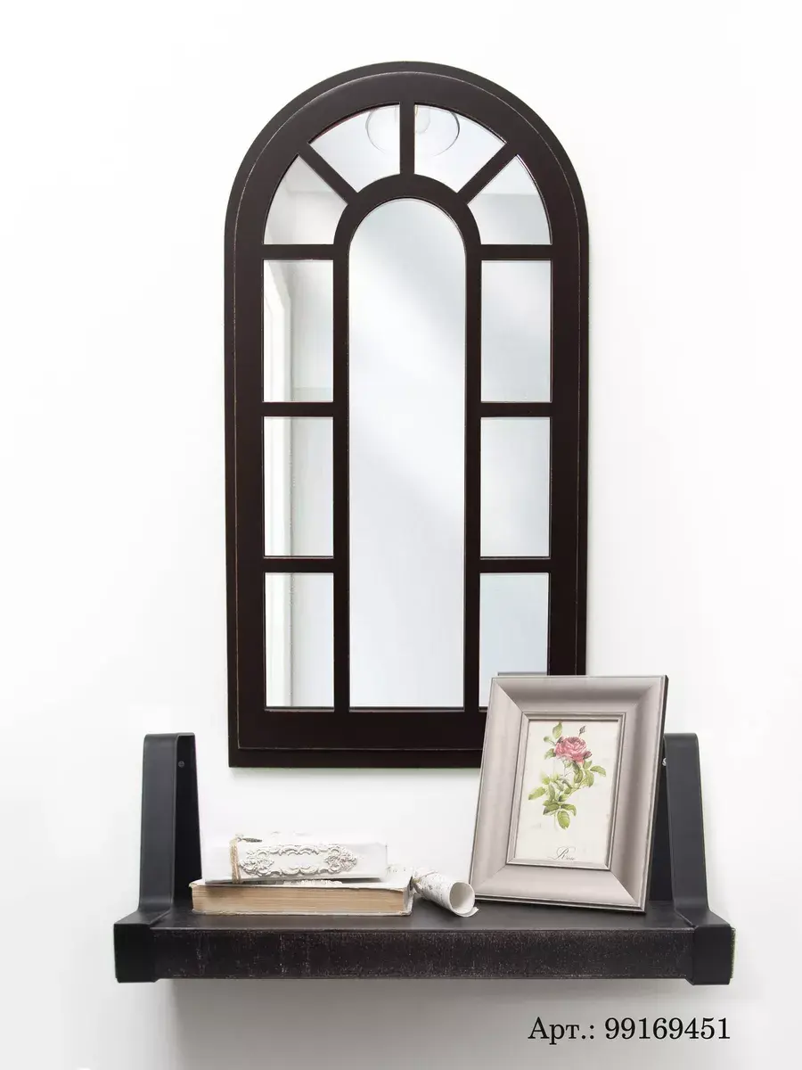 Зеркало-арка "Прованс". Современный зеркальный декор можно повесить стену в спальной или гостиной комнатах, так-же фальш-окно в форме арки прекрасно будет смотреться на комоде или над диваном. Настенный декор изготовлен из МДФ 12 мм., вставки из зеркала 4мм не искажает изображение, размер зеркала в раме 66х34 см.. Рама зеркала широкая, покрашена акриловой эмалью на водной основе. Подойдет для оформления интерьера в стиле прованс, кантри, шеббишик, добавит света и пространства в интерьере. На обратной стороне зеркала две петли, шурупы для крепления на стену в комплекте.