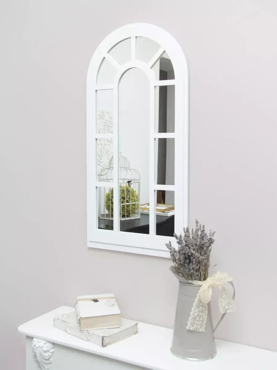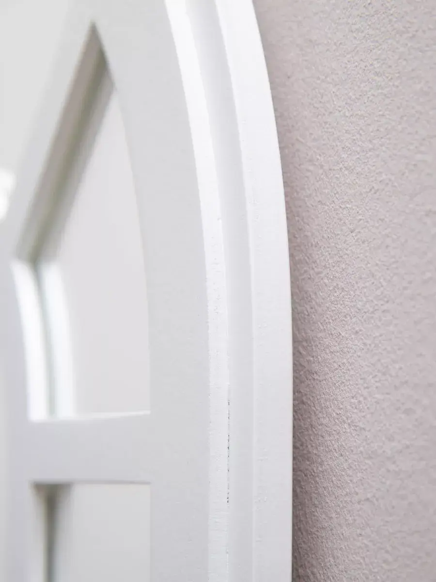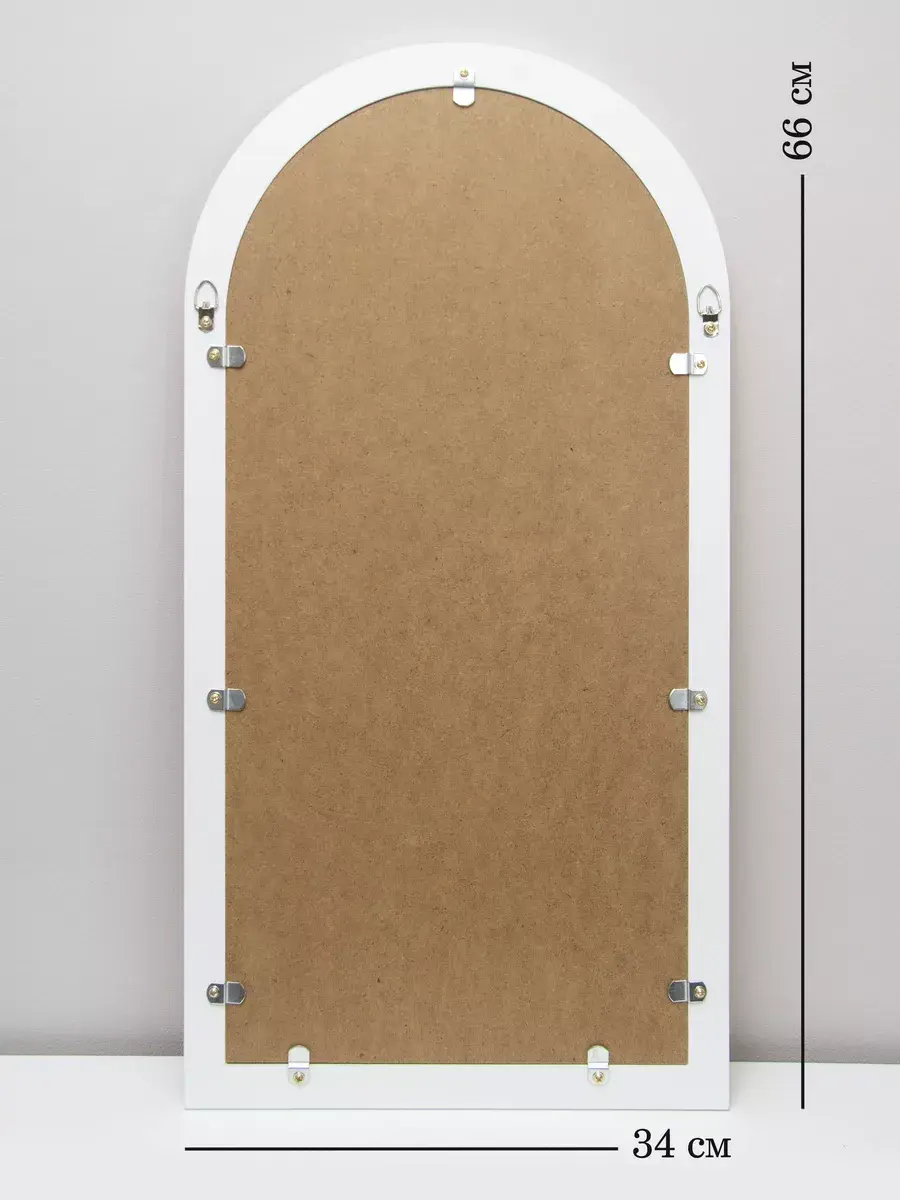 Зеркало-арка "Прованс". Современный зеркальный декор можно повесить стену в спальной или гостиной комнатах, так-же фальш-окно в форме арки прекрасно будет смотреться на комоде или над диваном. Настенный декор изготовлен из МДФ 12 мм.,вставки из зеркала 4мм не искажает изображение, размер зеркала в раме 66х34 см.. Рама зеркала широкая, покрашена акриловой эмалью на водной основе. Подойдет для оформления интерьера в стиле прованс, кантри, шеббишик, добавит света и пространства в интерьере. На обратной стороне зеркала две петли, шурупы для крепления на стену в комплекте.