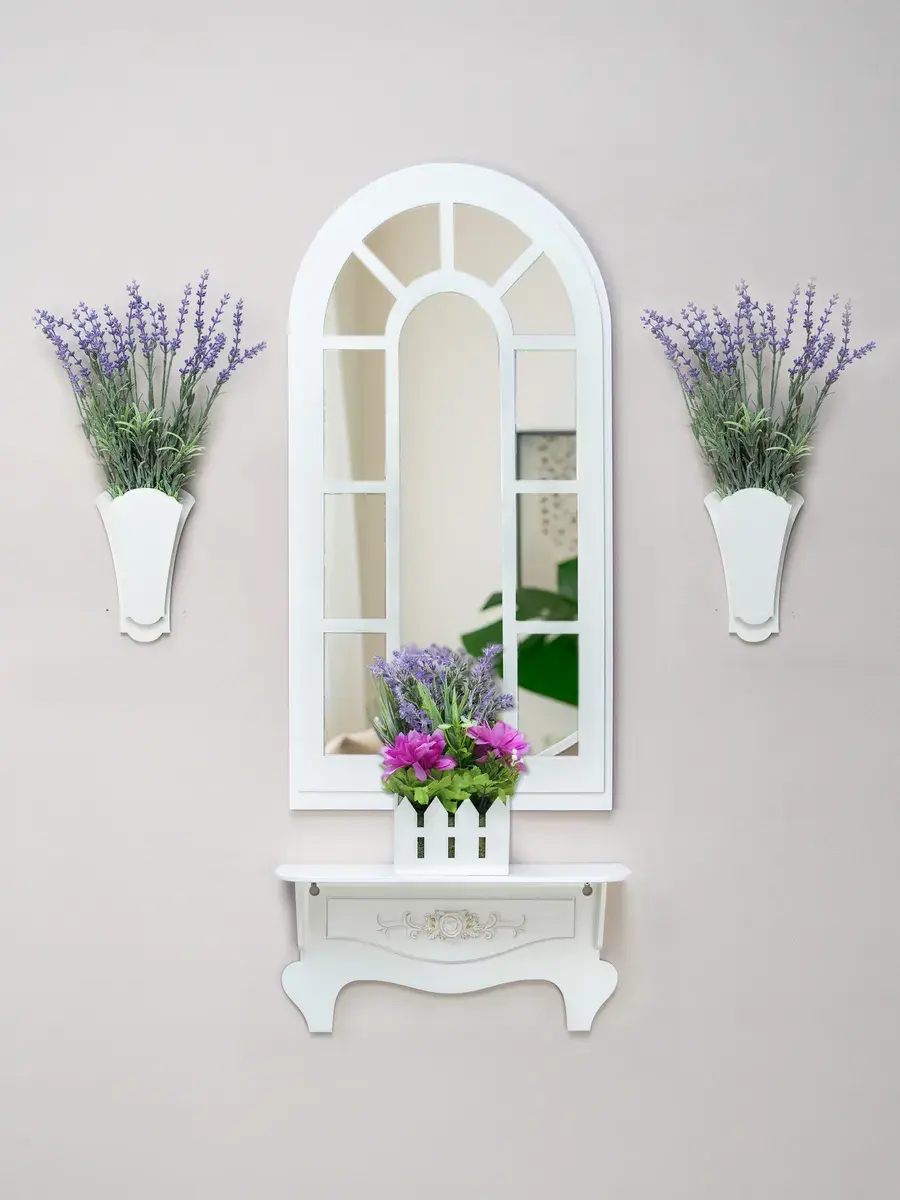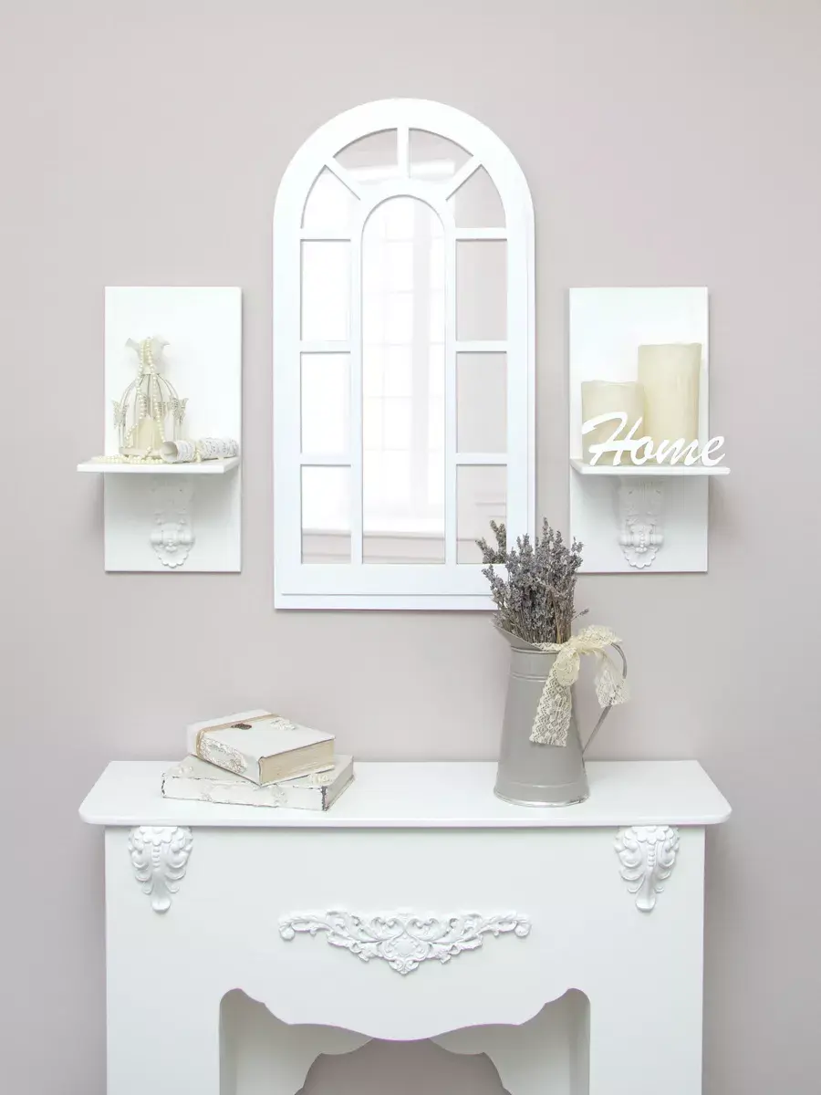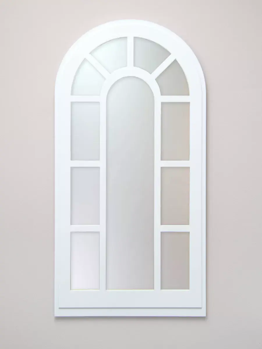 Зеркало-арка "Прованс". Современный зеркальный декор можно повесить стену в спальной или гостиной комнатах, так-же фальш-окно в форме арки прекрасно будет смотреться на комоде или над диваном. Настенный декор изготовлен из МДФ 12 мм.,вставки из зеркала 4мм не искажает изображение, размер зеркала в раме 66х34 см.. Рама зеркала широкая, покрашена акриловой эмалью на водной основе. Подойдет для оформления интерьера в стиле прованс, кантри, шеббишик, добавит света и пространства в интерьере. На обратной стороне зеркала две петли, шурупы для крепления на стену в комплекте.