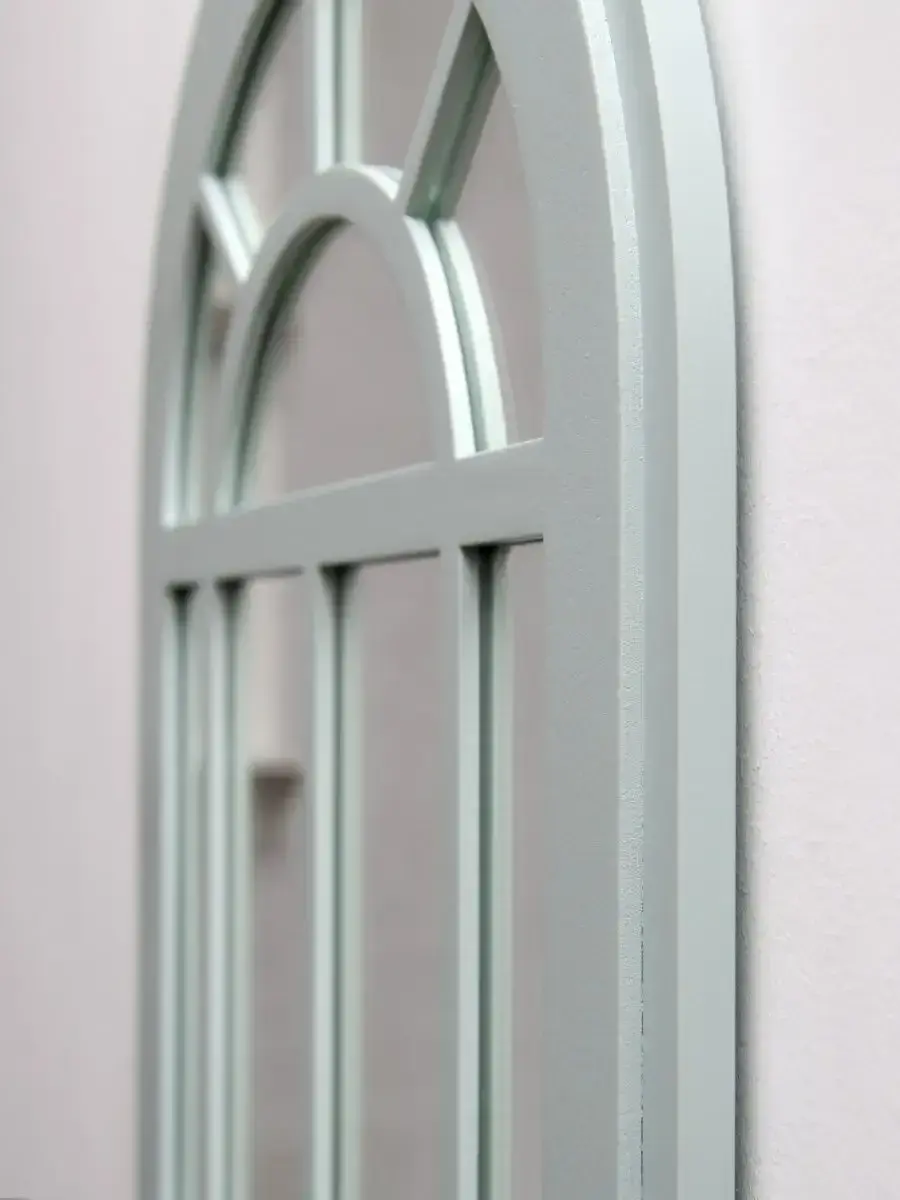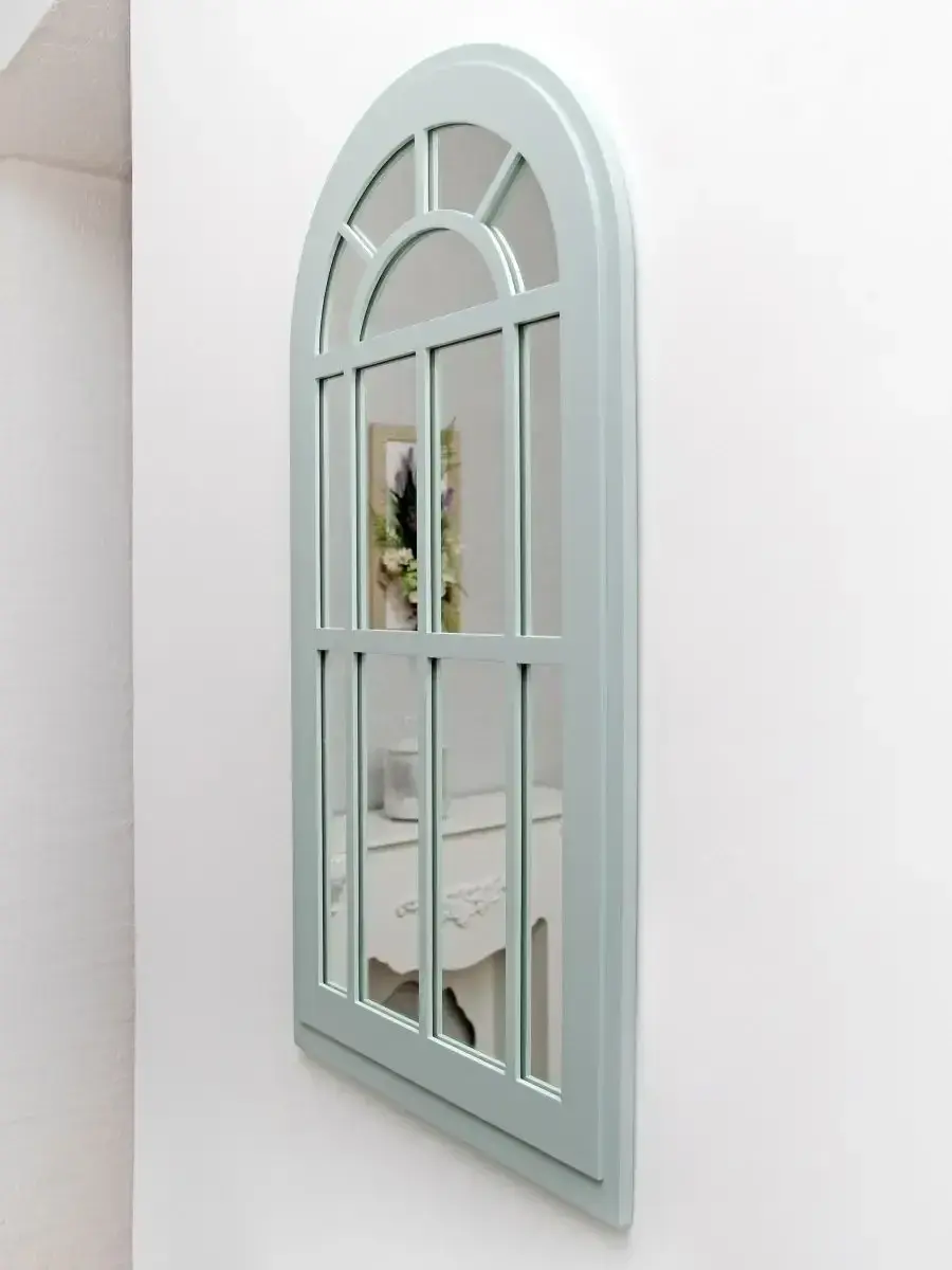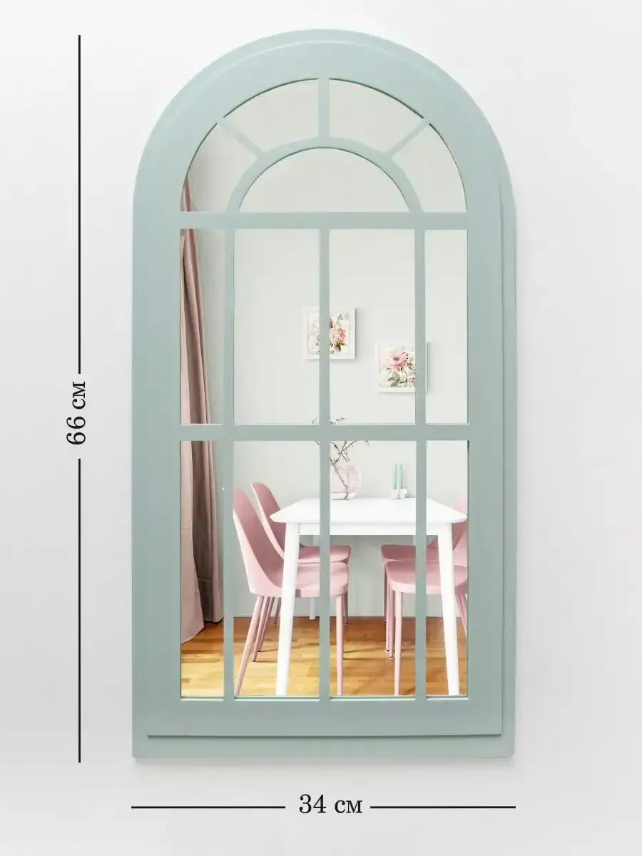 Зеркало-арка "Прованс". Современный зеркальный декор можно повесить стену в спальной или гостиной комнатах, так-же фальш-окно в форме арки прекрасно будет смотреться на комоде или над диваном. Настенный декор изготовлен из МДФ 12 мм.,вставки из зеркала 4мм не искажает изображение, размер зеркала в раме 66х34 см. Рама зеркала широкая, покрашена акриловой эмалью на водной основе. Подойдет для оформления интерьера в стиле прованс, кантри, шеббишик, добавит света и пространства в интерьере. На обратной стороне зеркала две петли, шурупы для крепления на стену в комплекте.