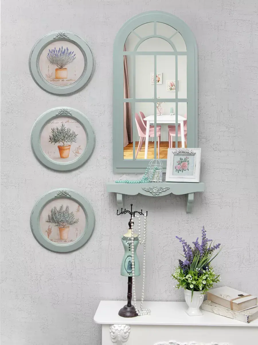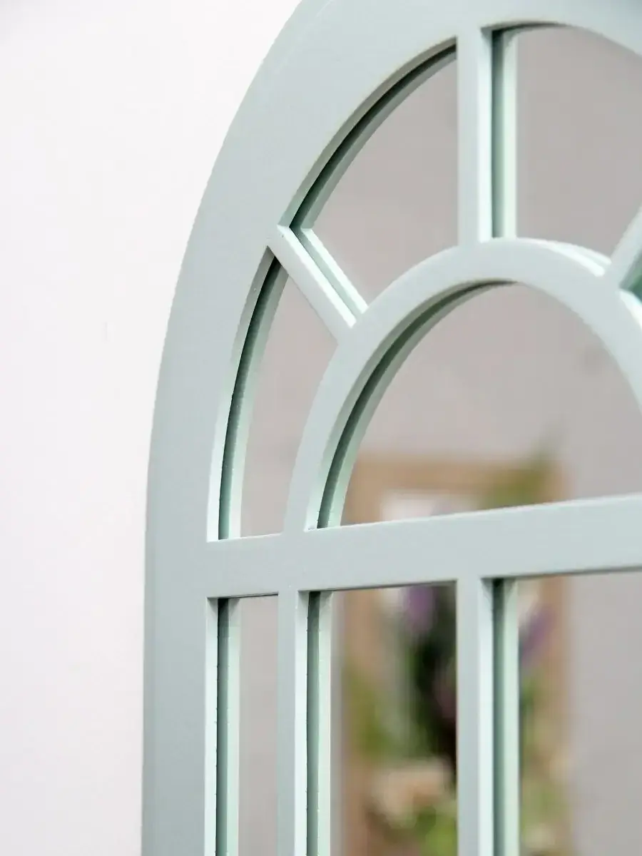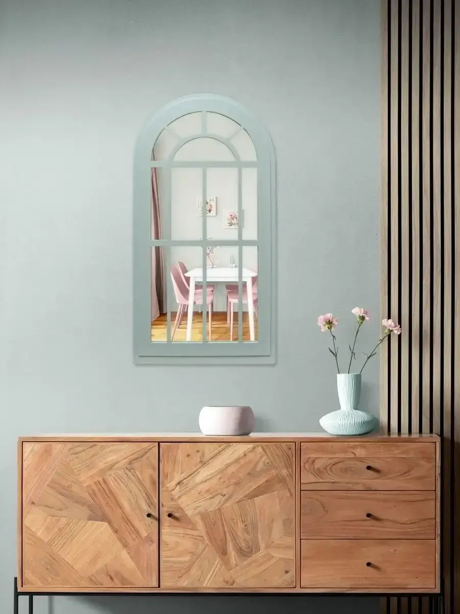 Зеркало-арка "Прованс". Современный зеркальный декор можно повесить стену в спальной или гостиной комнатах, так-же фальш-окно в форме арки прекрасно будет смотреться на комоде или над диваном. Настенный декор изготовлен из МДФ 12 мм.,вставки из зеркала 4мм не искажает изображение, размер зеркала в раме 66х34 см. Рама зеркала широкая, покрашена акриловой эмалью на водной основе. Подойдет для оформления интерьера в стиле прованс, кантри, шеббишик, добавит света и пространства в интерьере. На обратной стороне зеркала две петли, шурупы для крепления на стену в комплекте.