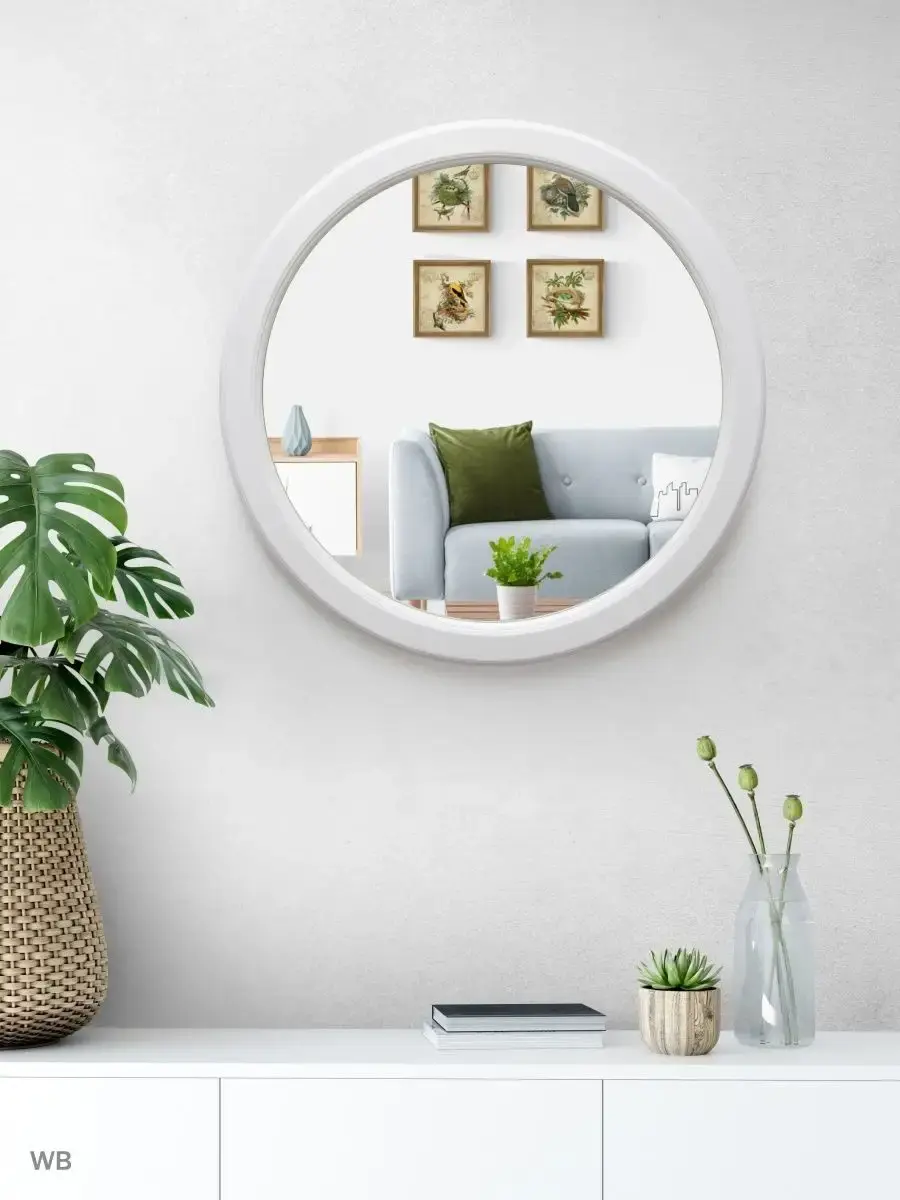 Зеркало интерьерное это круглое настенное зеркало в рамке станет стильным акцентом в вашем интерьере. Оно прекрасно впишется в различные пространства, такие как коридор, спальня, детская, ванная, гостиная или прихожая. Изготовленное из качественных материалов, зеркало имеет деревянную рамку, что придаёт ему дополнительную прочность и эстетичный вид.