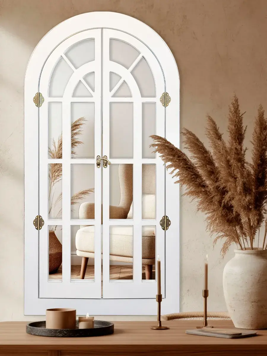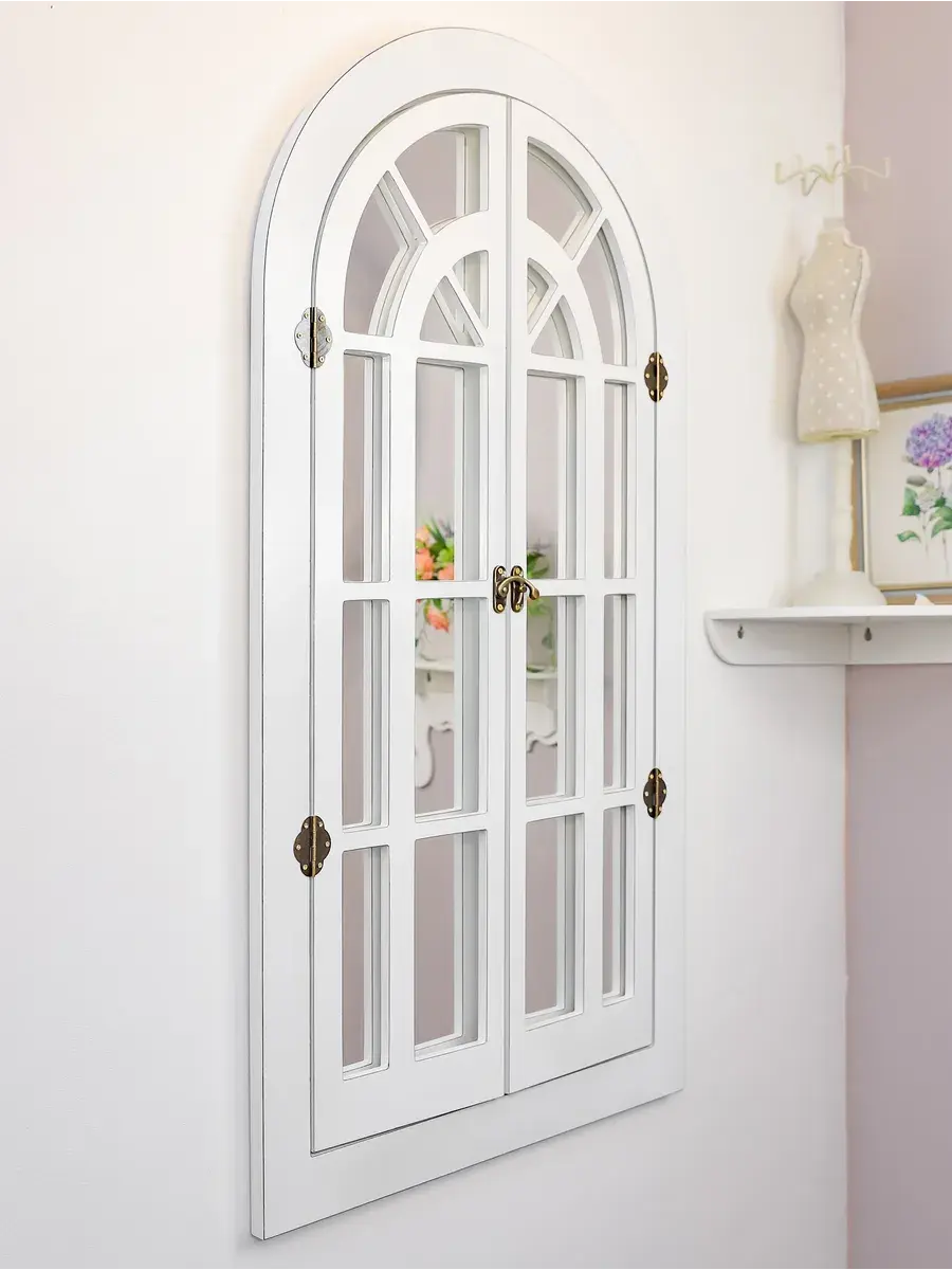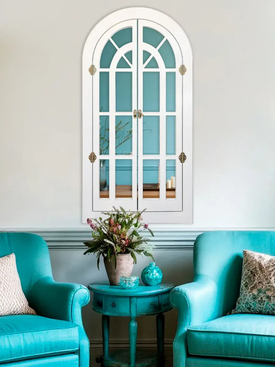Представляем наше изысканное настенное зеркало-окно со ставнями, идеальное дополнение к вашему домашнему декору. Погрузитесь в атмосферу уюта и стиля с нашим настенным зеркалом для ванной, выполненным в форме арки. Это не просто зеркало, а настоящее произведение искусства, которое станет центральным элементом вашего интерьера. Зеркало-арка со ставнями в стиле Прованс добавит вашему дому изысканности и шарма. Деревянная рама с двумя створками, которые можно открывать и закрывать, придаёт изделию уникальность и функциональность. Это зеркало идеально подходит для прихожей, ванной или гостиной, создавая иллюзию дополнительного пространства и света. Зеркало настенное изготовлено из высококачественного МДФ толщиной 12 мм, что обеспечивает его долговечность и устойчивость. Зеркальные вставки толщиной 4 мм гарантируют чёткое, неискажённое отражение. Размеры зеркала в раме составляют 95*49 см, а с открытыми ставнями — 95*78.5 см, что делает его достаточно большим для любого помещения. Рама покрыта акриловой эмалью на водной основе, что придаёт ей стойкость к влаге и износу. Это зеркало станет идеальным декором для дома, добавив в ваш интерьер нотки деревенского стиля, винтажа или шебби-шика. Оно прекрасно впишется в любую комнату, будь то гостиная, спальня или ванная, и станет эффектной деталью, привлекающей внимание. В комплекте идут шурупы для крепления, что делает установку максимально простой и удобной. Закажите это настенное зеркало сегодня и преобразите свой дом, добавив в него стиль и уют.