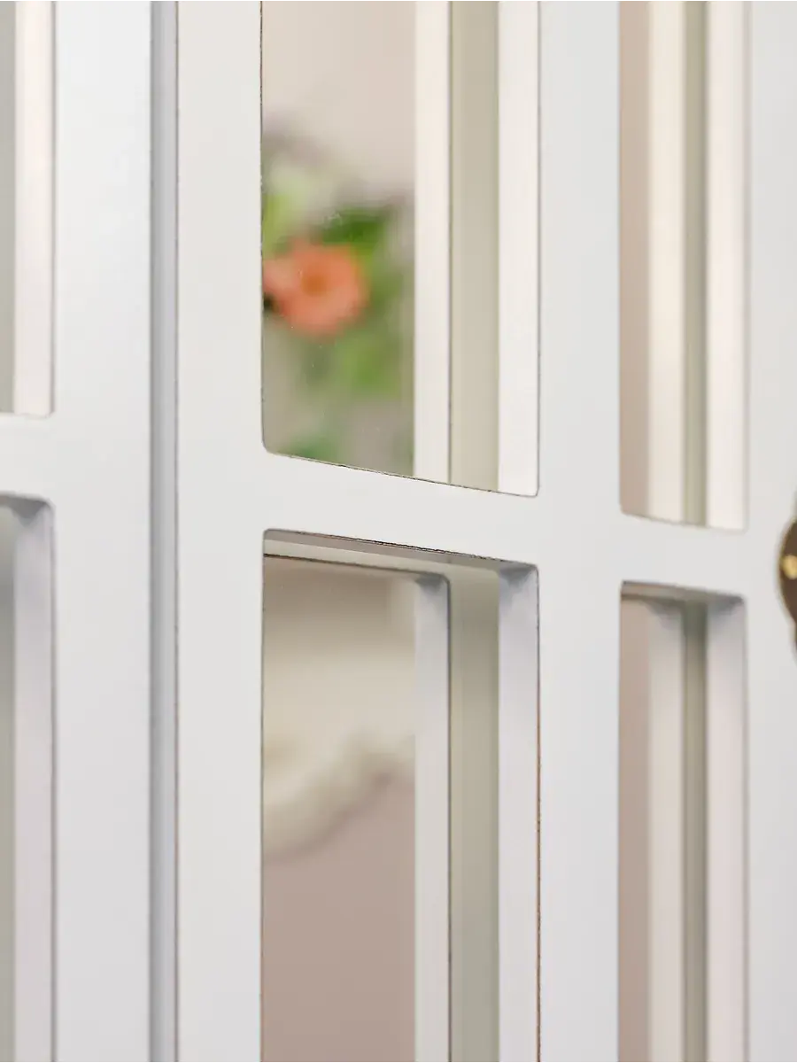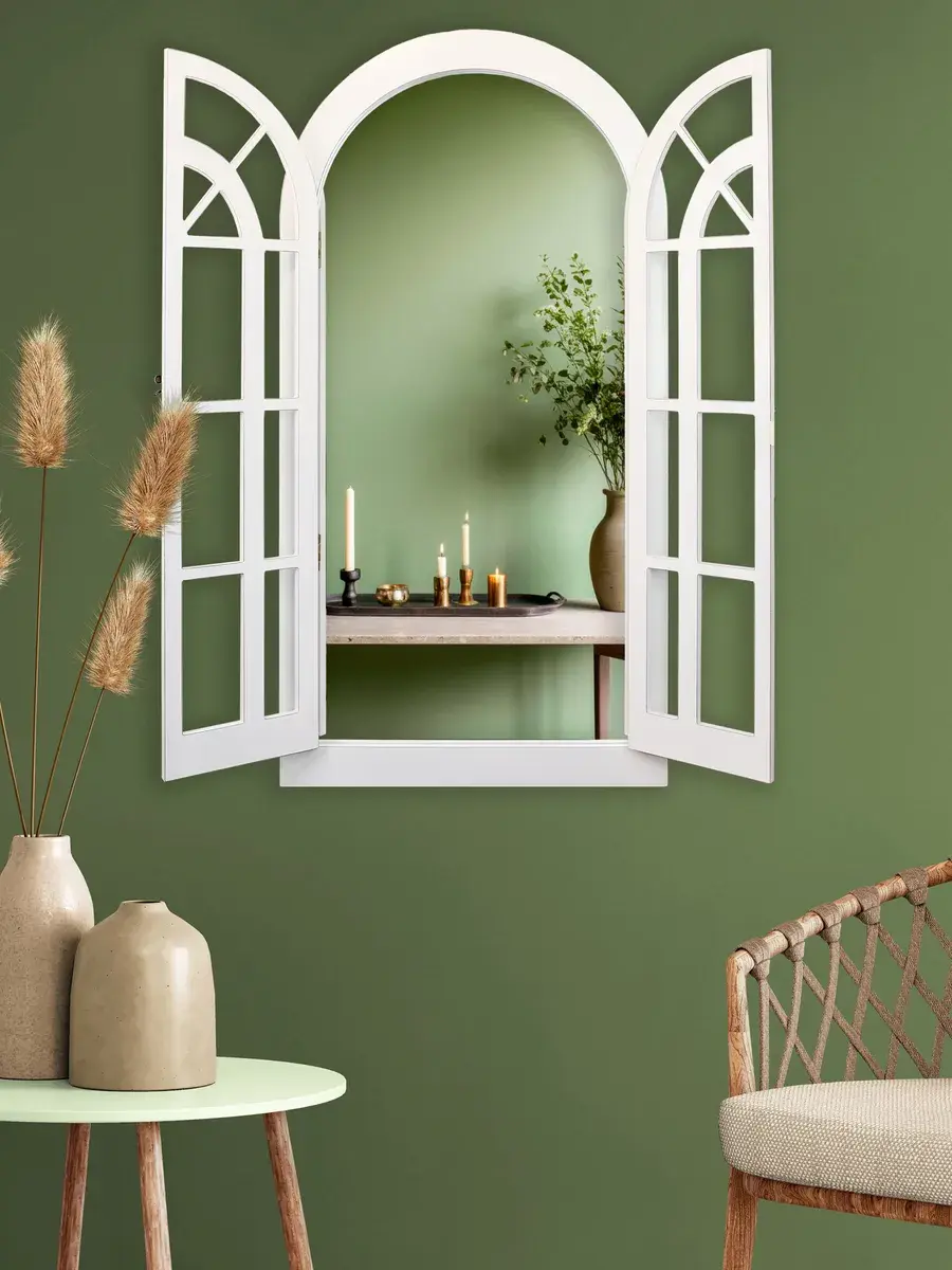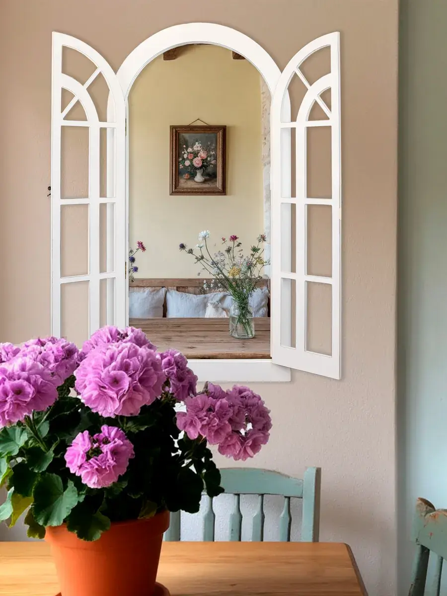 Представляем наше изысканное настенное зеркало-окно со ставнями, идеальное дополнение к вашему домашнему декору. Погрузитесь в атмосферу уюта и стиля с нашим настенным зеркалом для ванной, выполненным в форме арки. Это не просто зеркало, а настоящее произведение искусства, которое станет центральным элементом вашего интерьера. Зеркало-арка со ставнями в стиле Прованс добавит вашему дому изысканности и шарма. Деревянная рама с двумя створками, которые можно открывать и закрывать, придаёт изделию уникальность и функциональность. Это зеркало идеально подходит для прихожей, ванной или гостиной, создавая иллюзию дополнительного пространства и света. Зеркало настенное изготовлено из высококачественного МДФ толщиной 12 мм, что обеспечивает его долговечность и устойчивость. Зеркальные вставки толщиной 4 мм гарантируют чёткое, неискажённое отражение. Размеры зеркала в раме составляют 95*49 см, а с открытыми ставнями — 95*78.5 см, что делает его достаточно большим для любого помещения. Рама покрыта акриловой эмалью на водной основе, что придаёт ей стойкость к влаге и износу. Это зеркало станет идеальным декором для дома, добавив в ваш интерьер нотки деревенского стиля, винтажа или шебби-шика. Оно прекрасно впишется в любую комнату, будь то гостиная, спальня или ванная, и станет эффектной деталью, привлекающей внимание. В комплекте идут шурупы для крепления, что делает установку максимально простой и удобной. Закажите это настенное зеркало сегодня и преобразите свой дом, добавив в него стиль и уют.