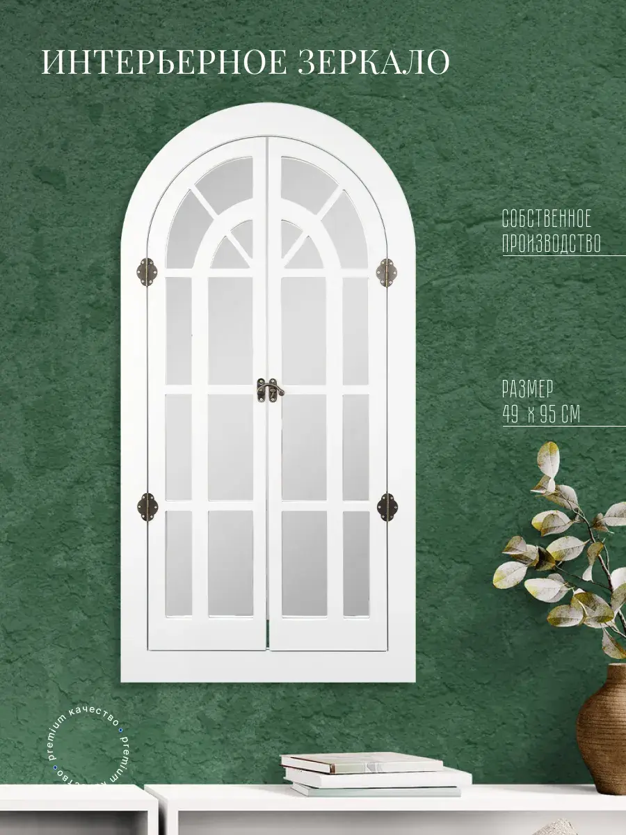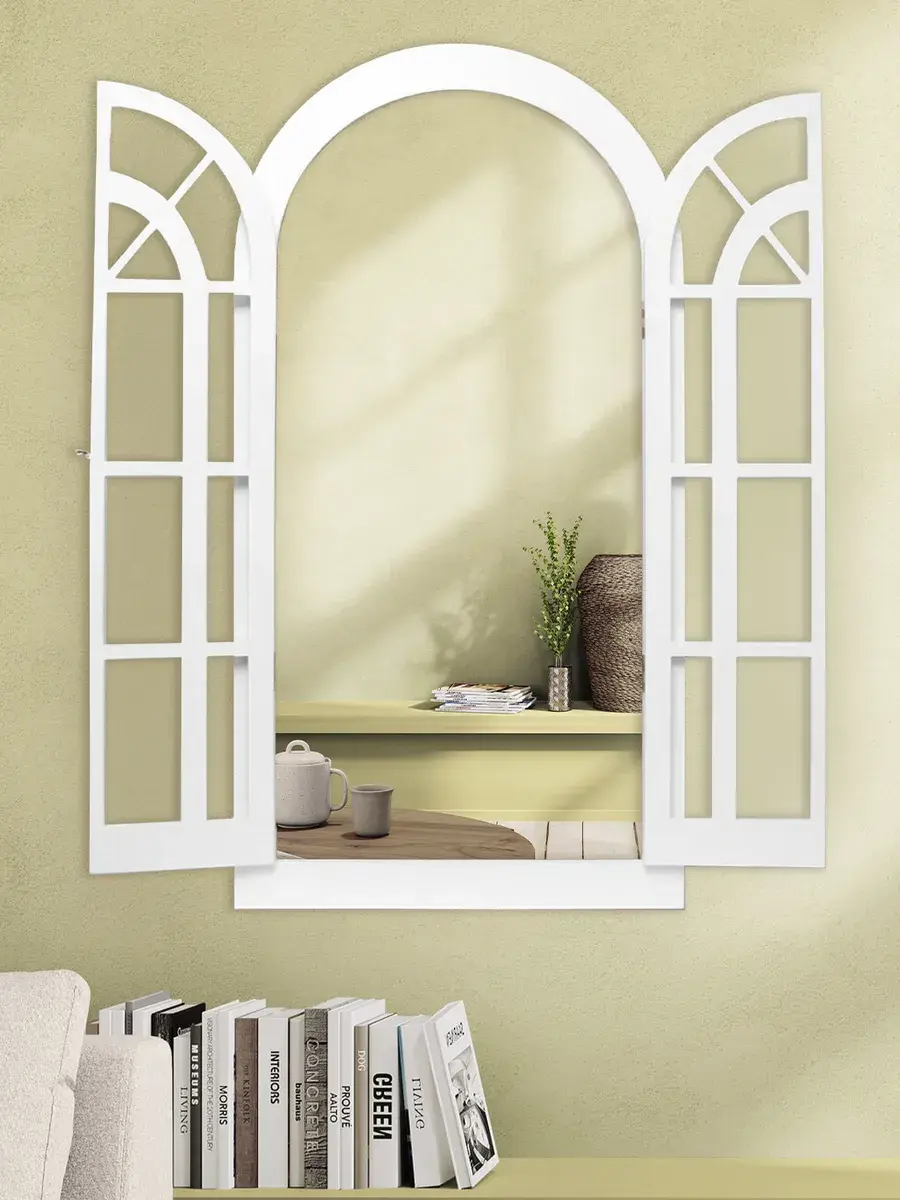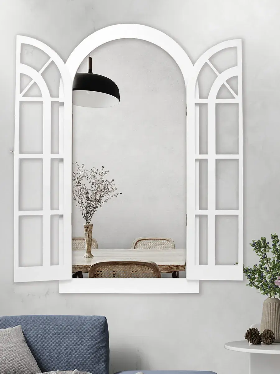Представляем наше изысканное настенное зеркало-окно со ставнями, идеальное дополнение к вашему домашнему декору. Погрузитесь в атмосферу уюта и стиля с нашим настенным зеркалом для ванной, выполненным в форме арки. Это не просто зеркало, а настоящее произведение искусства, которое станет центральным элементом вашего интерьера. Зеркало-арка со ставнями в стиле Прованс добавит вашему дому изысканности и шарма. Деревянная рама с двумя створками, которые можно открывать и закрывать, придаёт изделию уникальность и функциональность. Это зеркало идеально подходит для прихожей, ванной или гостиной, создавая иллюзию дополнительного пространства и света. Зеркало настенное изготовлено из высококачественного МДФ толщиной 12 мм, что обеспечивает его долговечность и устойчивость. Зеркальные вставки толщиной 4 мм гарантируют чёткое, неискажённое отражение. Размеры зеркала в раме составляют 95*49 см, а с открытыми ставнями — 95*78.5 см, что делает его достаточно большим для любого помещения. Рама покрыта акриловой эмалью на водной основе, что придаёт ей стойкость к влаге и износу. Это зеркало станет идеальным декором для дома, добавив в ваш интерьер нотки деревенского стиля, винтажа или шебби-шика. Оно прекрасно впишется в любую комнату, будь то гостиная, спальня или ванная, и станет эффектной деталью, привлекающей внимание. В комплекте идут шурупы для крепления, что делает установку максимально простой и удобной. Закажите это настенное зеркало сегодня и преобразите свой дом, добавив в него стиль и уют.