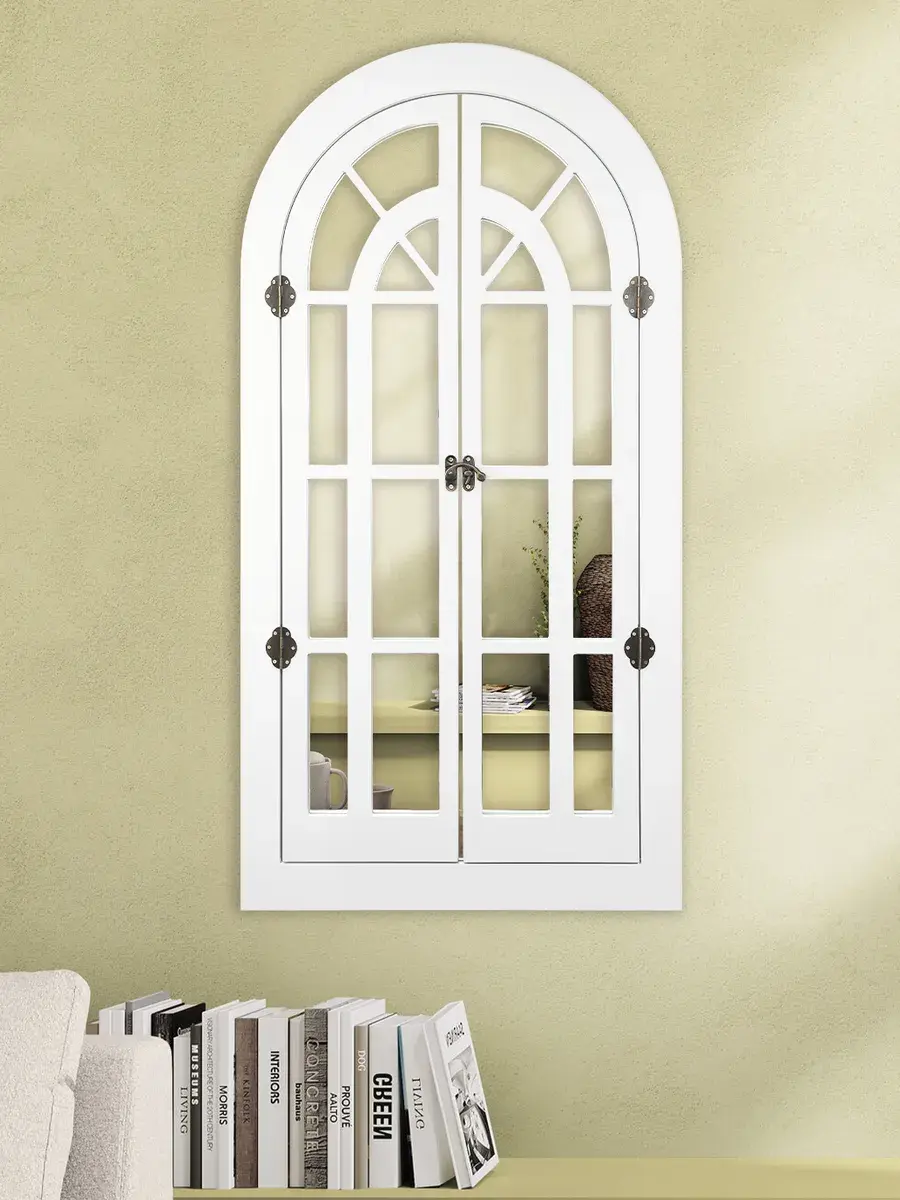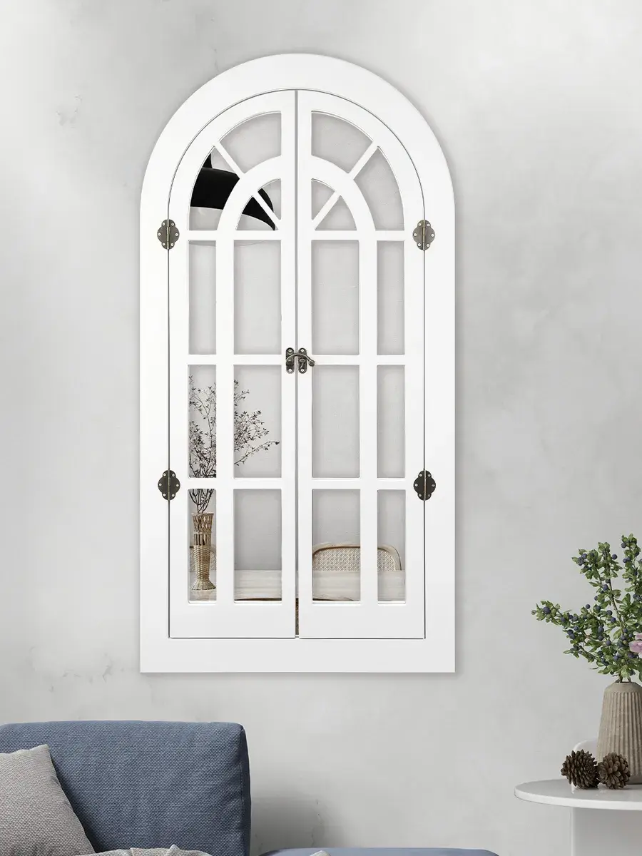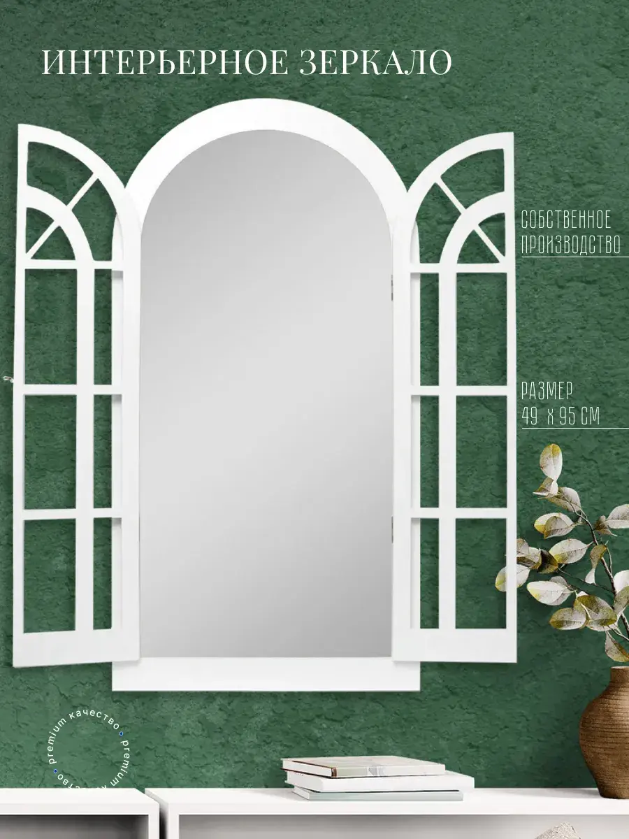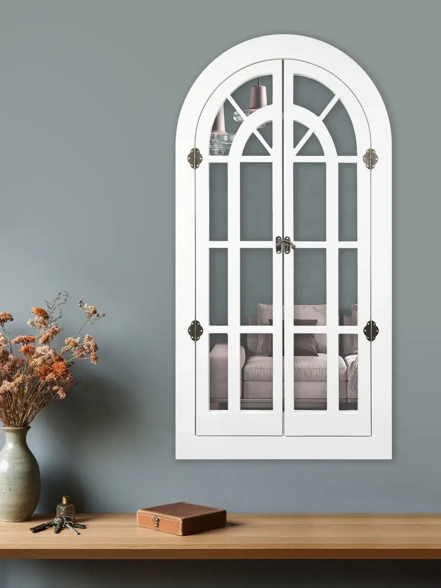 Представляем наше изысканное настенное зеркало-окно со ставнями, идеальное дополнение к вашему домашнему декору. Погрузитесь в атмосферу уюта и стиля с нашим настенным зеркалом для ванной, выполненным в форме арки. Это не просто зеркало, а настоящее произведение искусства, которое станет центральным элементом вашего интерьера. Зеркало-арка со ставнями в стиле Прованс добавит вашему дому изысканности и шарма. Деревянная рама с двумя створками, которые можно открывать и закрывать, придаёт изделию уникальность и функциональность. Это зеркало идеально подходит для прихожей, ванной или гостиной, создавая иллюзию дополнительного пространства и света. Зеркало настенное изготовлено из высококачественного МДФ толщиной 12 мм, что обеспечивает его долговечность и устойчивость. Зеркальные вставки толщиной 4 мм гарантируют чёткое, неискажённое отражение. Размеры зеркала в раме составляют 95*49 см, а с открытыми ставнями — 95*78.5 см, что делает его достаточно большим для любого помещения. Рама покрыта акриловой эмалью на водной основе, что придаёт ей стойкость к влаге и износу. Это зеркало станет идеальным декором для дома, добавив в ваш интерьер нотки деревенского стиля, винтажа или шебби-шика. Оно прекрасно впишется в любую комнату, будь то гостиная, спальня или ванная, и станет эффектной деталью, привлекающей внимание. В комплекте идут шурупы для крепления, что делает установку максимально простой и удобной. Закажите это настенное зеркало сегодня и преобразите свой дом, добавив в него стиль и уют.