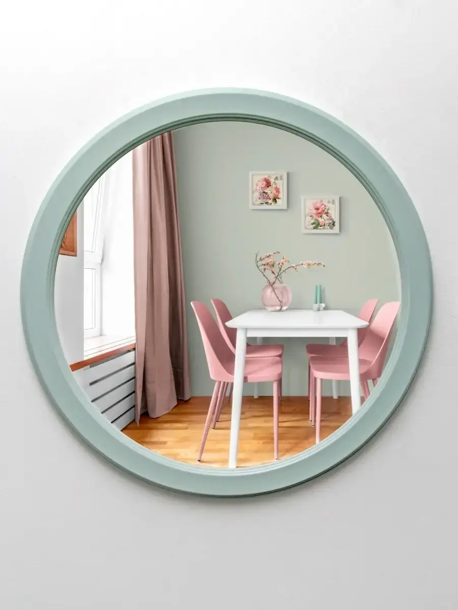 Зеркало интерьерное это круглое настенное зеркало в рамке станет стильным акцентом в вашем интерьере. Оно прекрасно впишется в различные пространства, такие как коридор, спальня, детская, ванная, гостиная или прихожая. Изготовленное из качественных материалов, зеркало имеет деревянную рамку, что придаёт ему дополнительную прочность и эстетичный вид.