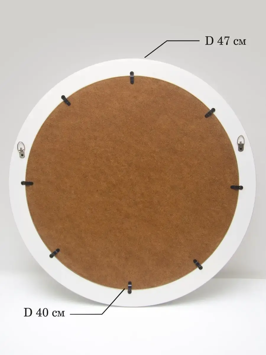 С таким зеркалом ваш интерьер будет выглядеть завершённым. Оно не только выполняет свою основную функцию, но и визуально расширяет пространство, наполняя его светом и отражениями. Удобно размещать зеркало на уровне глаз, что делает его использование комфортным. Оно станет важным элементом в вашем доме, добавляя ему тепла и уюта. Диаметр зеркального полотна 40 см, диаметр зеркала в раме 47 см. Зеркало прекрасно подойдет в любой интерьер, а разнообразие размеров позволяет составить композицию из зеркал разного размера.